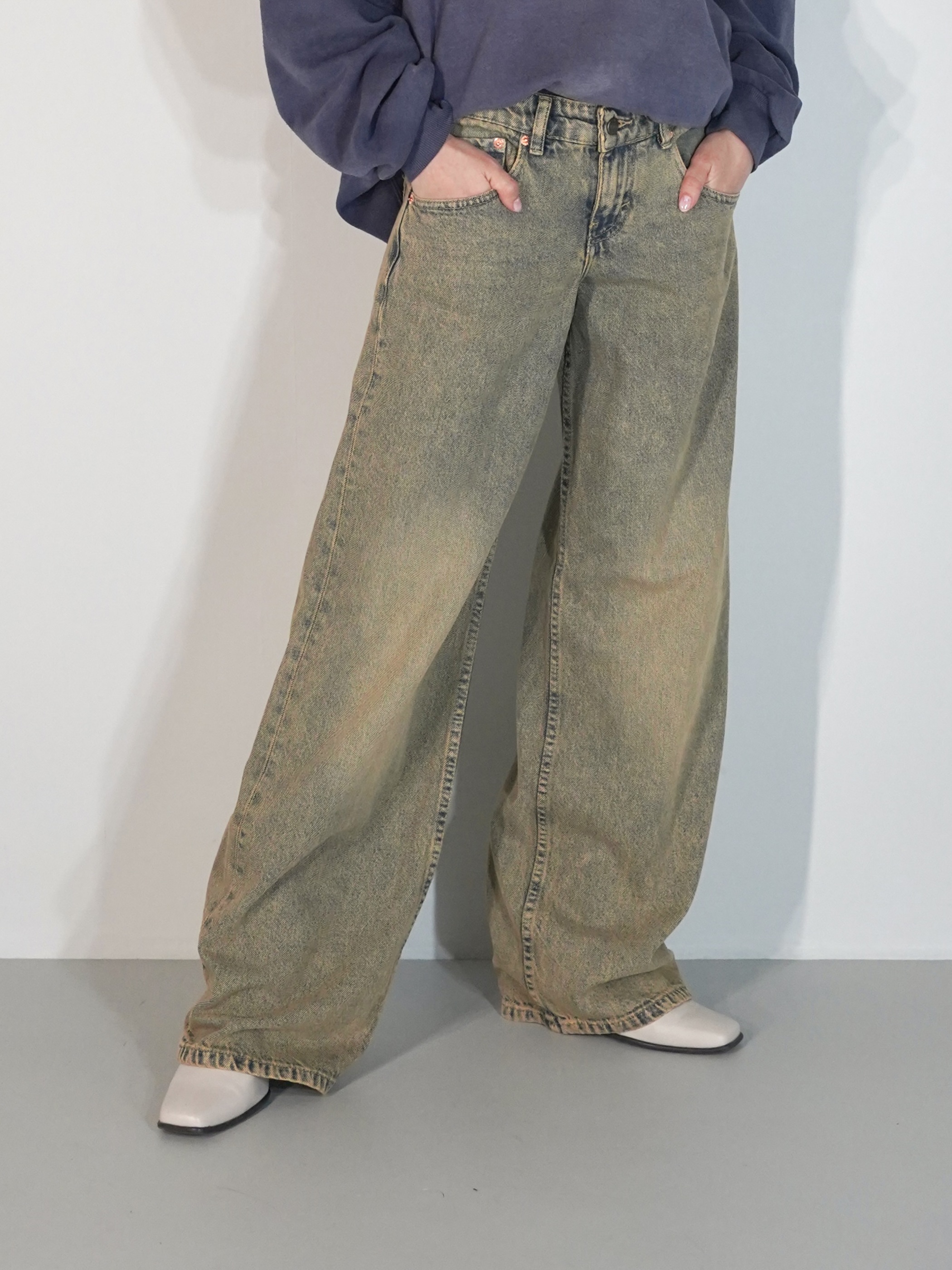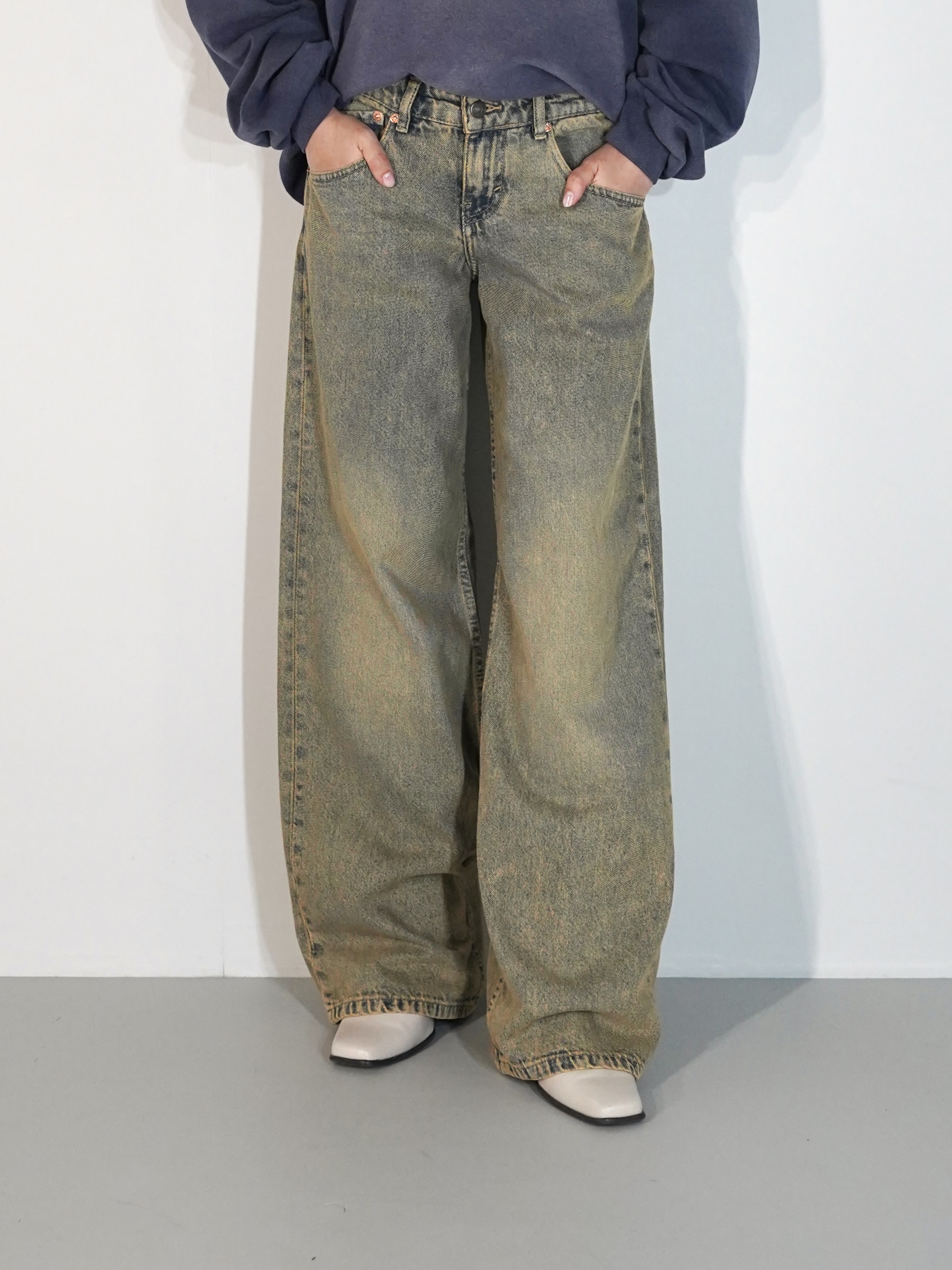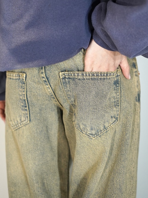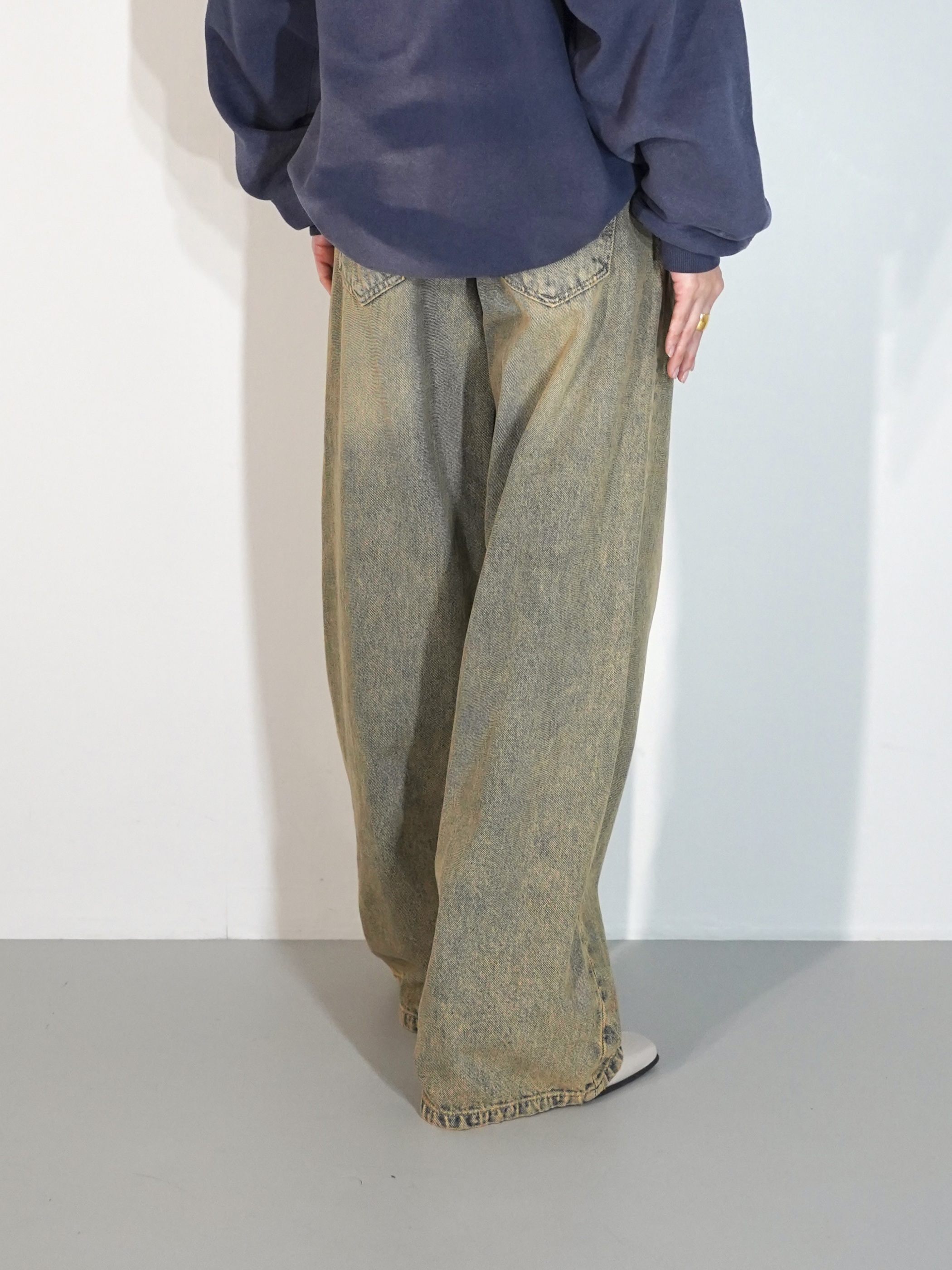 ワタリから裾に向かってワイドストレートに落ちる美しいバギーシルエット