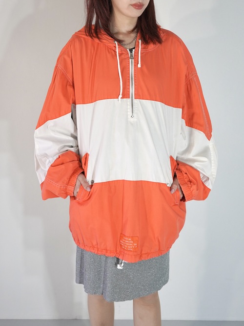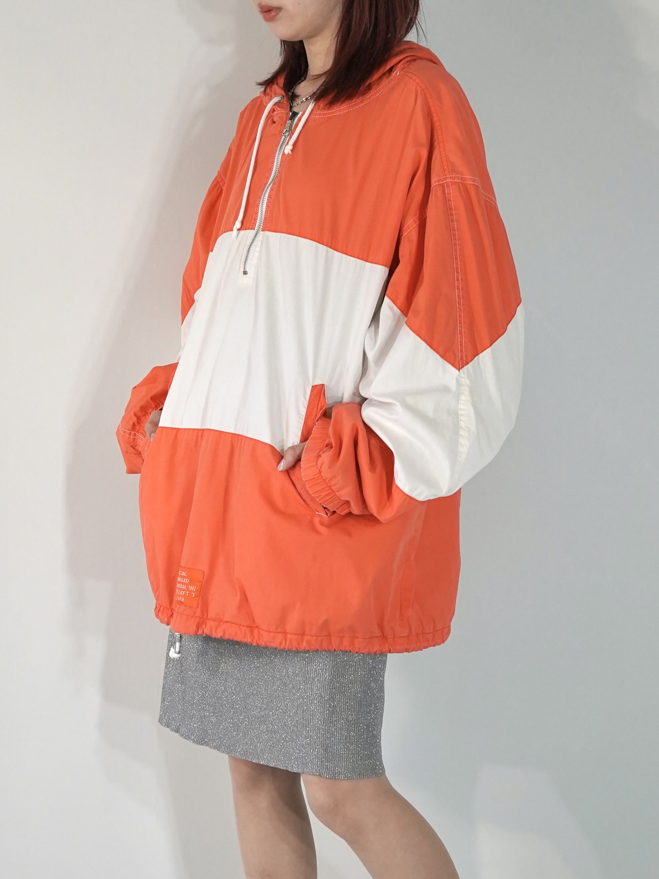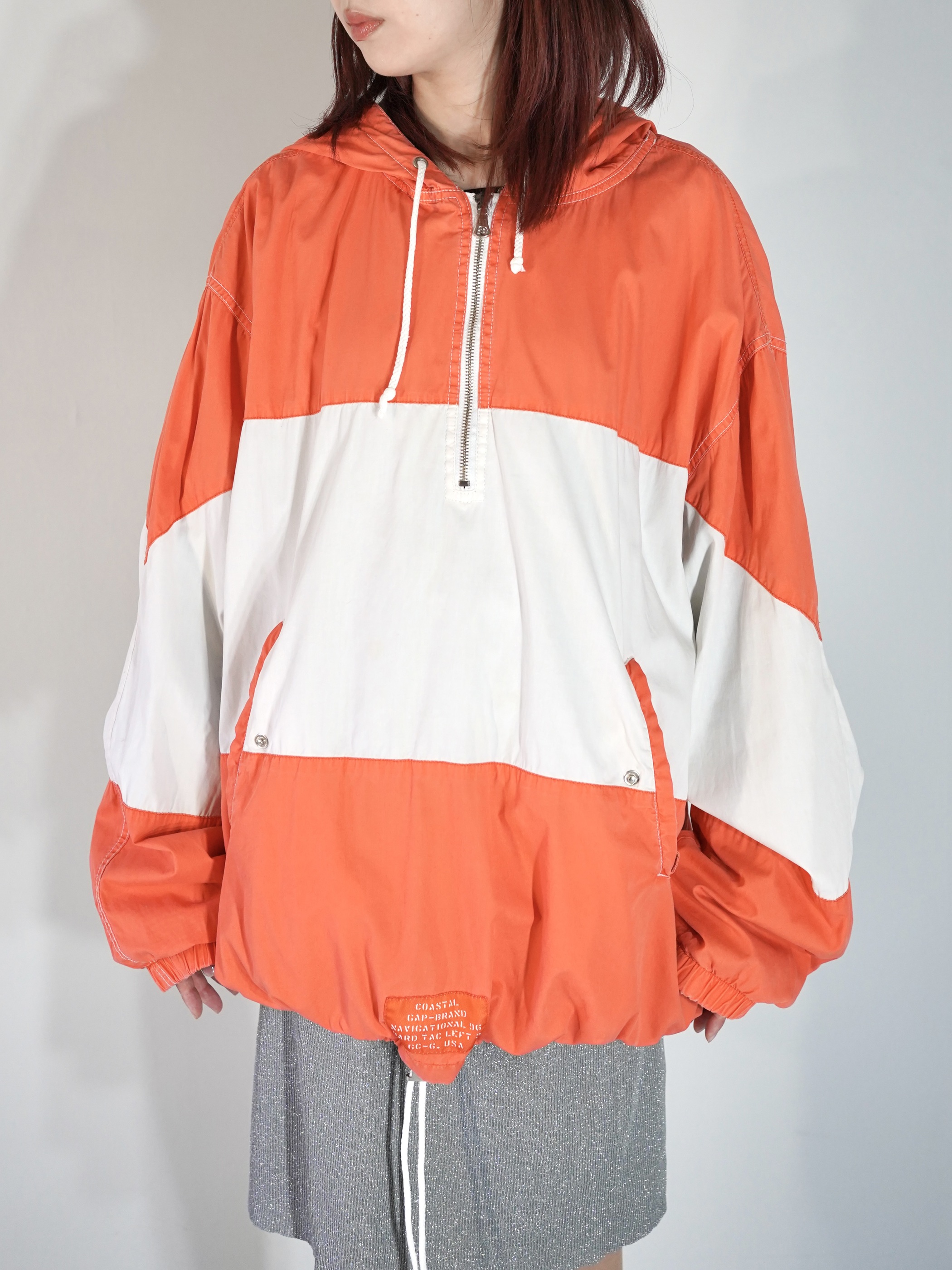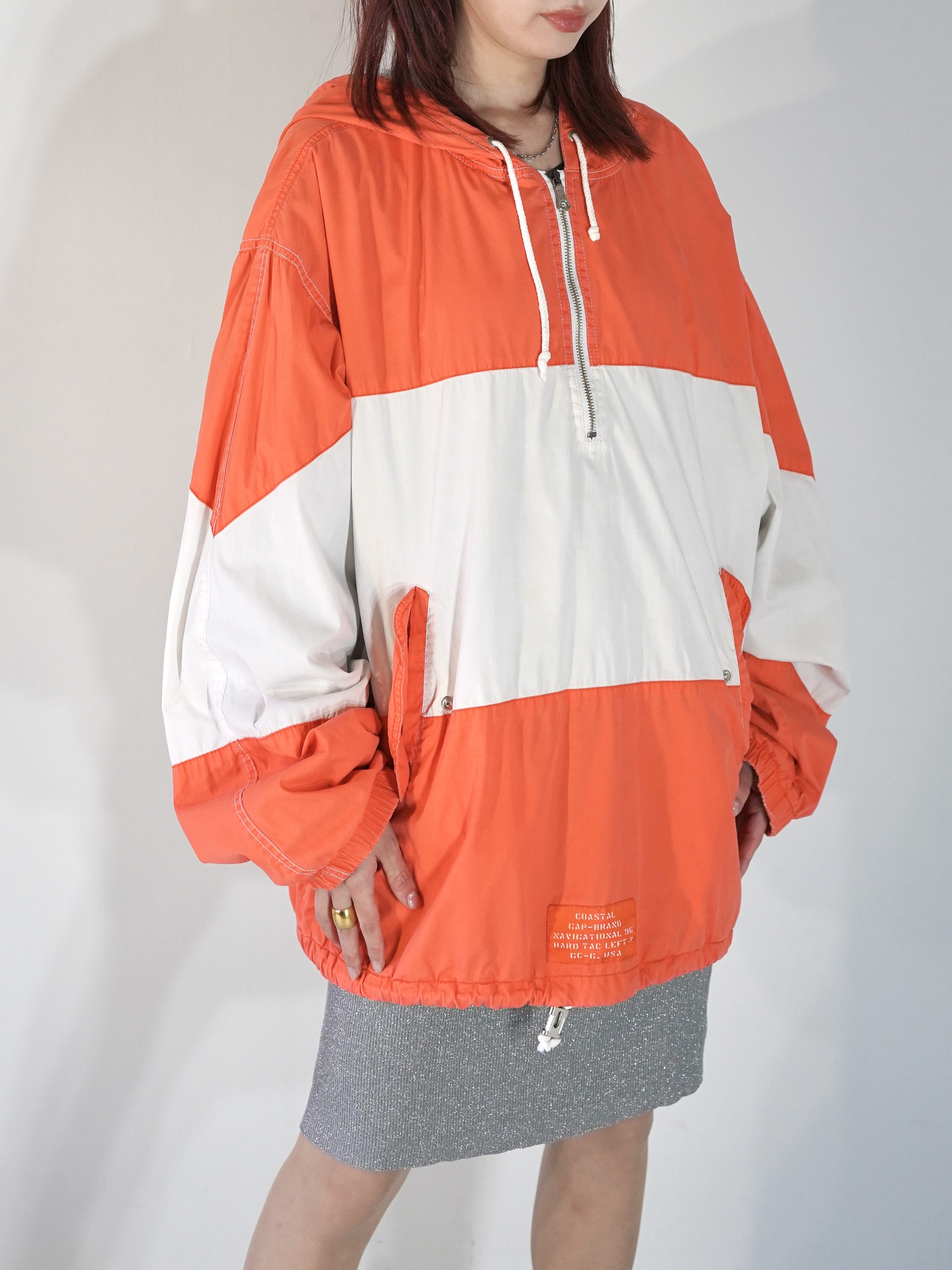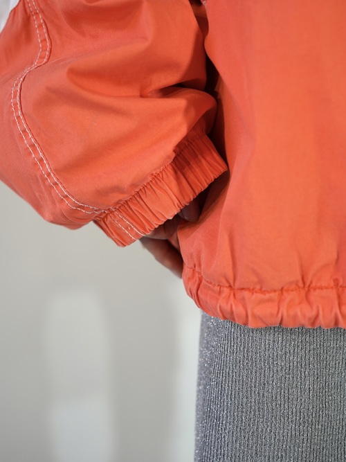 ハンドポケット装備に、裾はドローコード仕様となる為、絞って短く着ることも可能