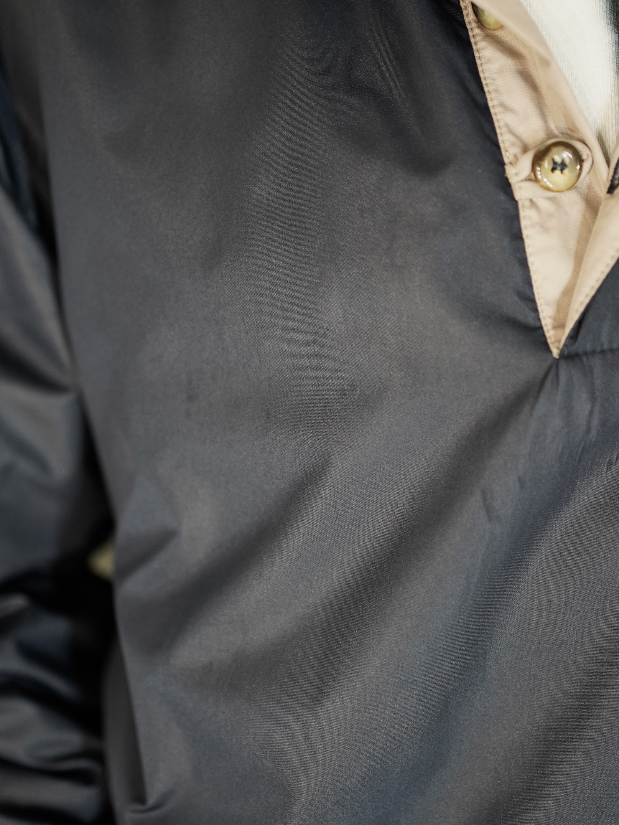 風通しを少なくしてくれる素材、コートやアウターなど挟むのに持ってこないアイテムではないでしょうか。