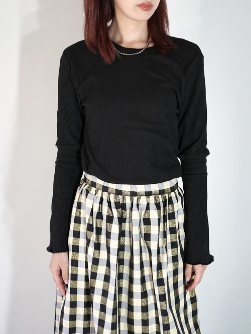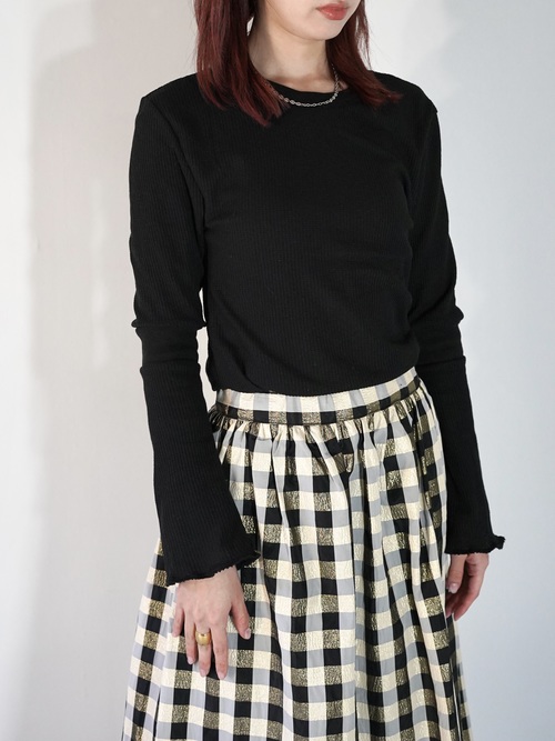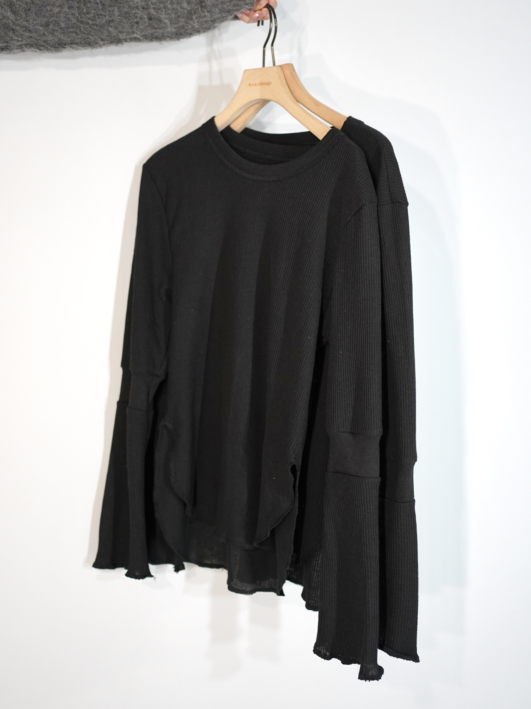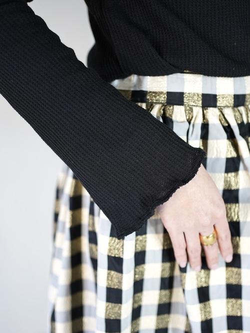 肘位置あたりから袖の先にかけてほんの少しだけフレアに広がるデザインで、袖口がフリルのように見える様になっています。