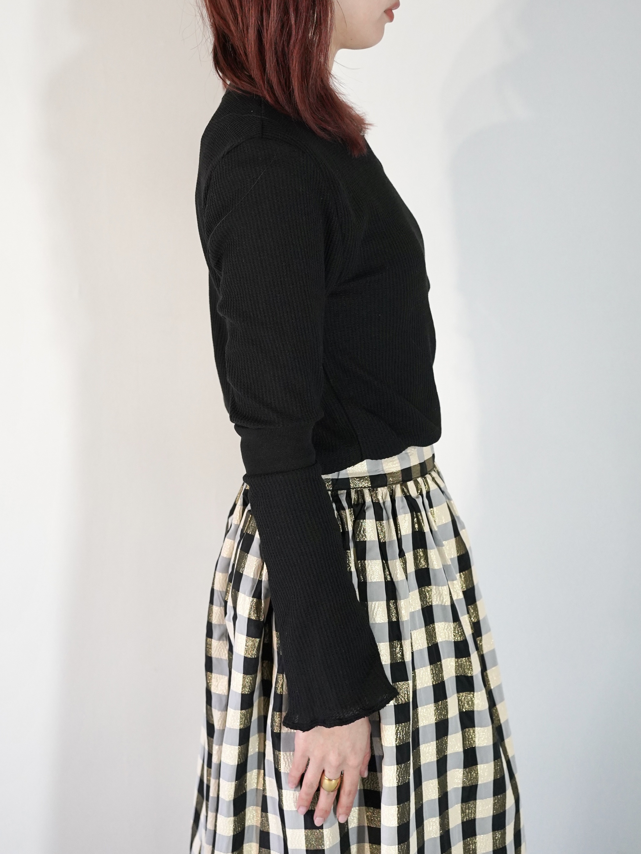シンプルなサーマルより可愛らしさがあり、1枚でも寂しい印象にならないのがポイントです。