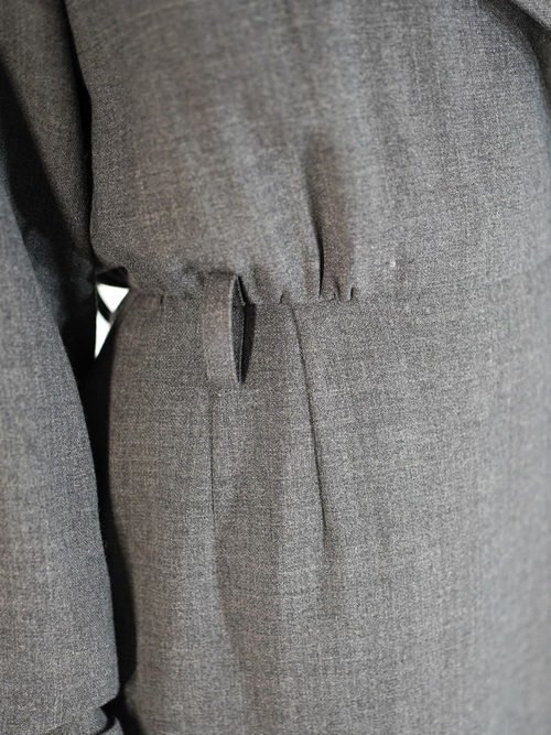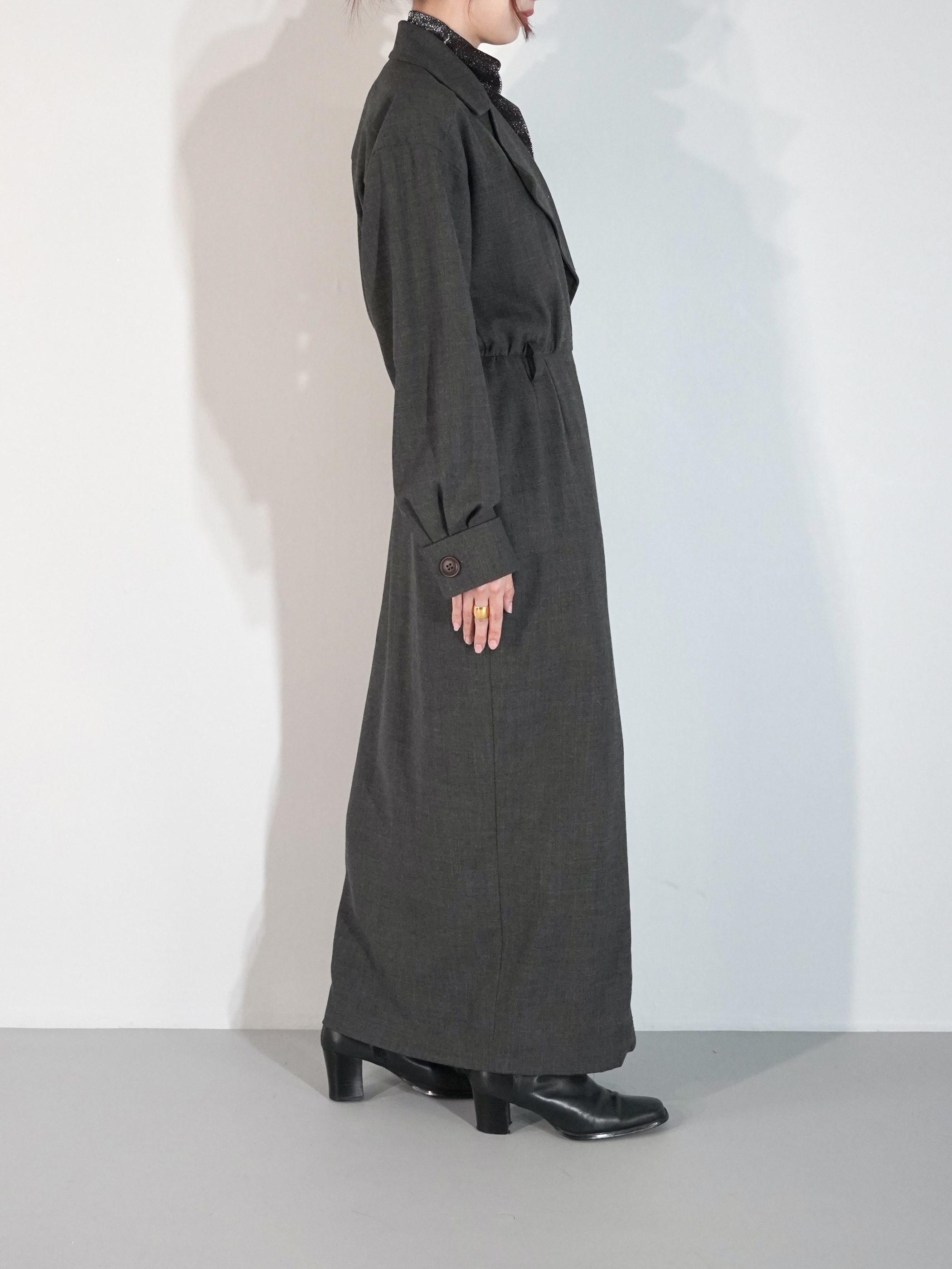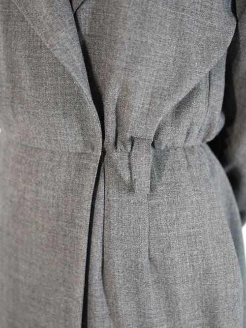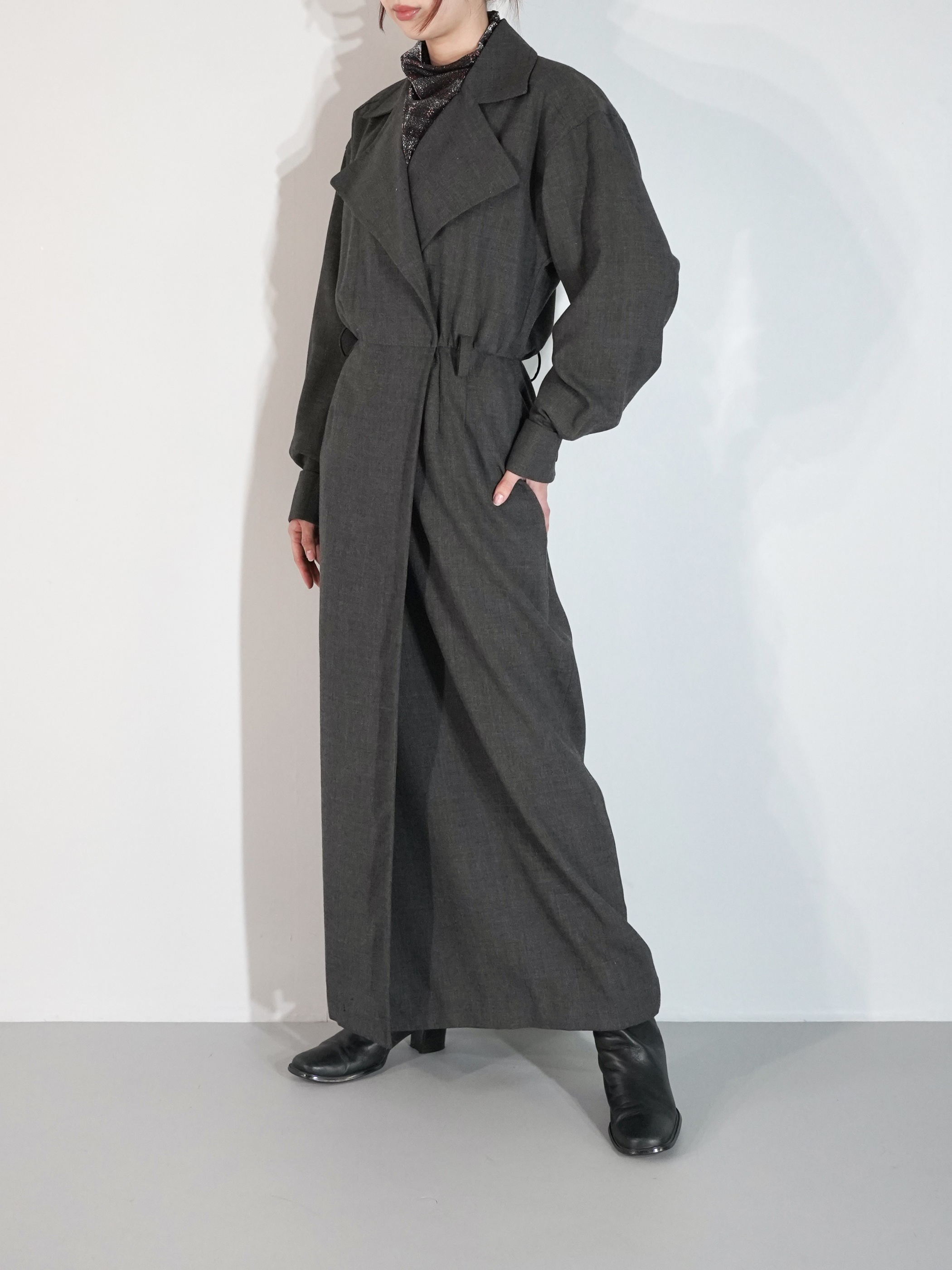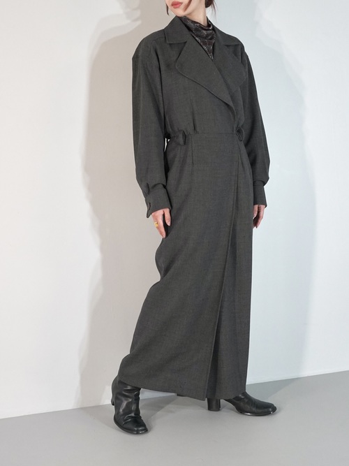 大き目のラペルにコートの様なラップ仕様のデザイン