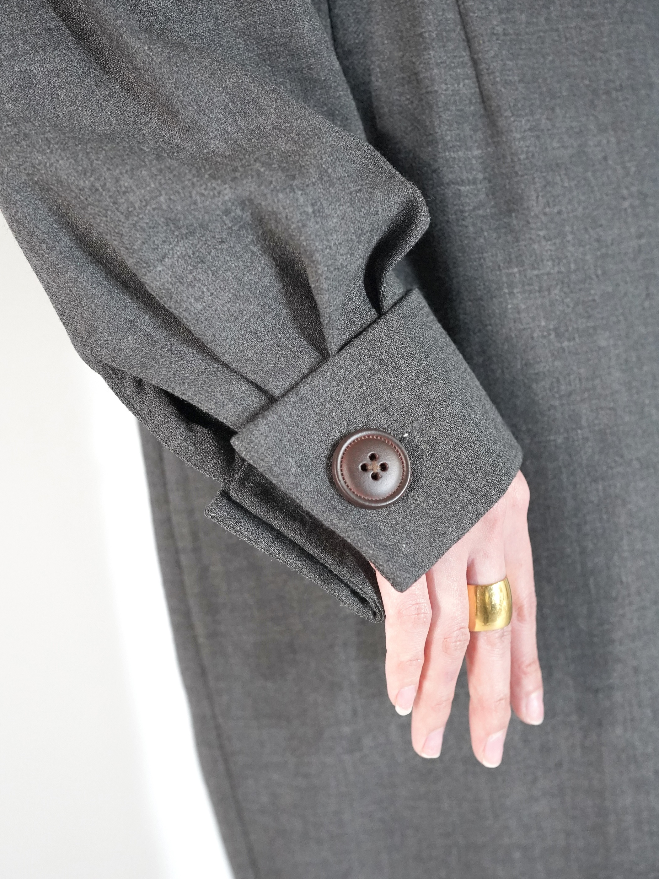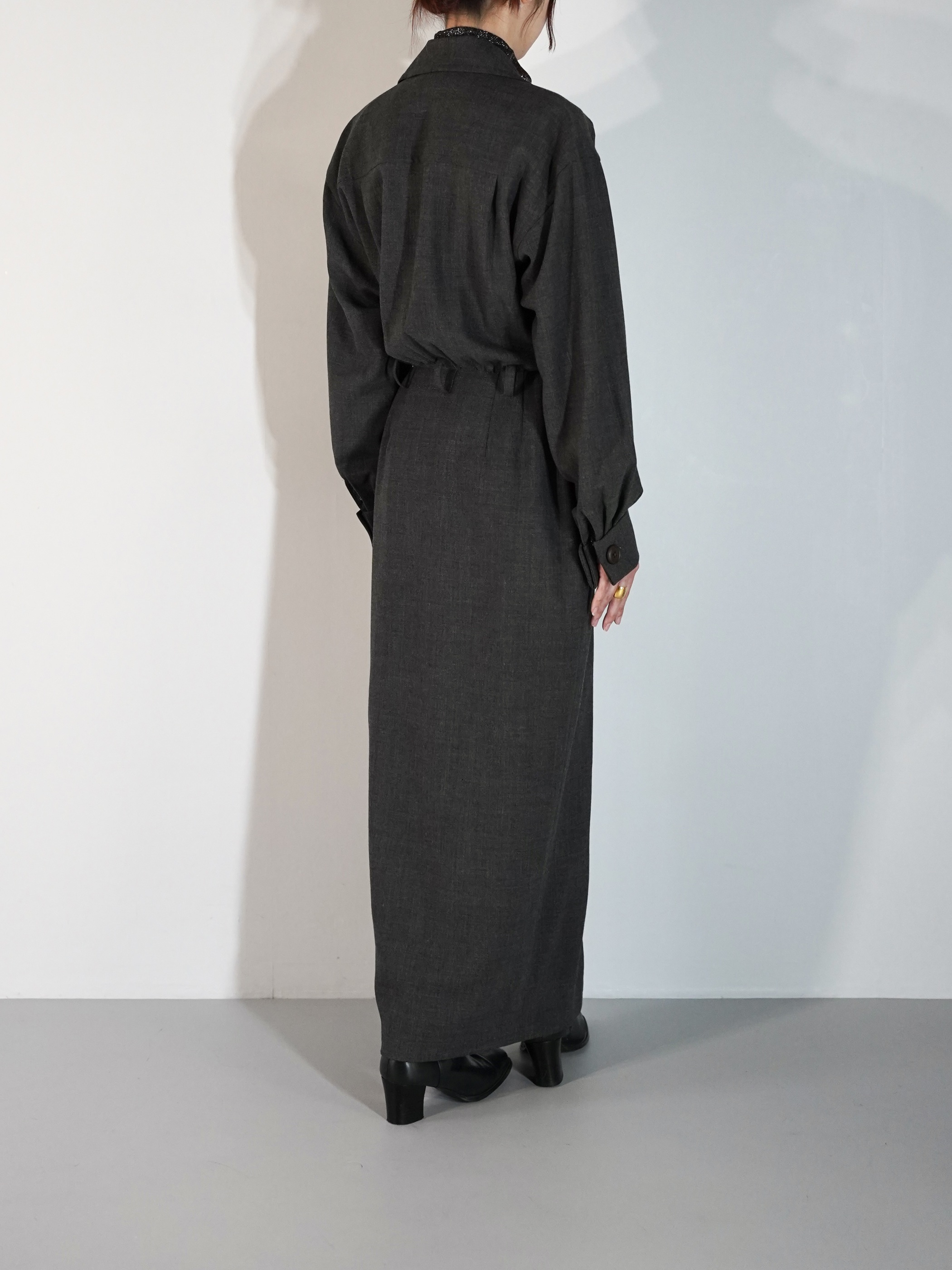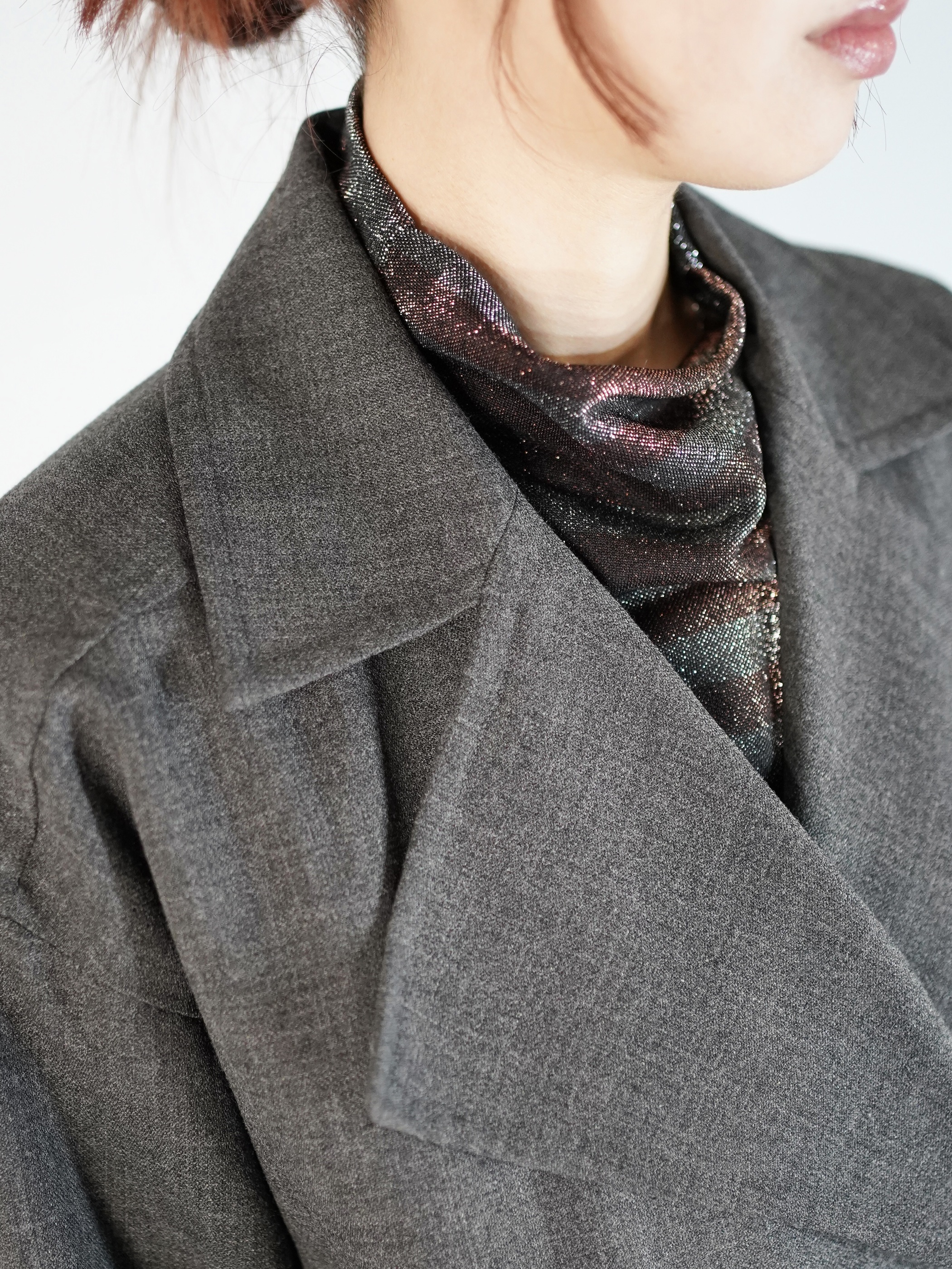 大き目のラペルにコートの様なラップ仕様のデザイン