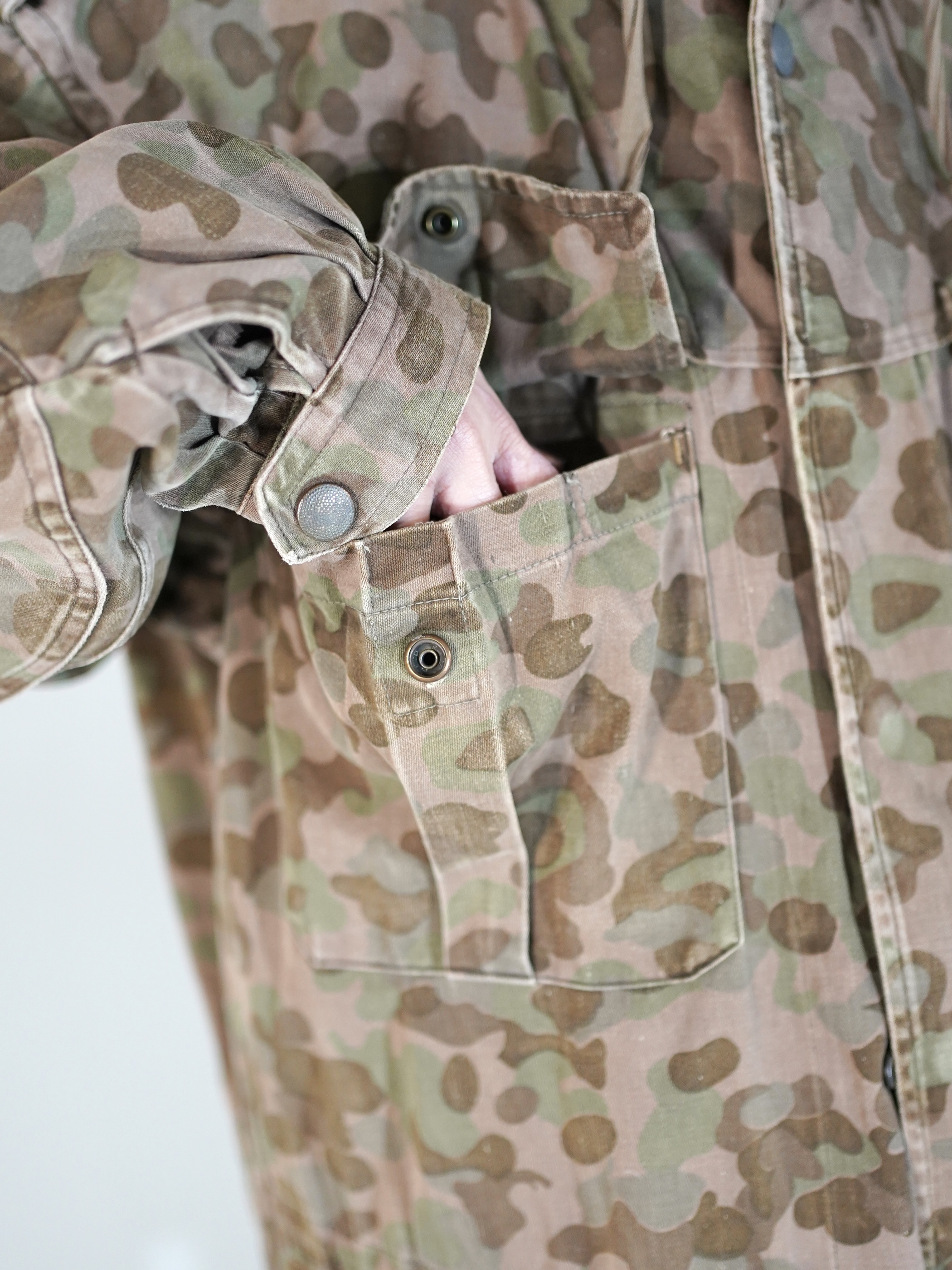 しっかりとしたコットン地で他国とは違い、ファッション性の高いカモ柄で個人的には好きなコートでもあります。