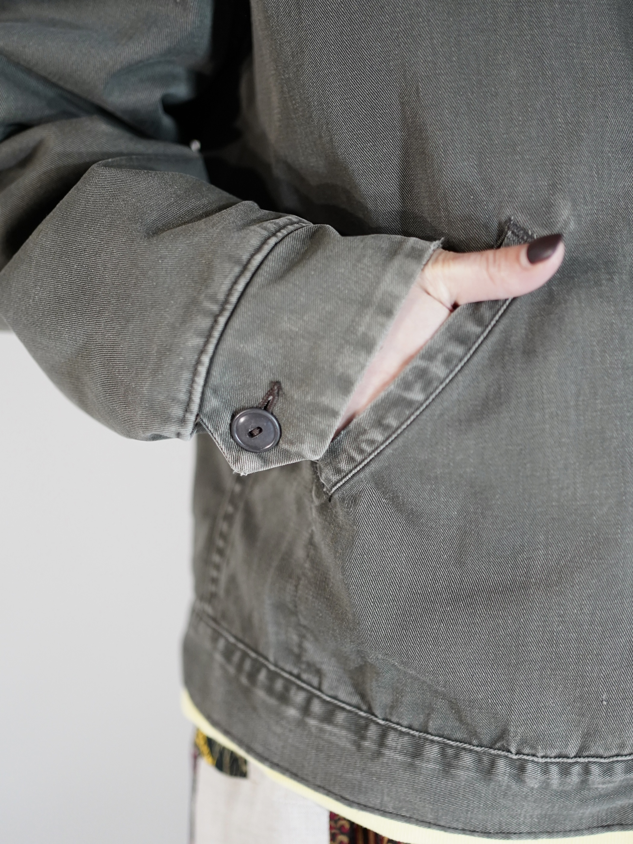 グレーにほんの少しだけカーキを足した様な生地のワークジャケット。