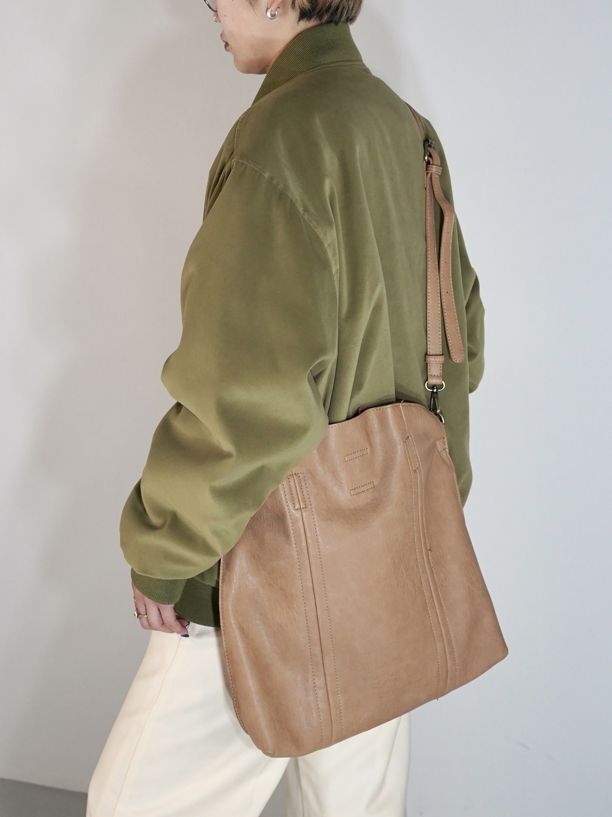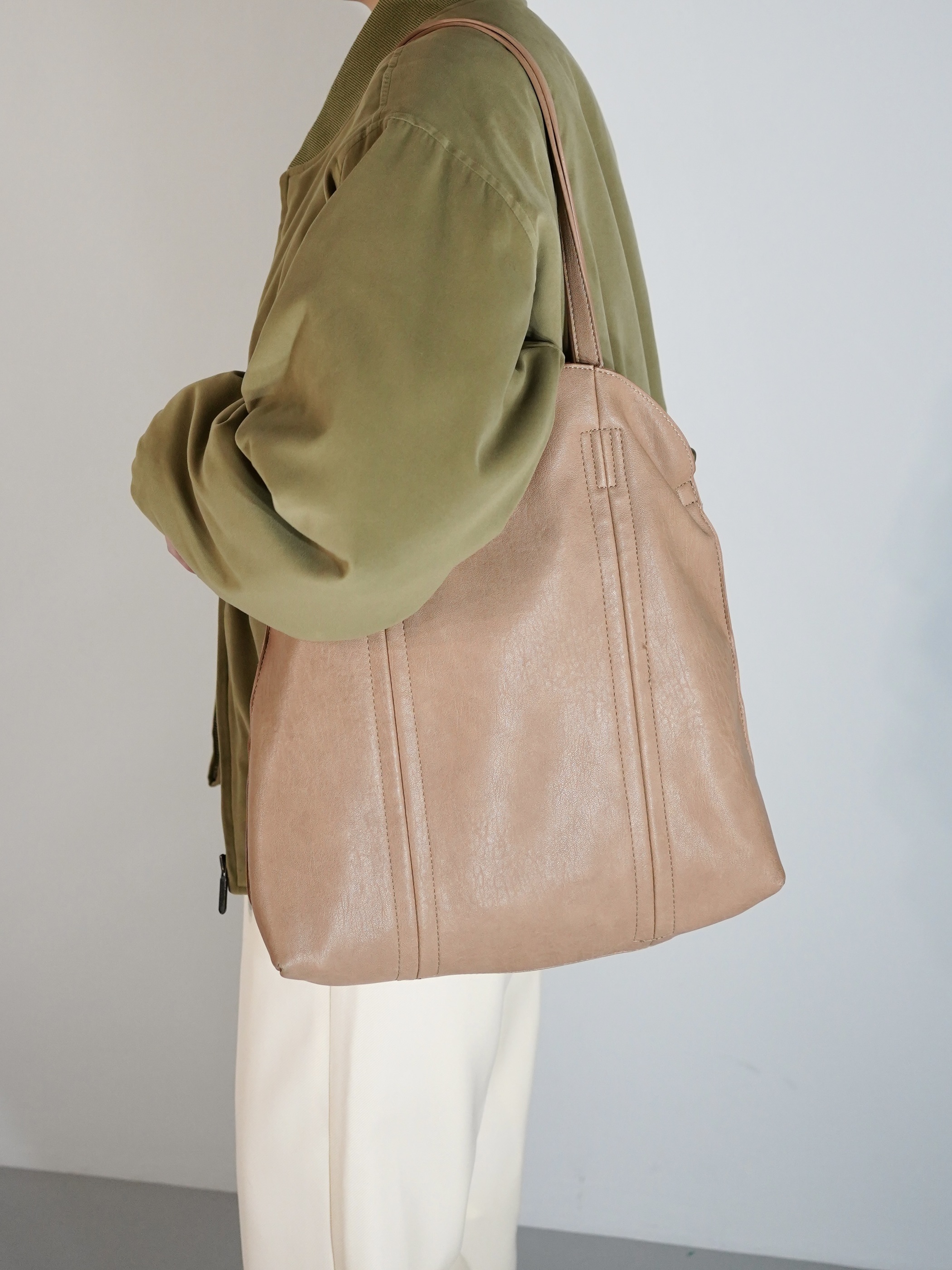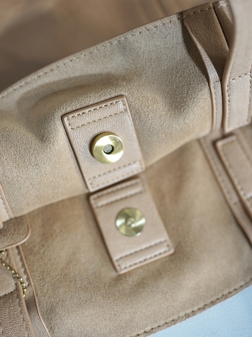 ミルキーなブラウンカラーが春らしい柔らかなフェイクレザーのバッグ