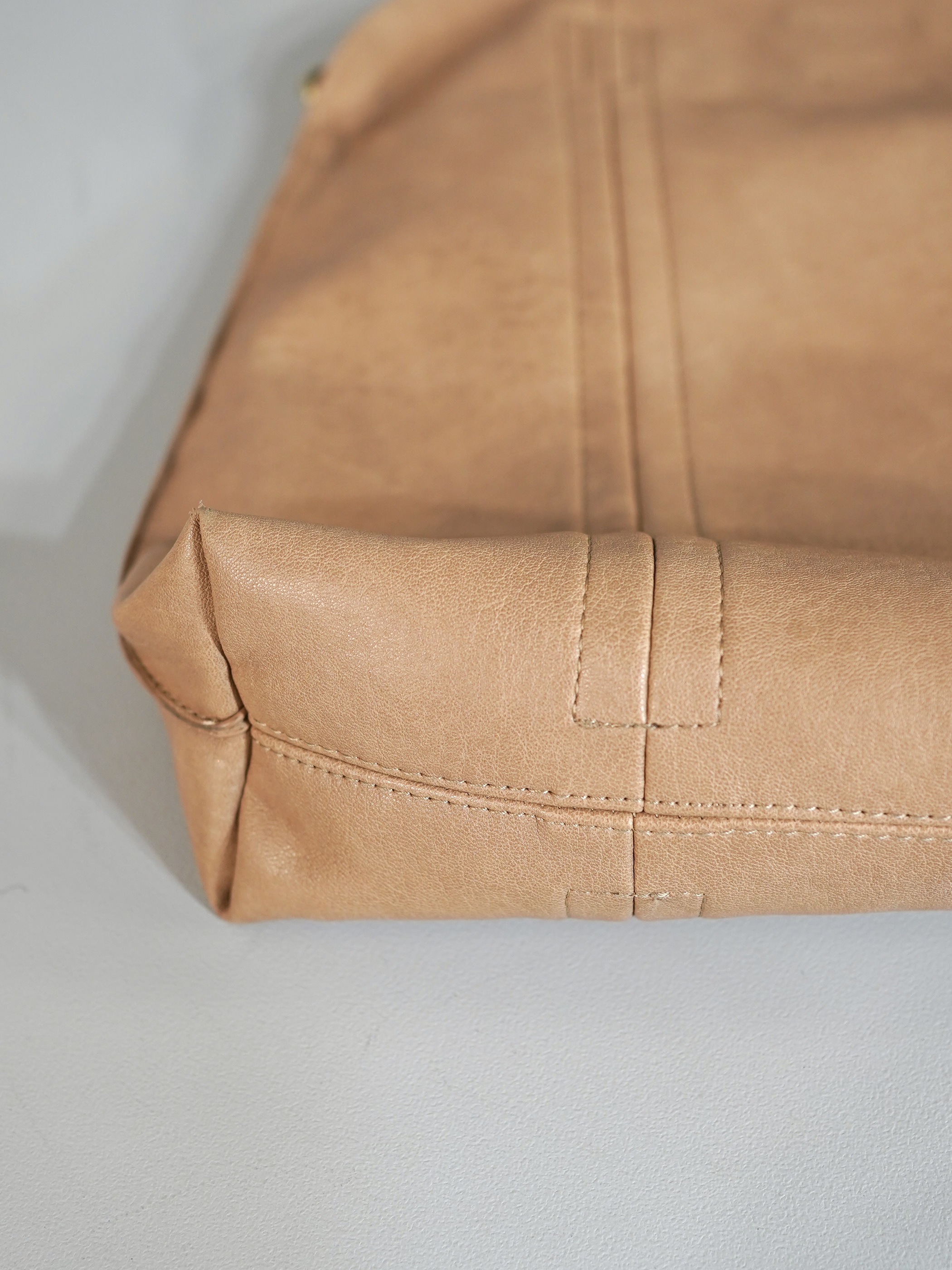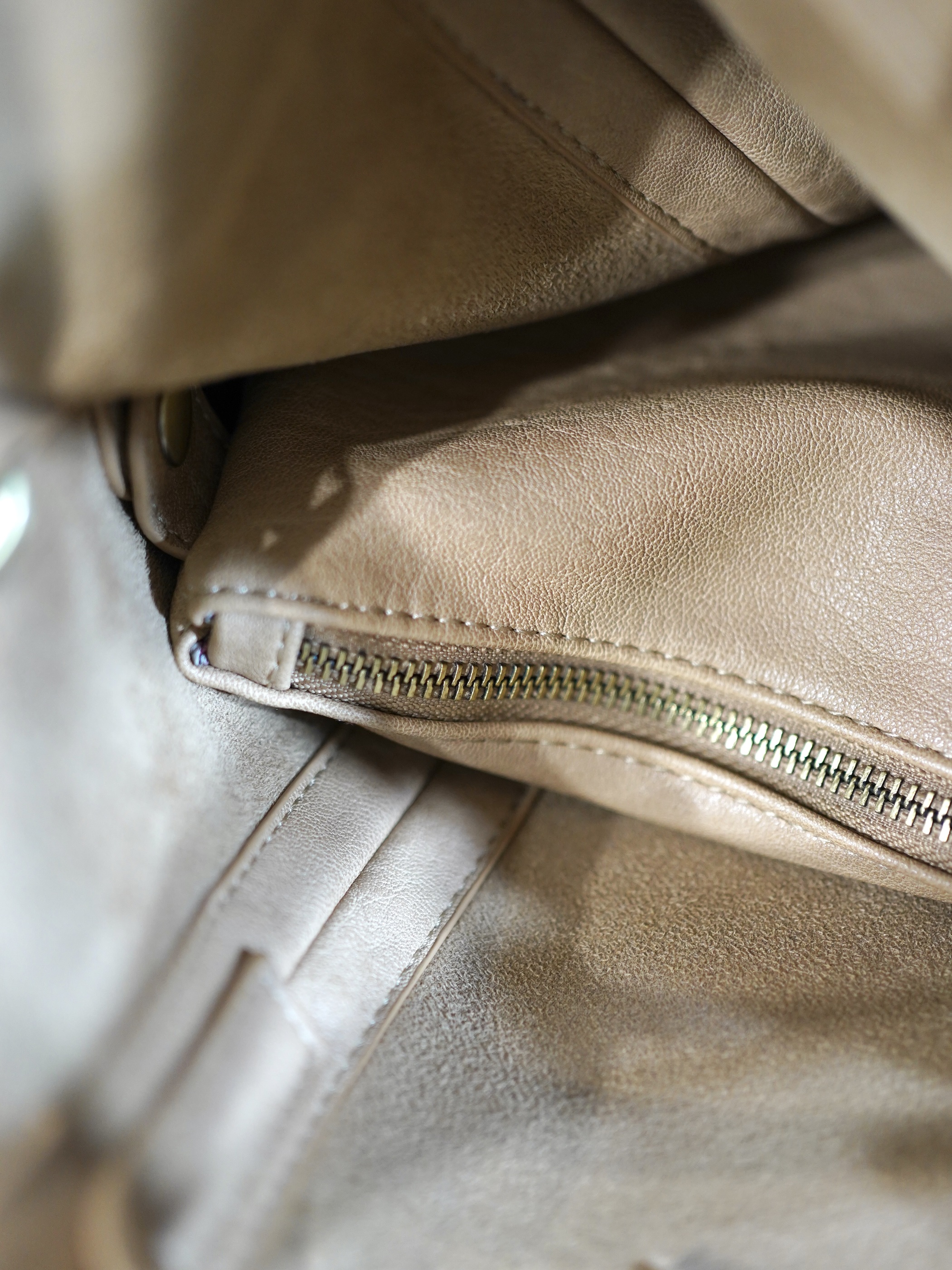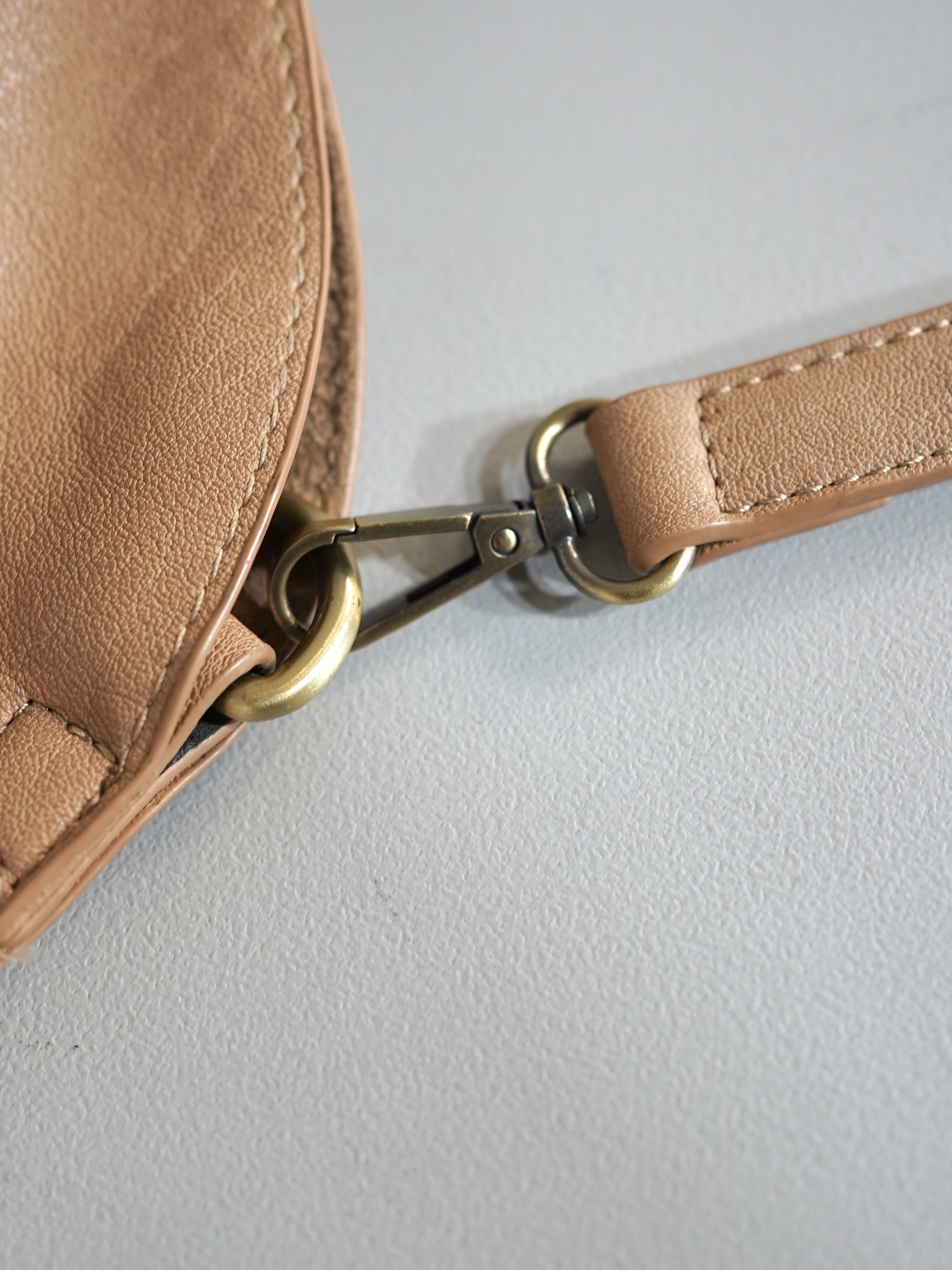 ミルキーなブラウンカラーが春らしい柔らかなフェイクレザーのバッグ