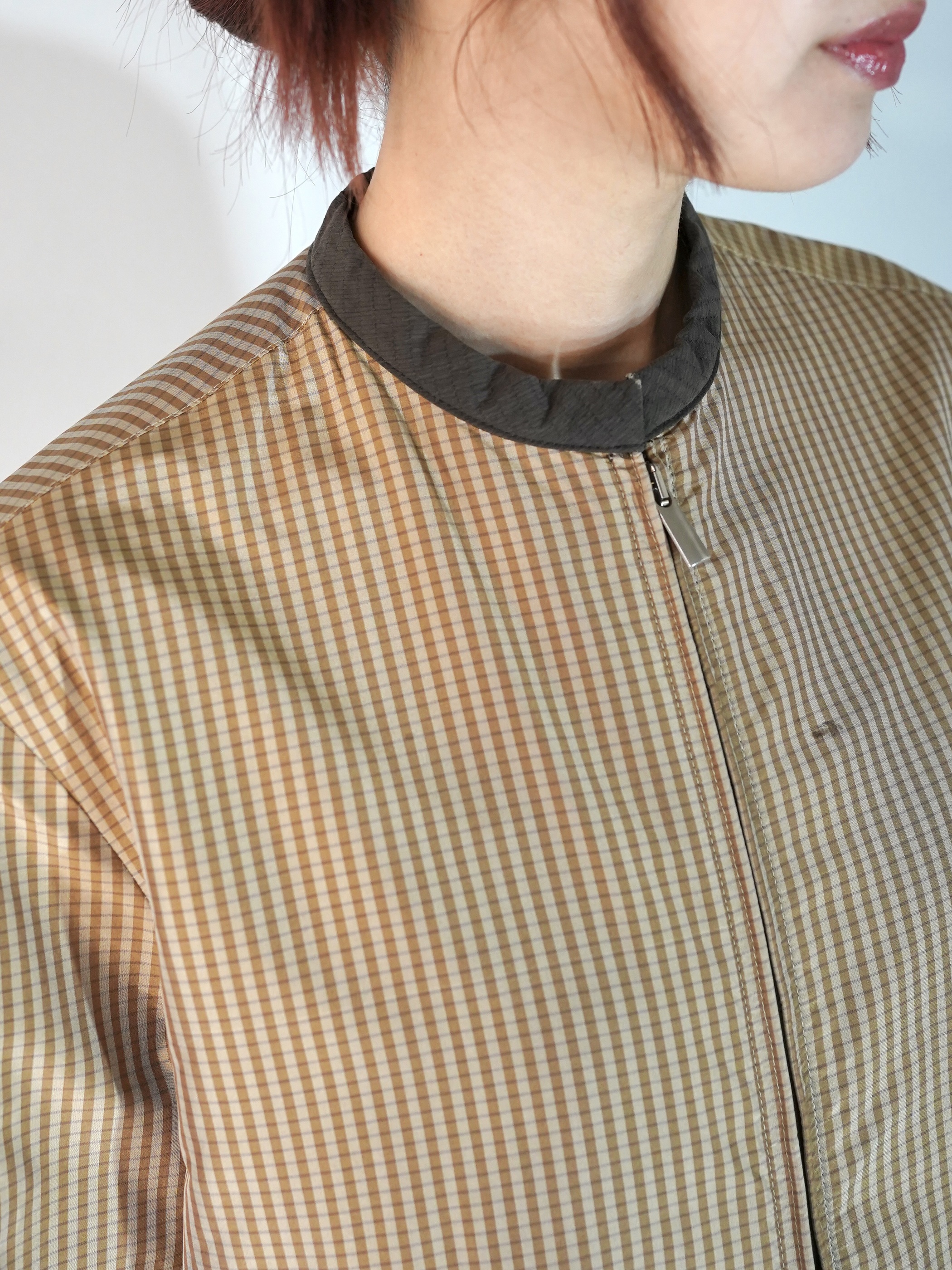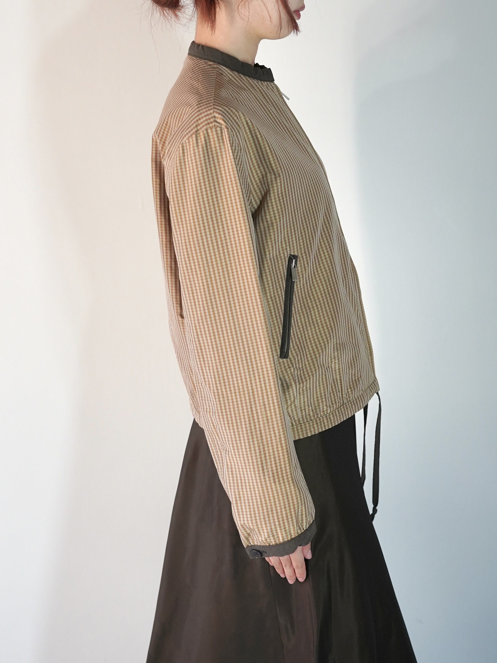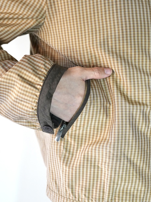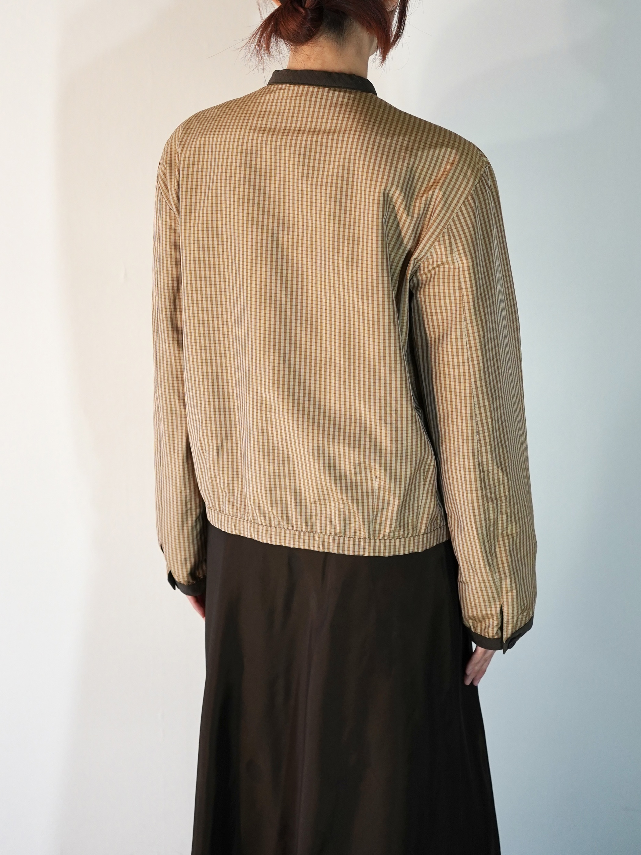 ナイロンにも似た印象を受ける光沢のシルク100%で仕立てられたジップジャケット