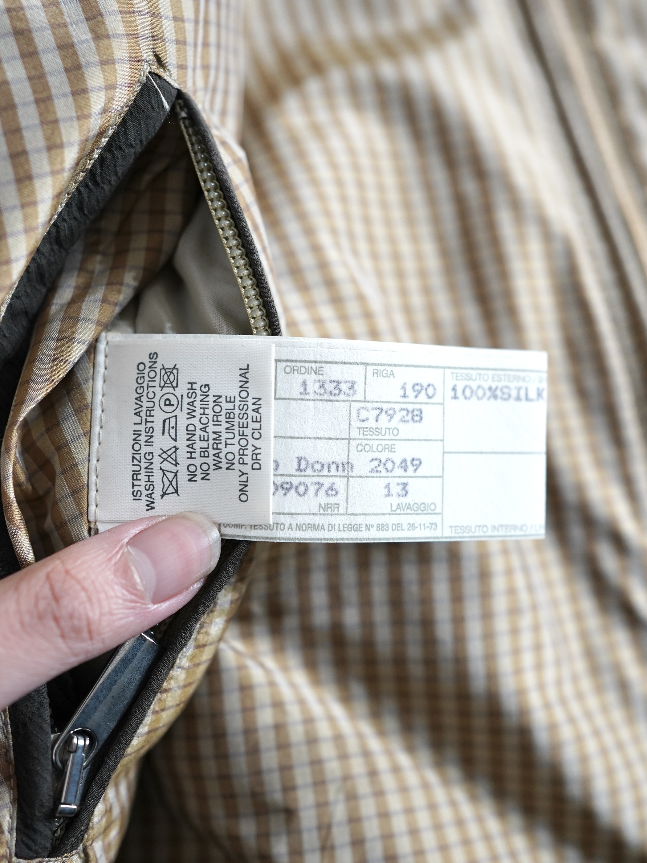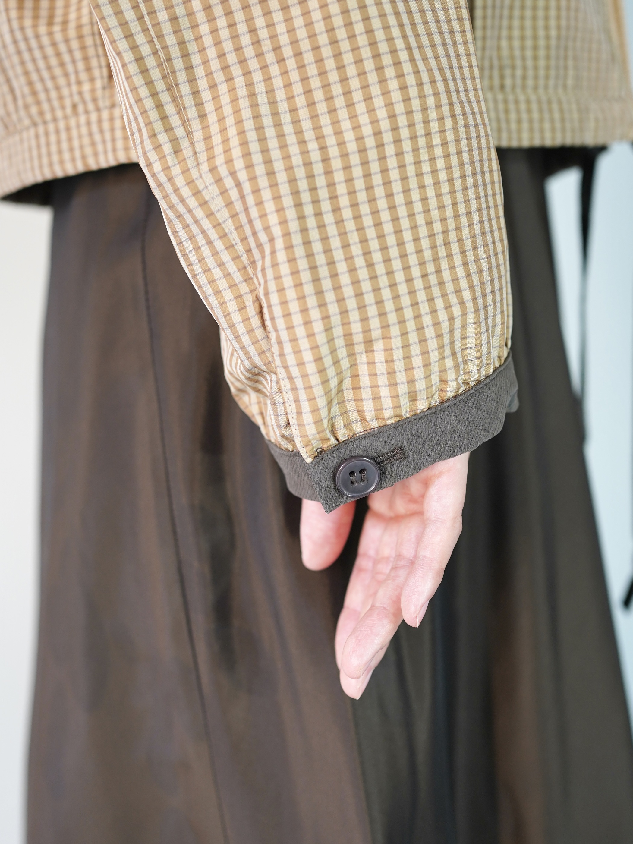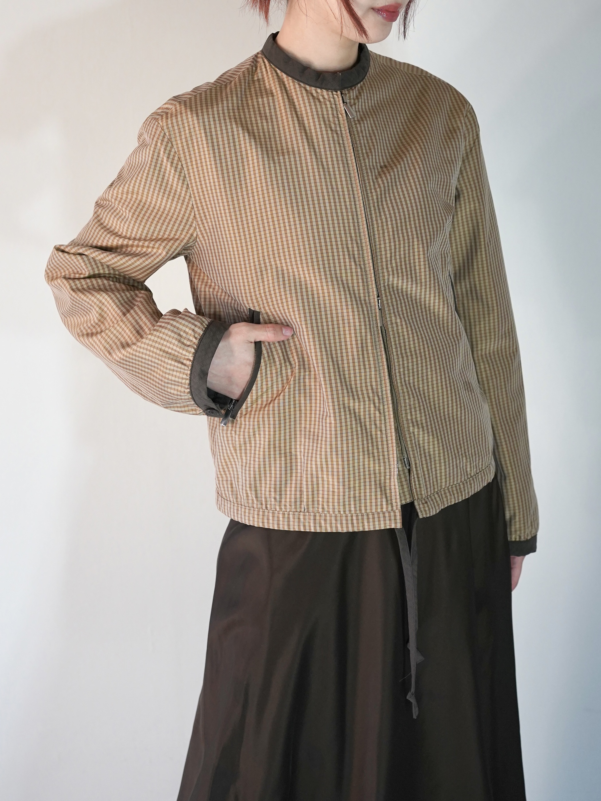 ナイロンにも似た印象を受ける光沢のシルク100%で仕立てられたジップジャケット