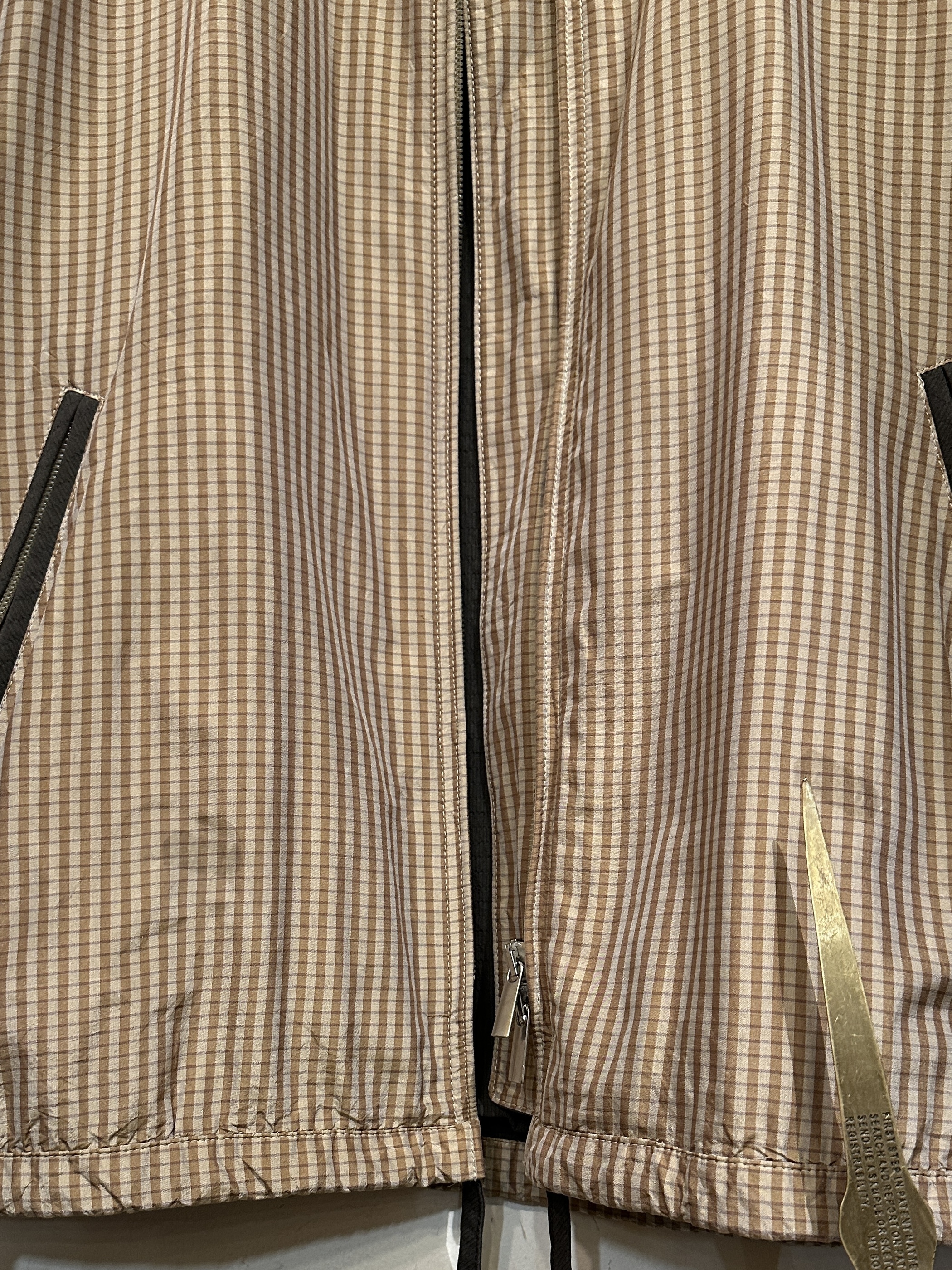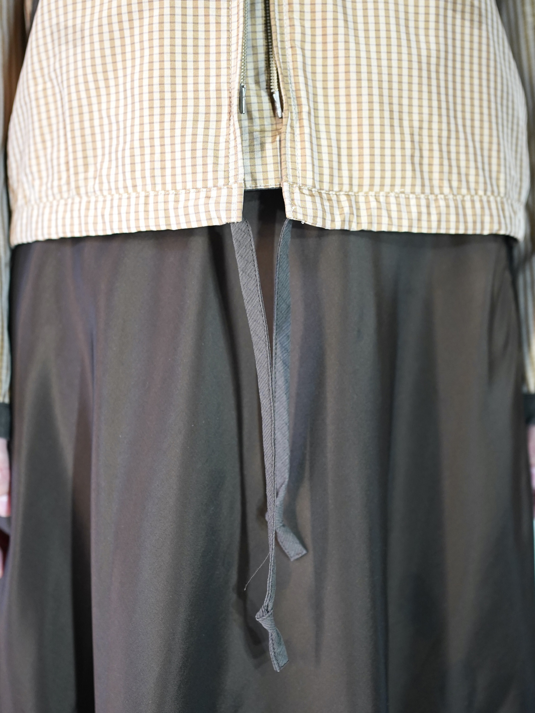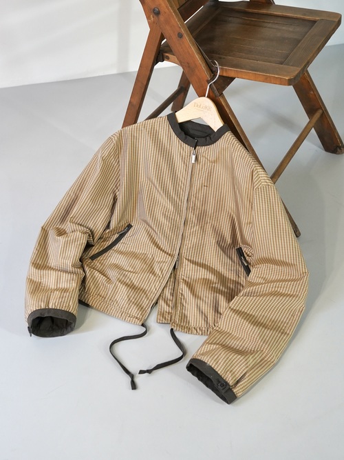 襟はすっきりとカラーレス、フロントはダブルジップ、裾はドローコード仕様