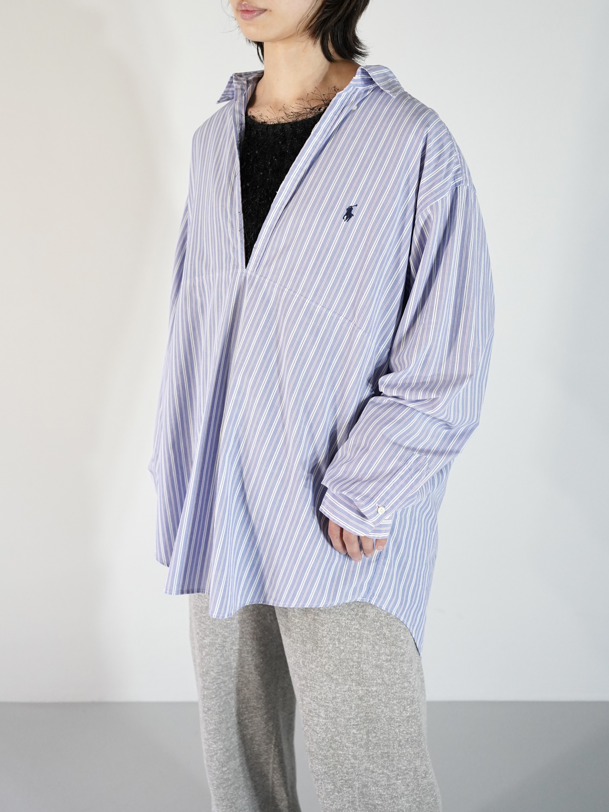 Ralph Laurenのストライプシャツをプルオーバータイプへカスタムした1着