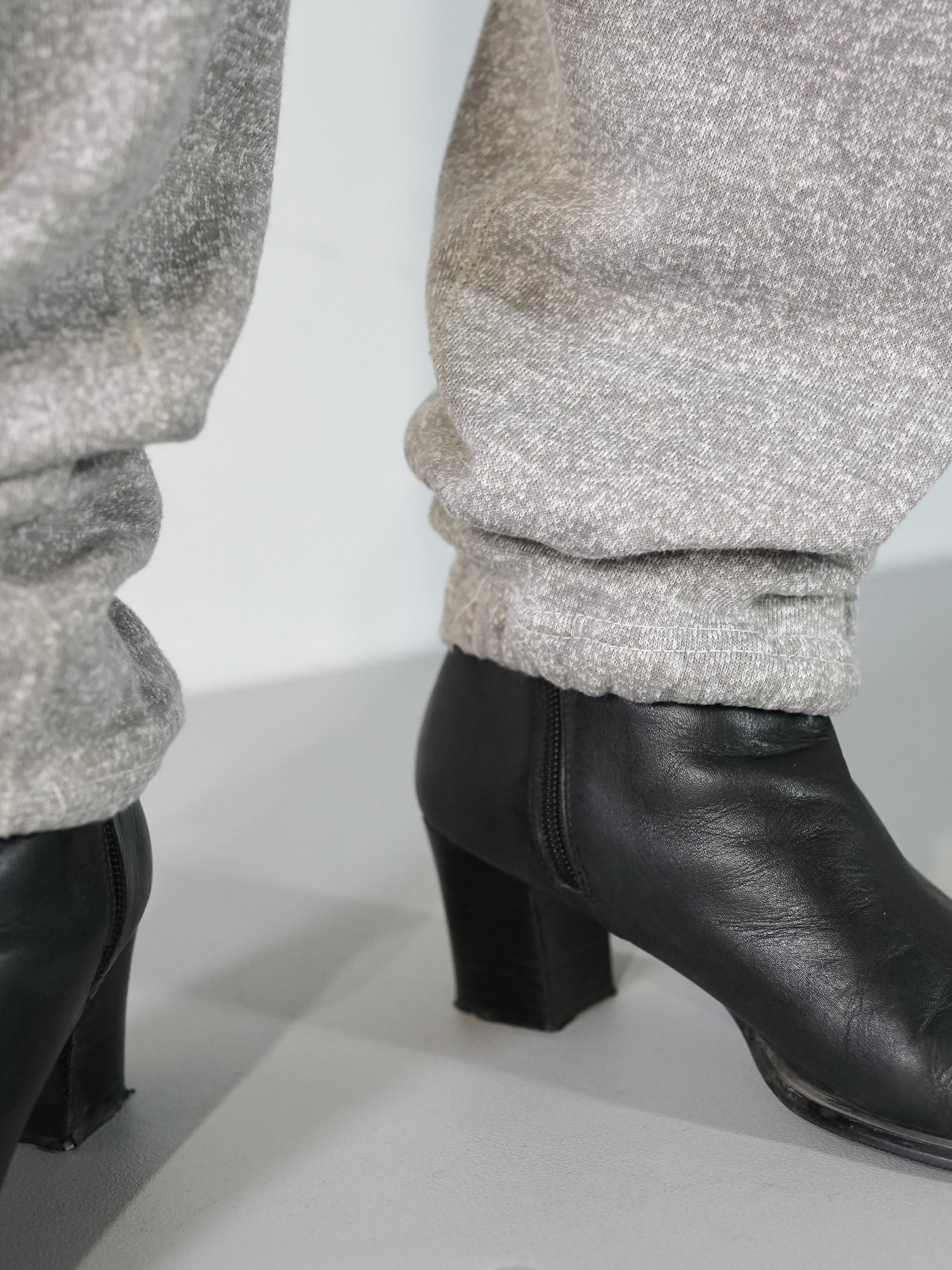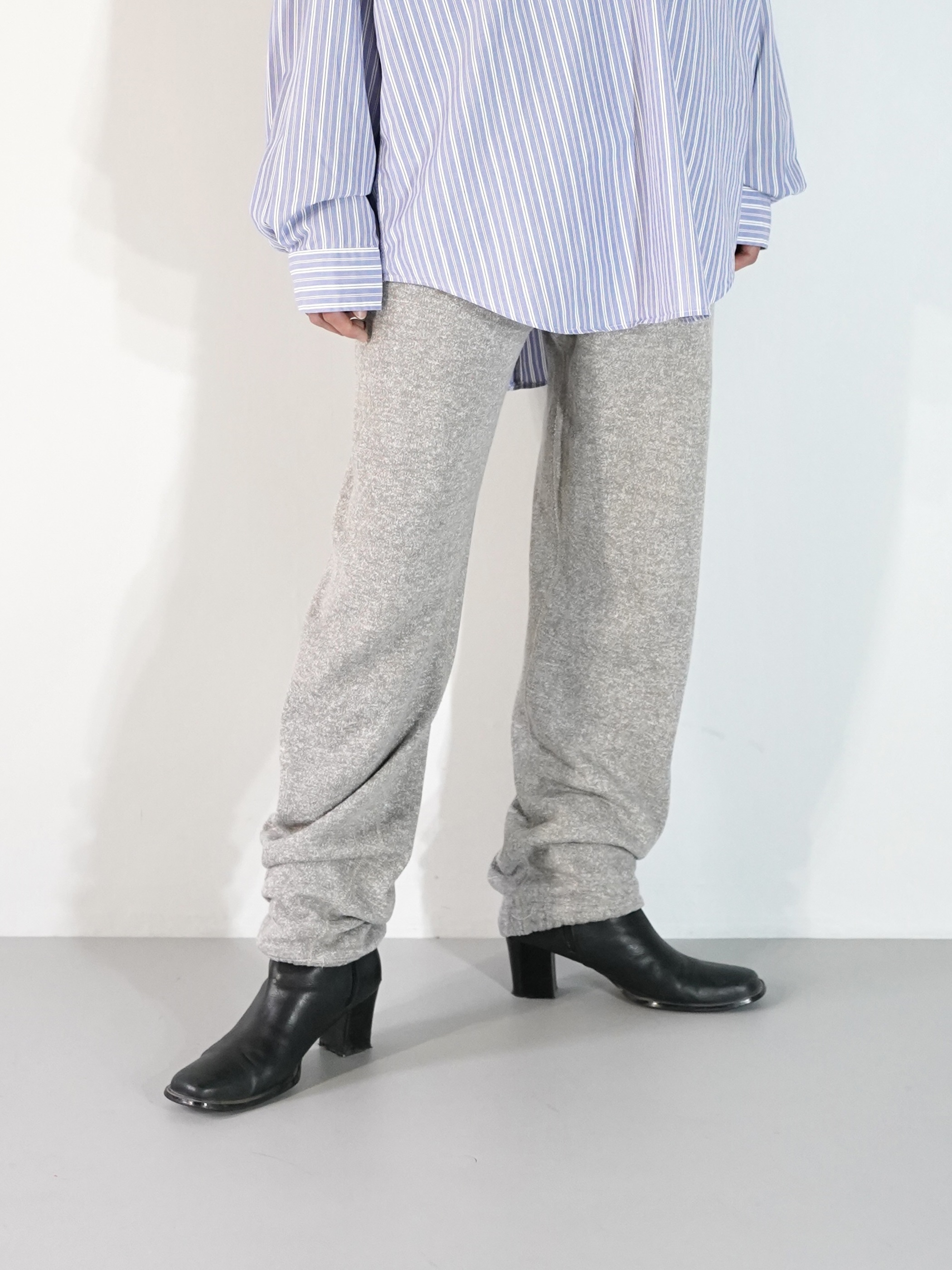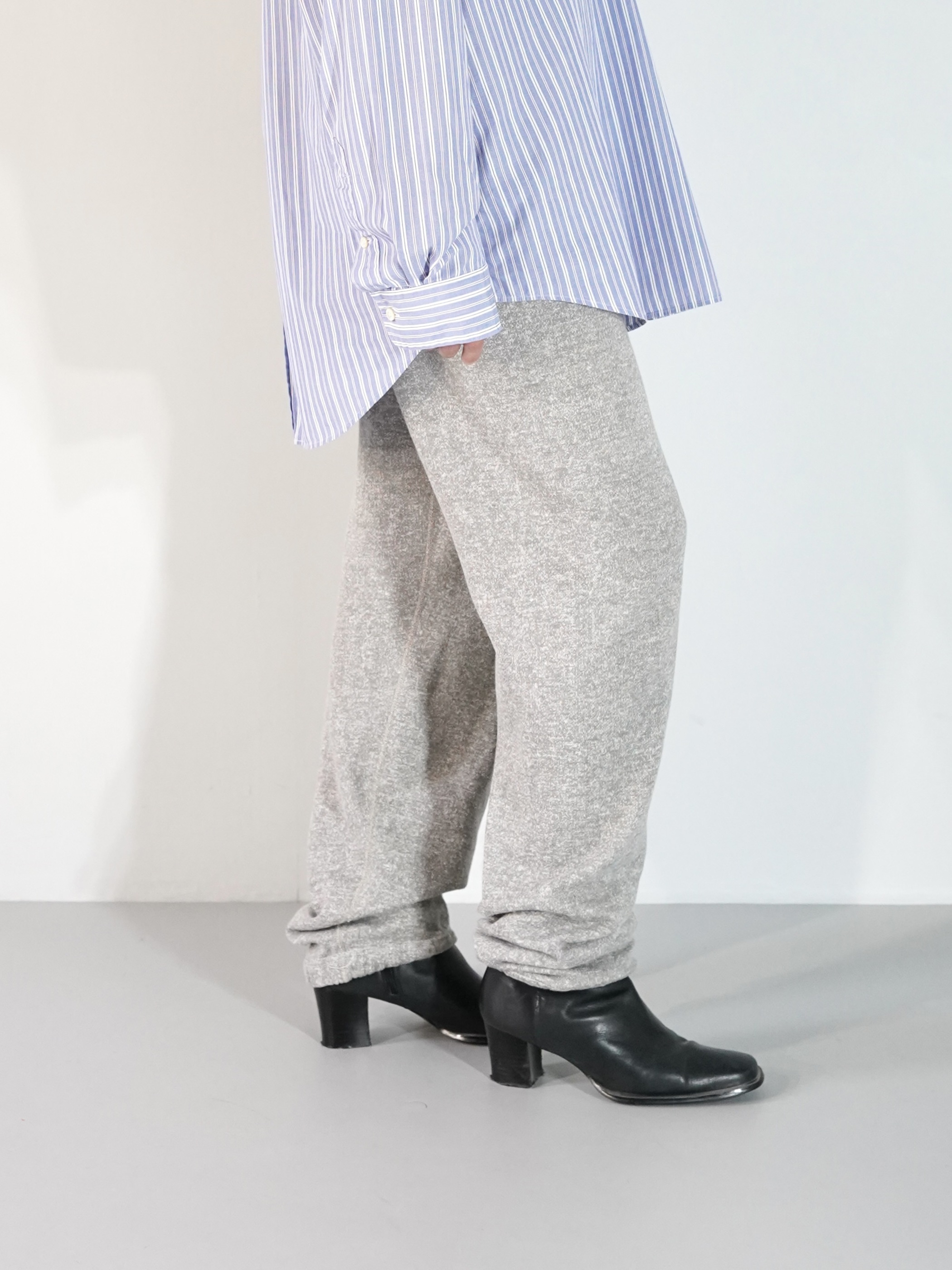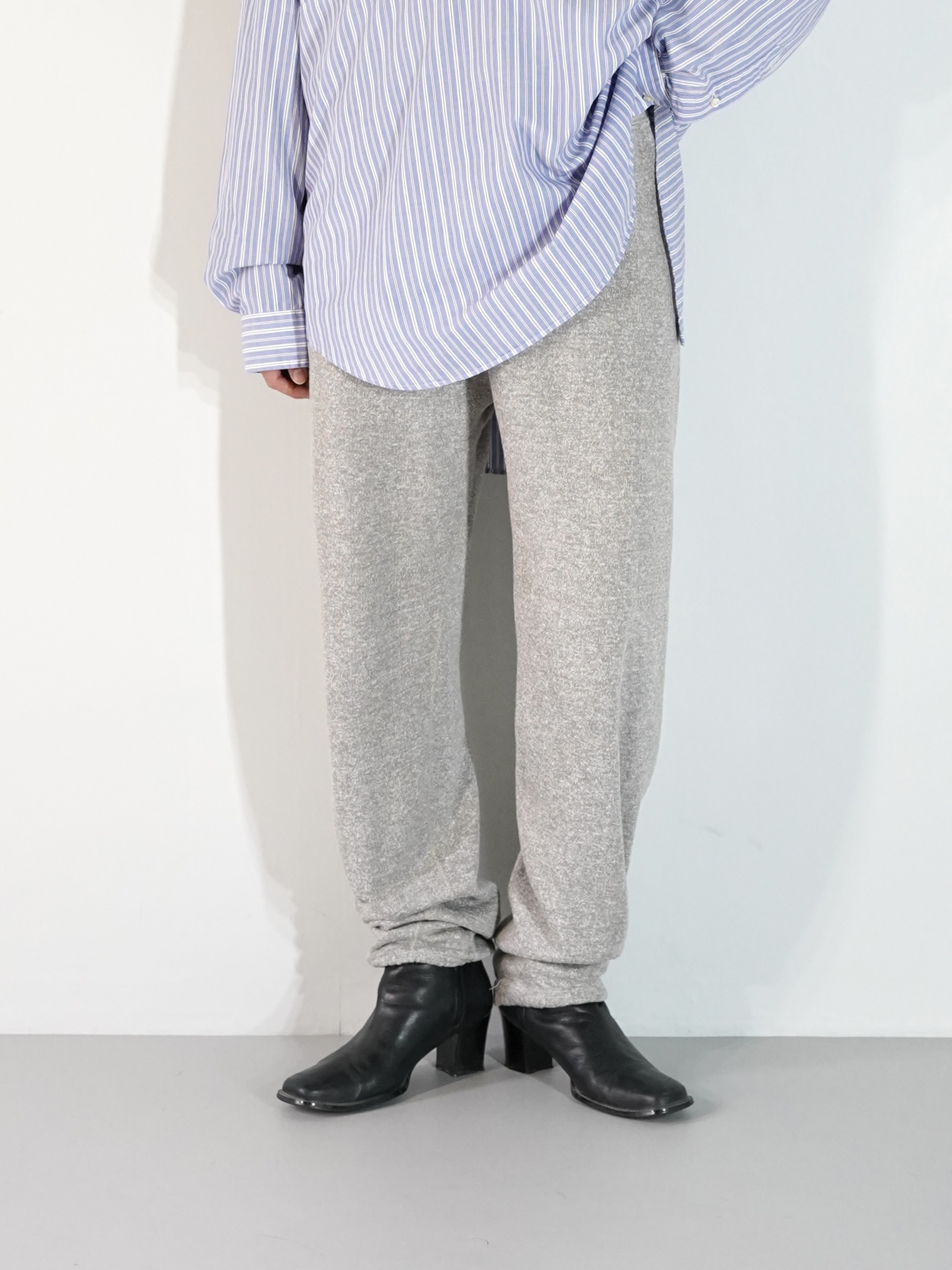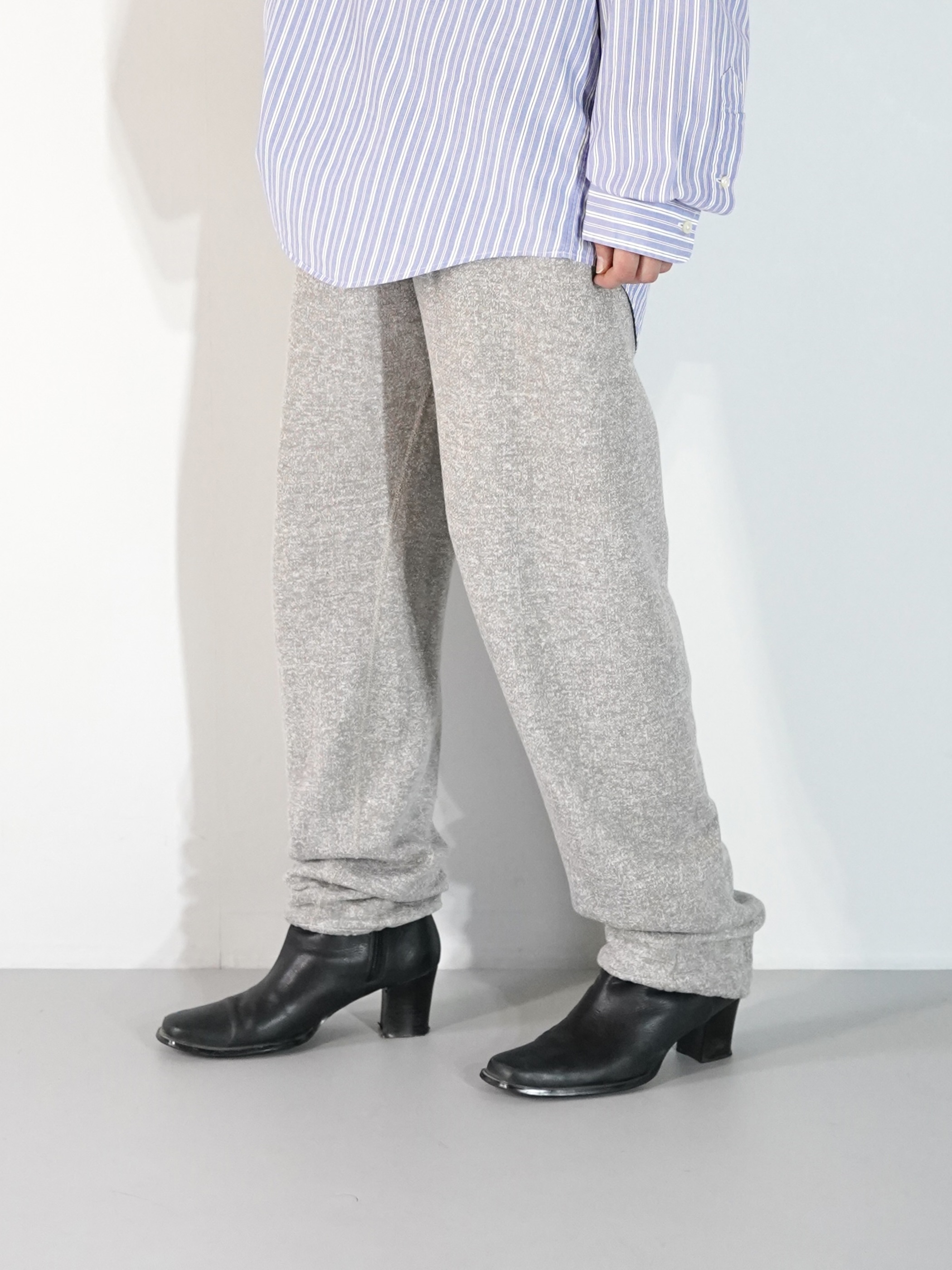 股下にガゼットが施された杢グレーの80sスウェパン