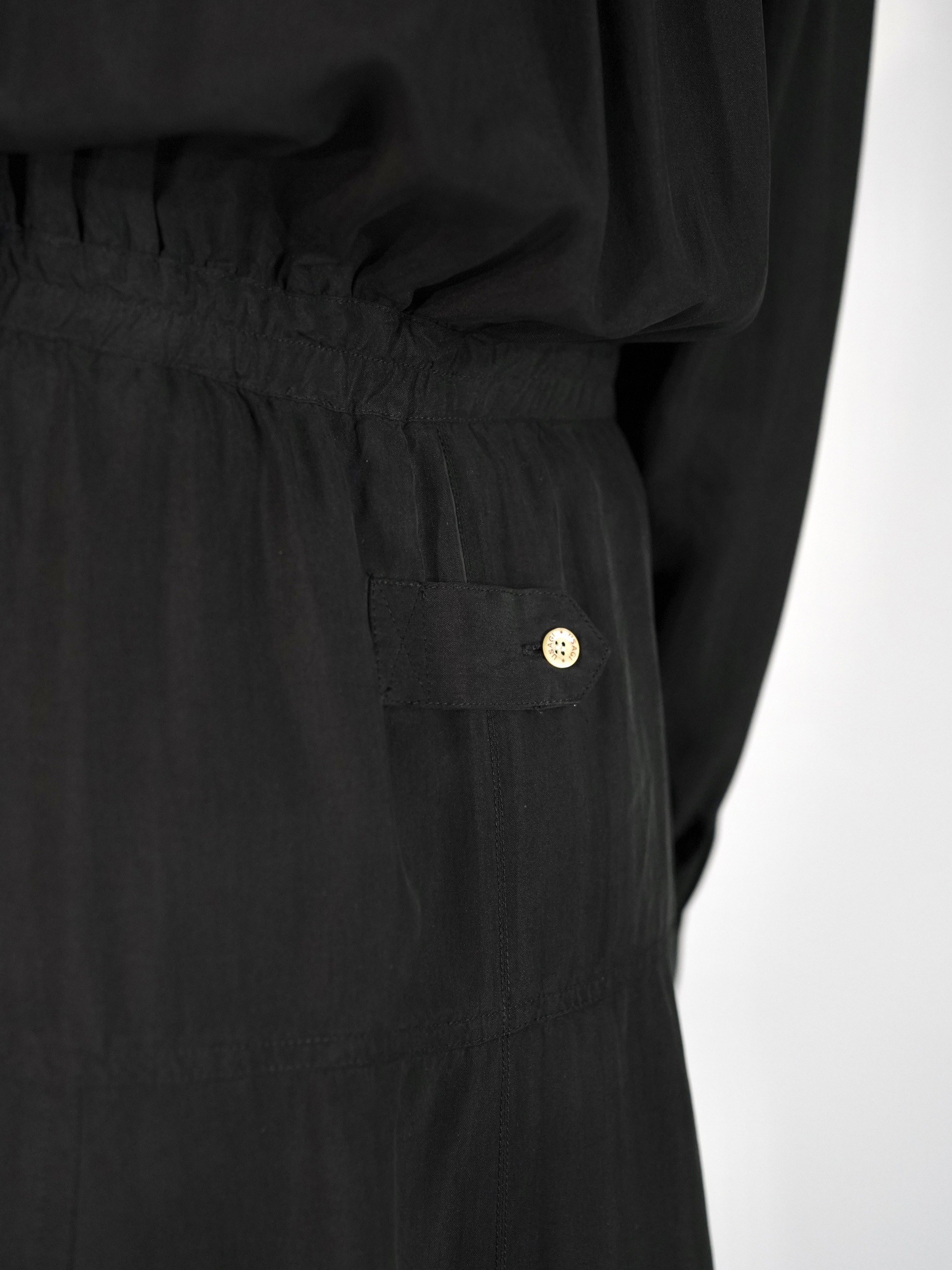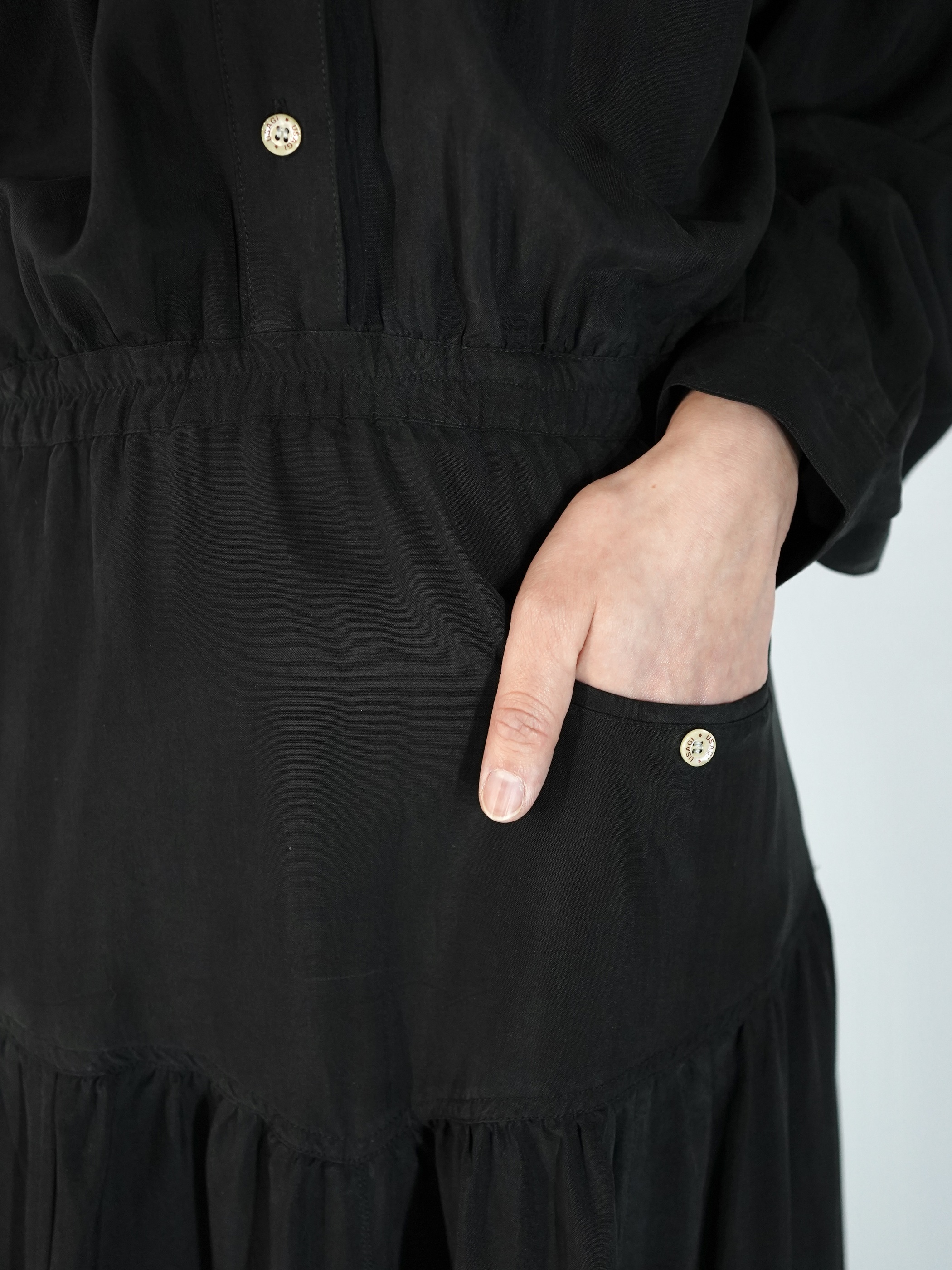 ウエストにアクセントで切り替えが入り、メリハリのあるシルエットに仕上がっています