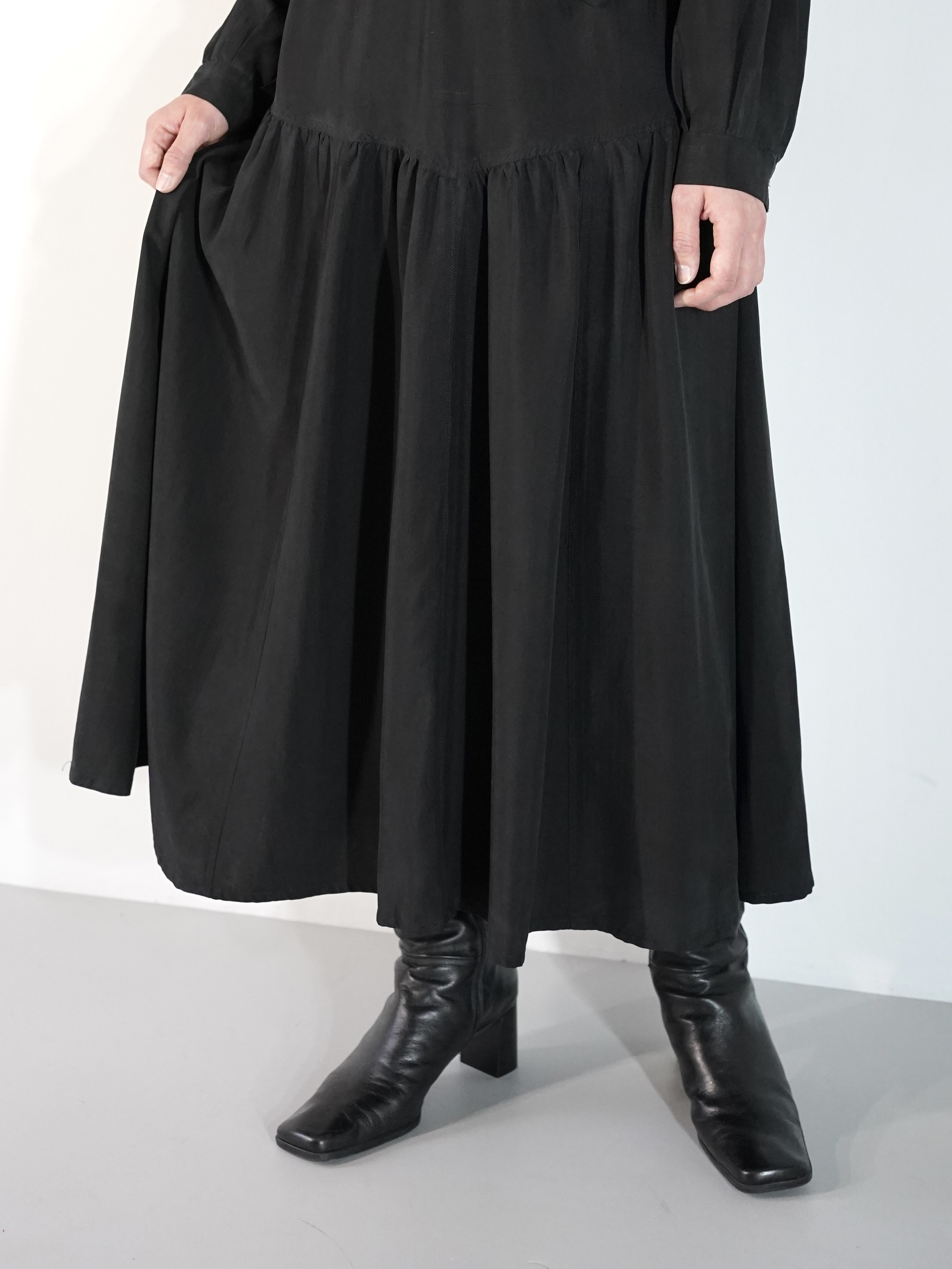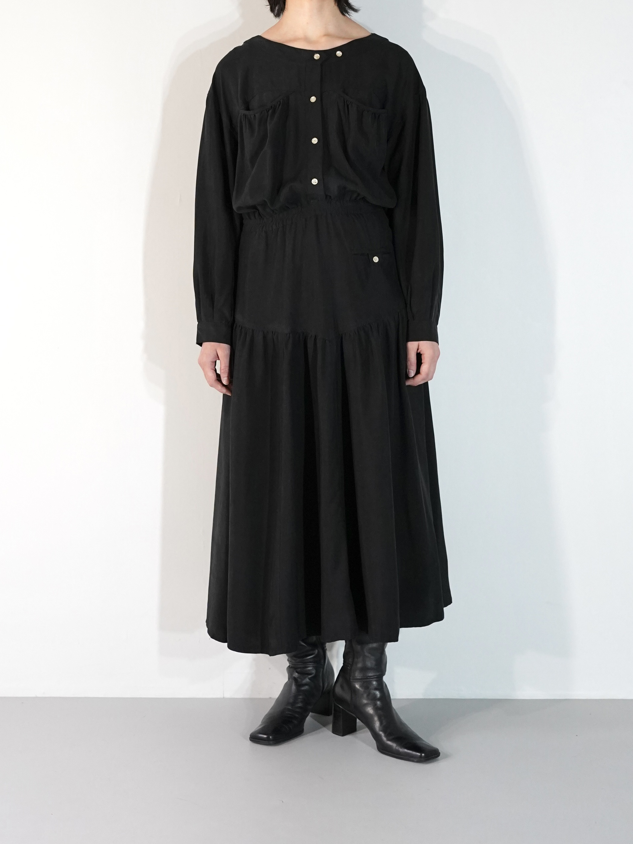 1980s Gather Drape Silk One-piece