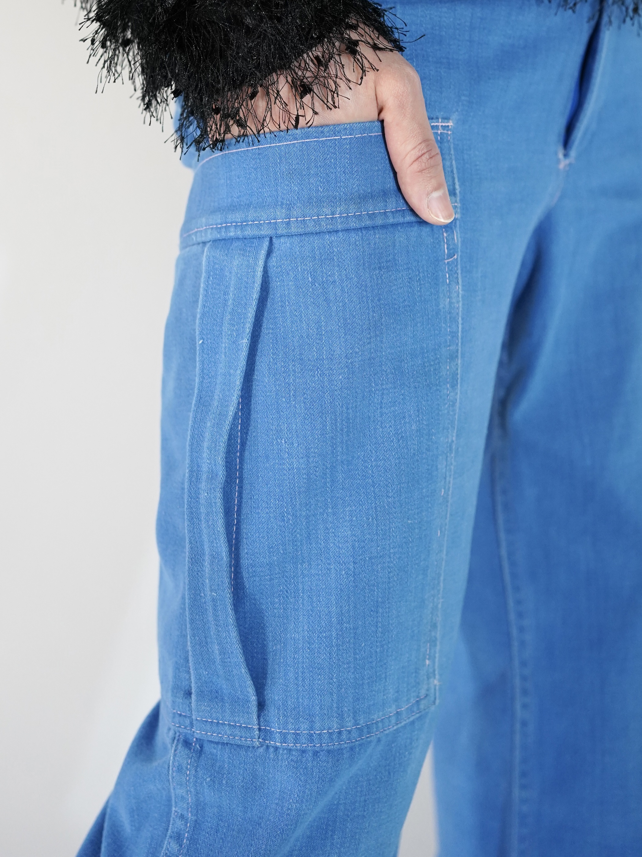 発色は良いが意外と馴染み、白やベージュなどのトップス/Teeと相性良さそうなスカイブルーといったところのカラーリング