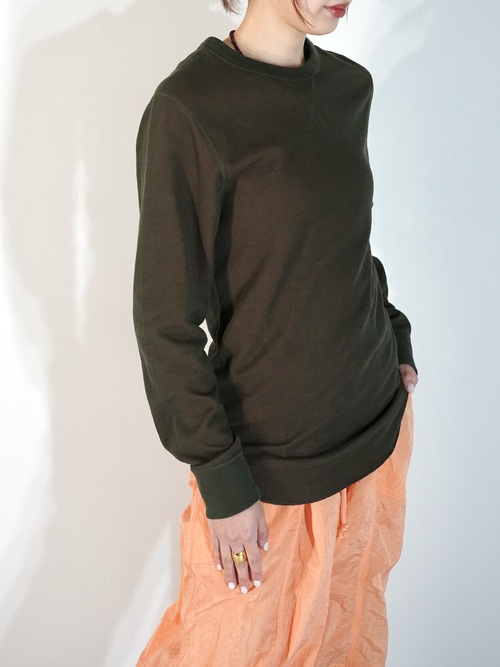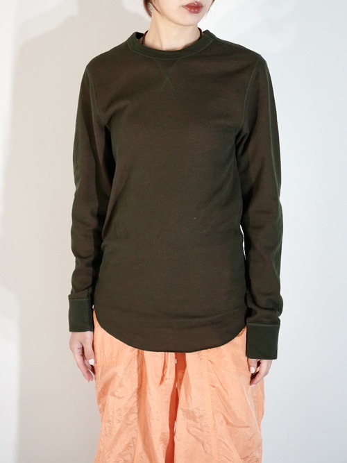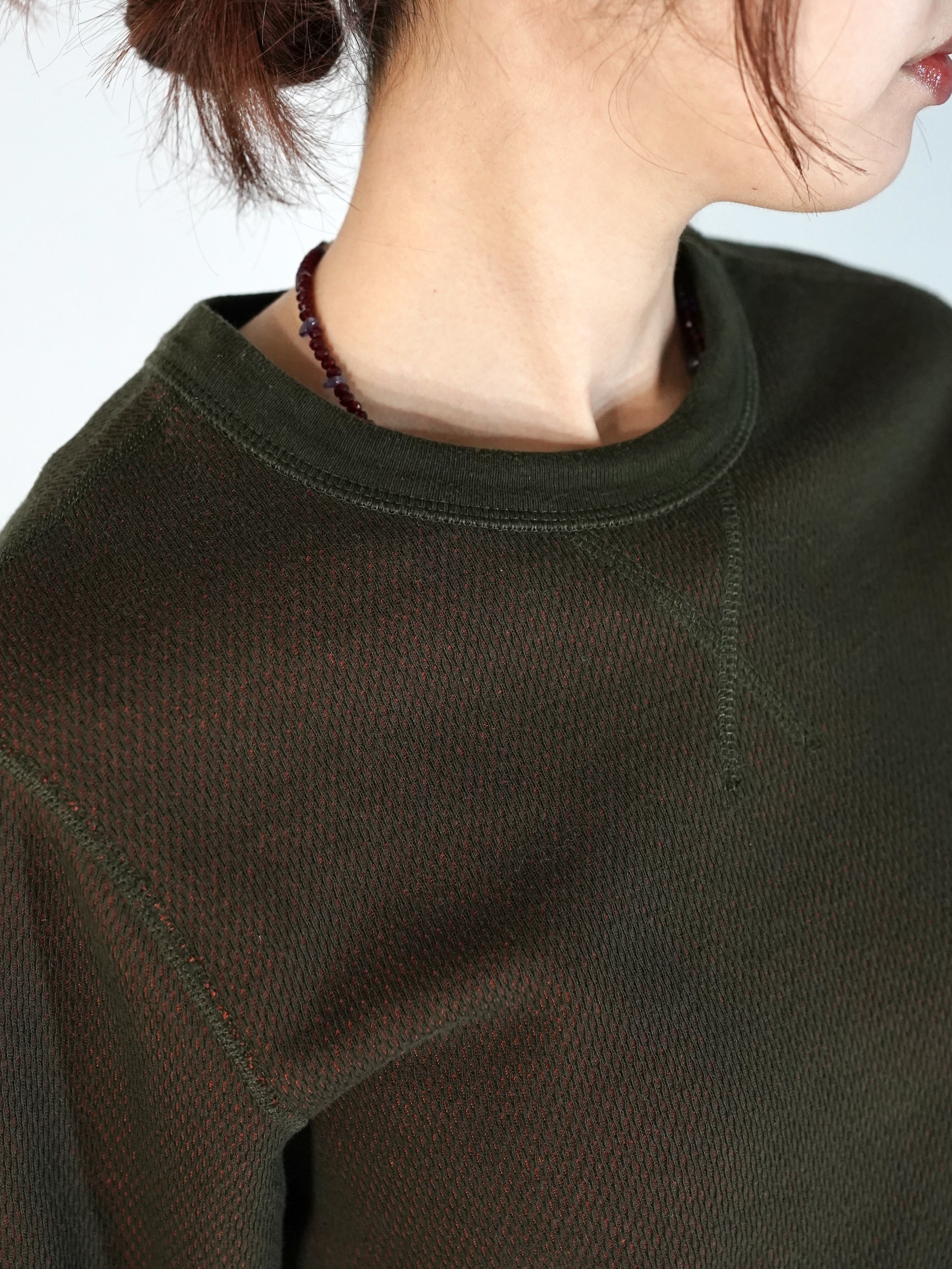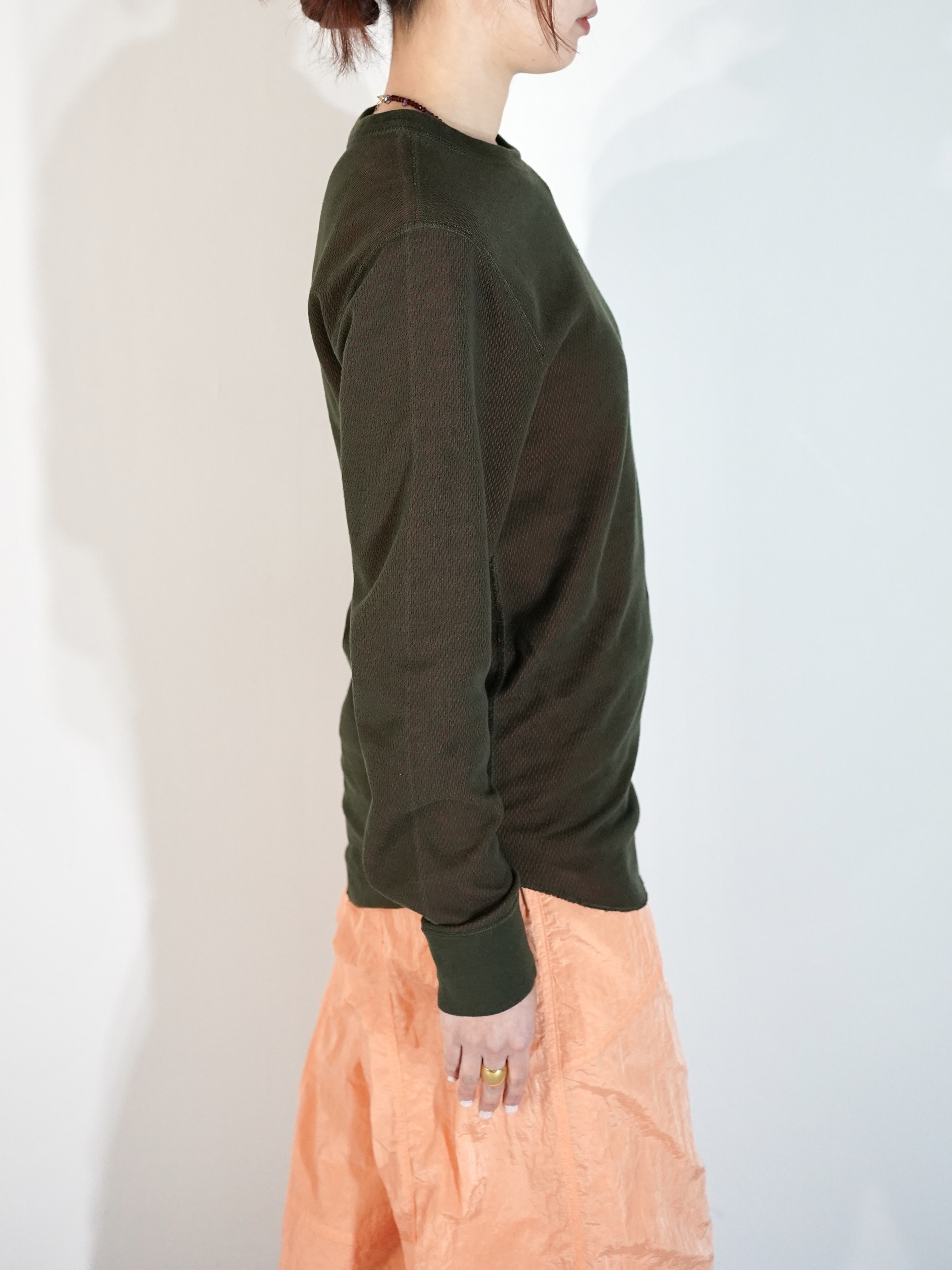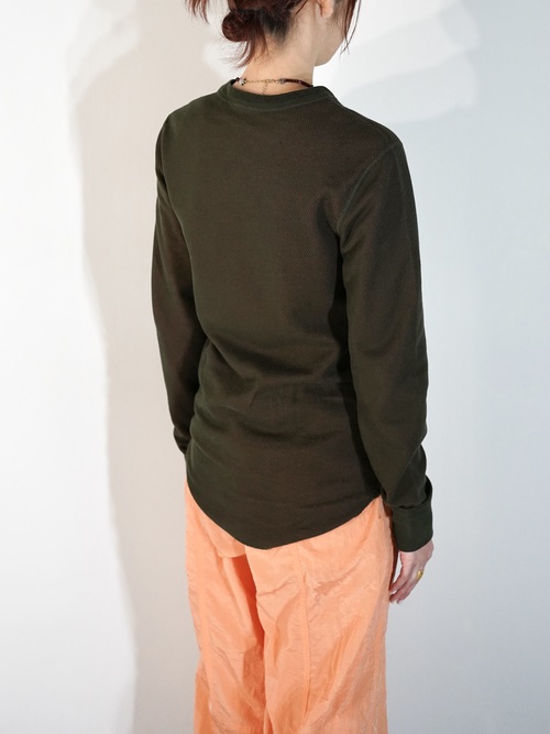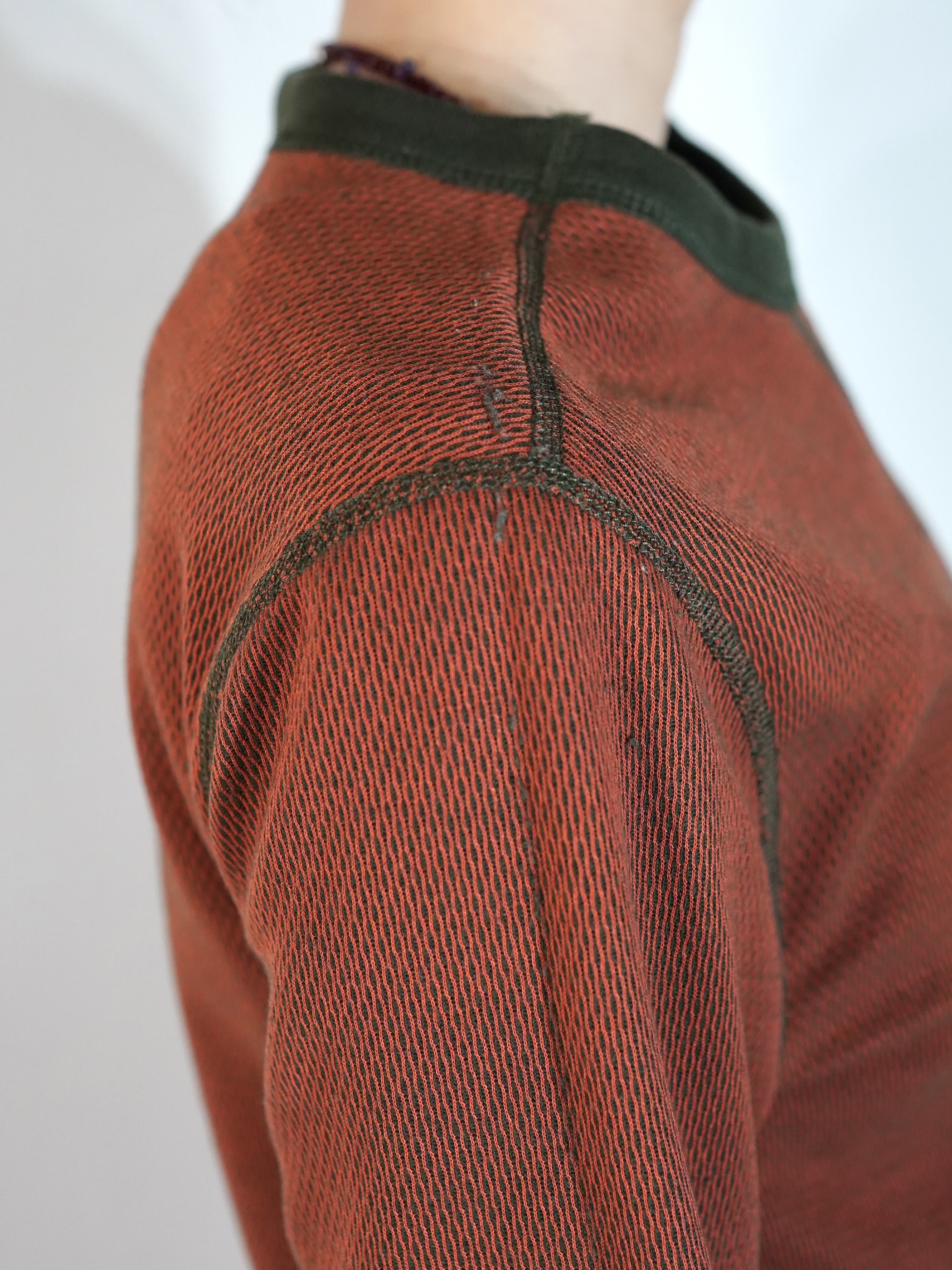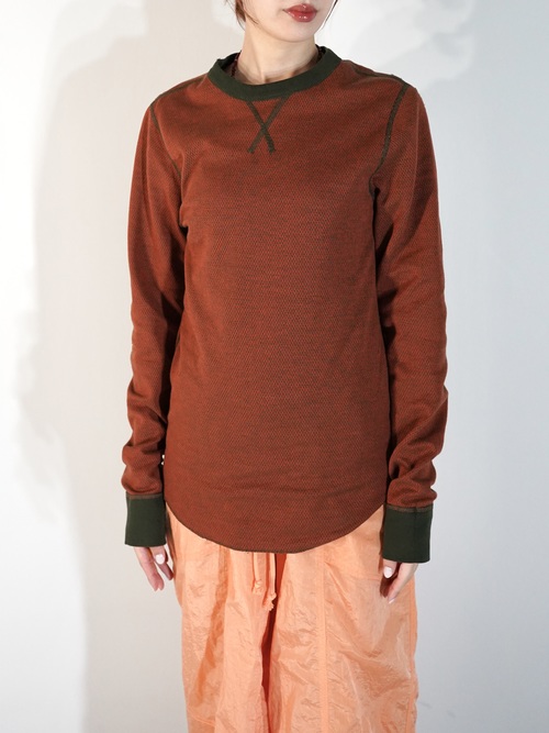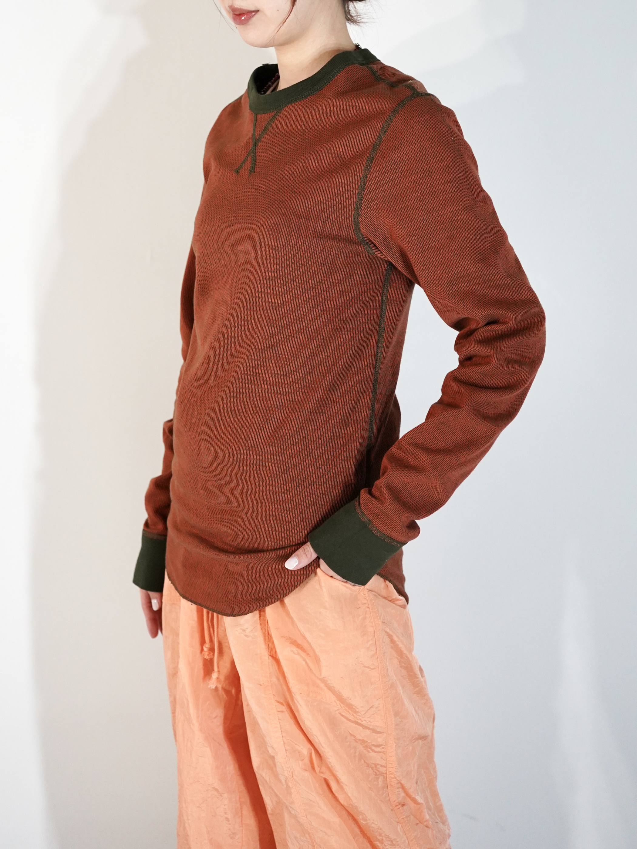 カーキとダークオレンジの2色が楽しめる珍しいリバーシブルのサーマル。