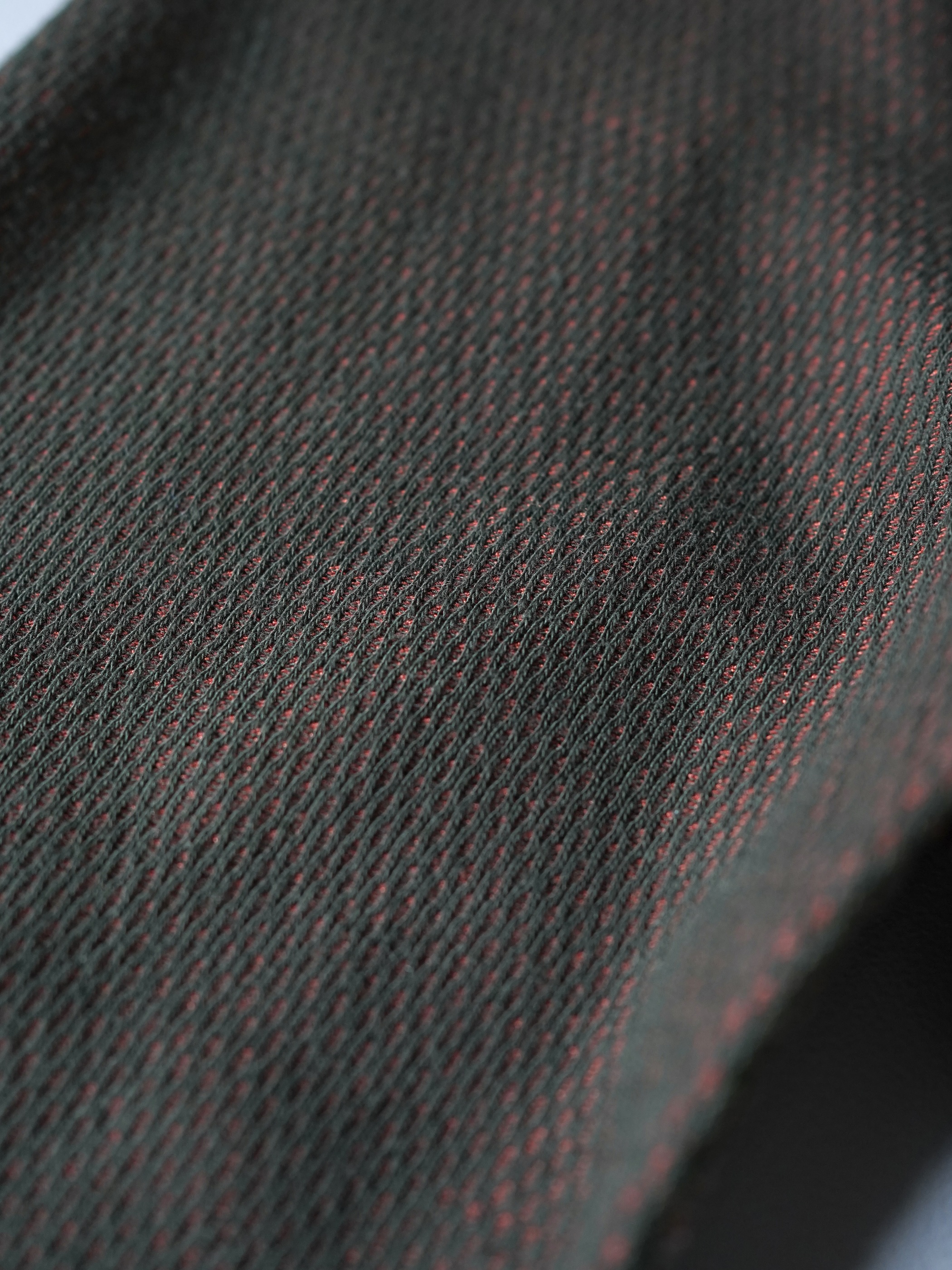 収縮性はあまりなく、シャリッとした生地感で手首のリブもしっかりとした印象。