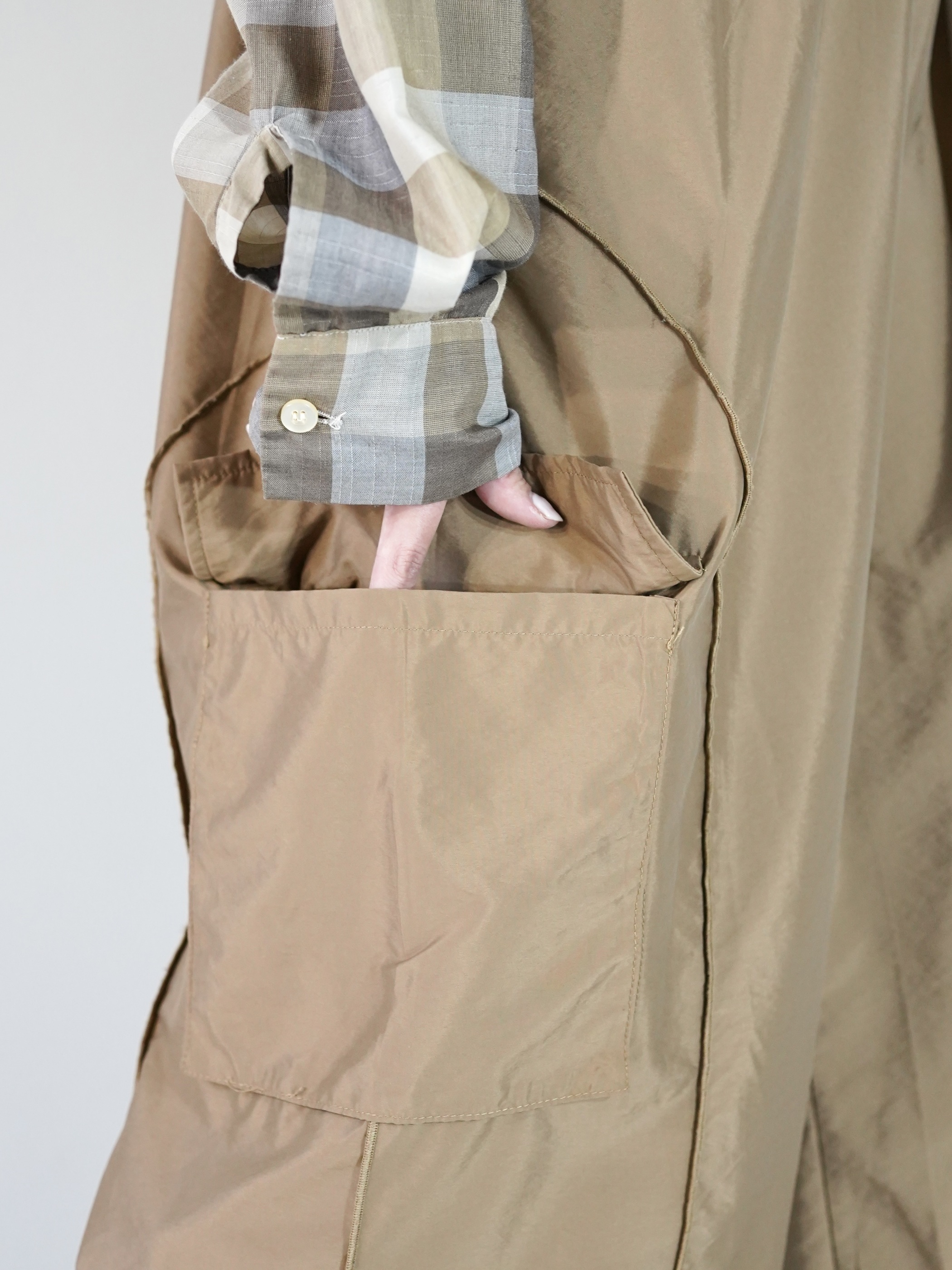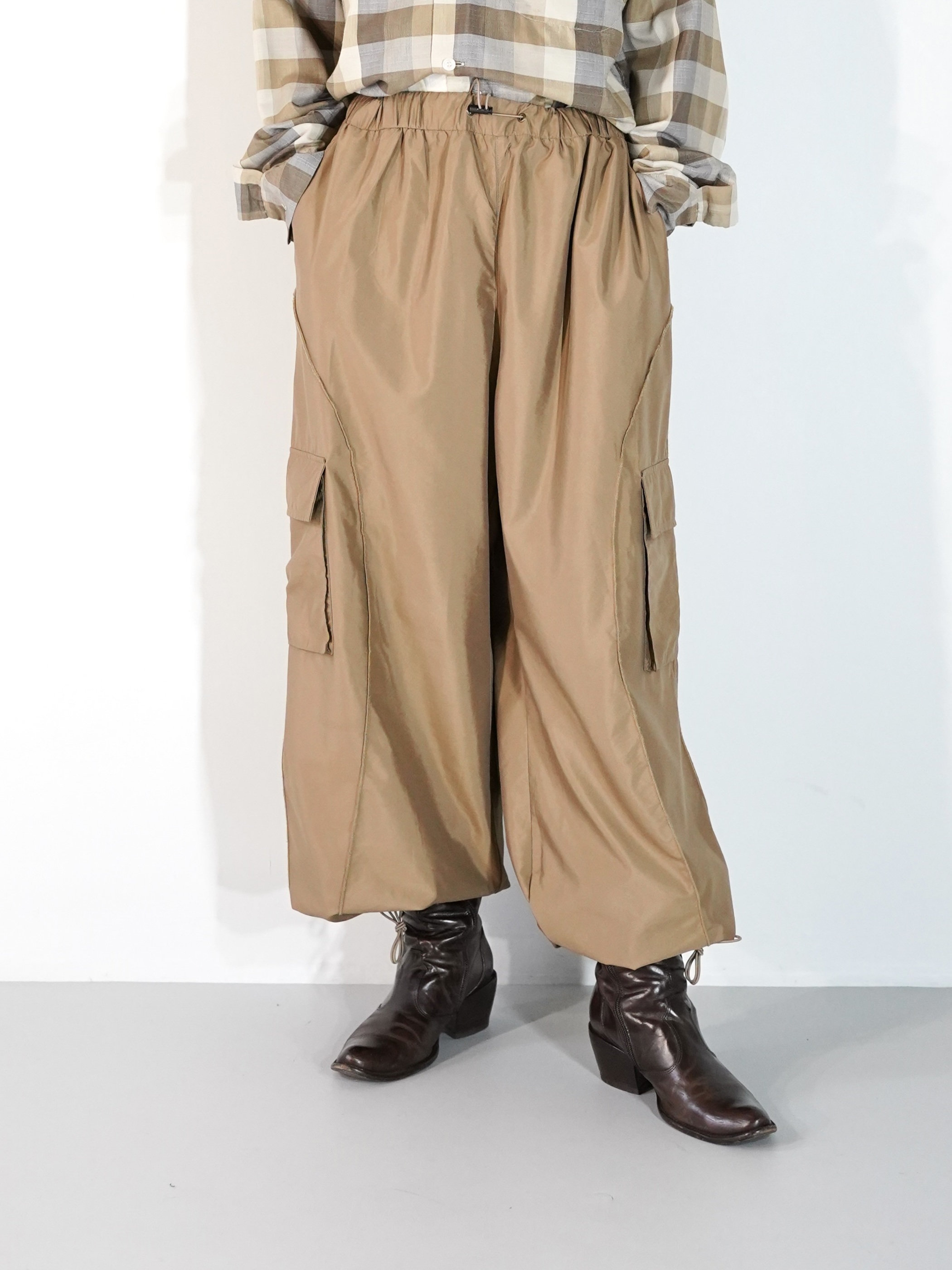 裾のドローコードを絞ってサンダル合わせ、もしくはロングブーツ合わせなども良いと思います