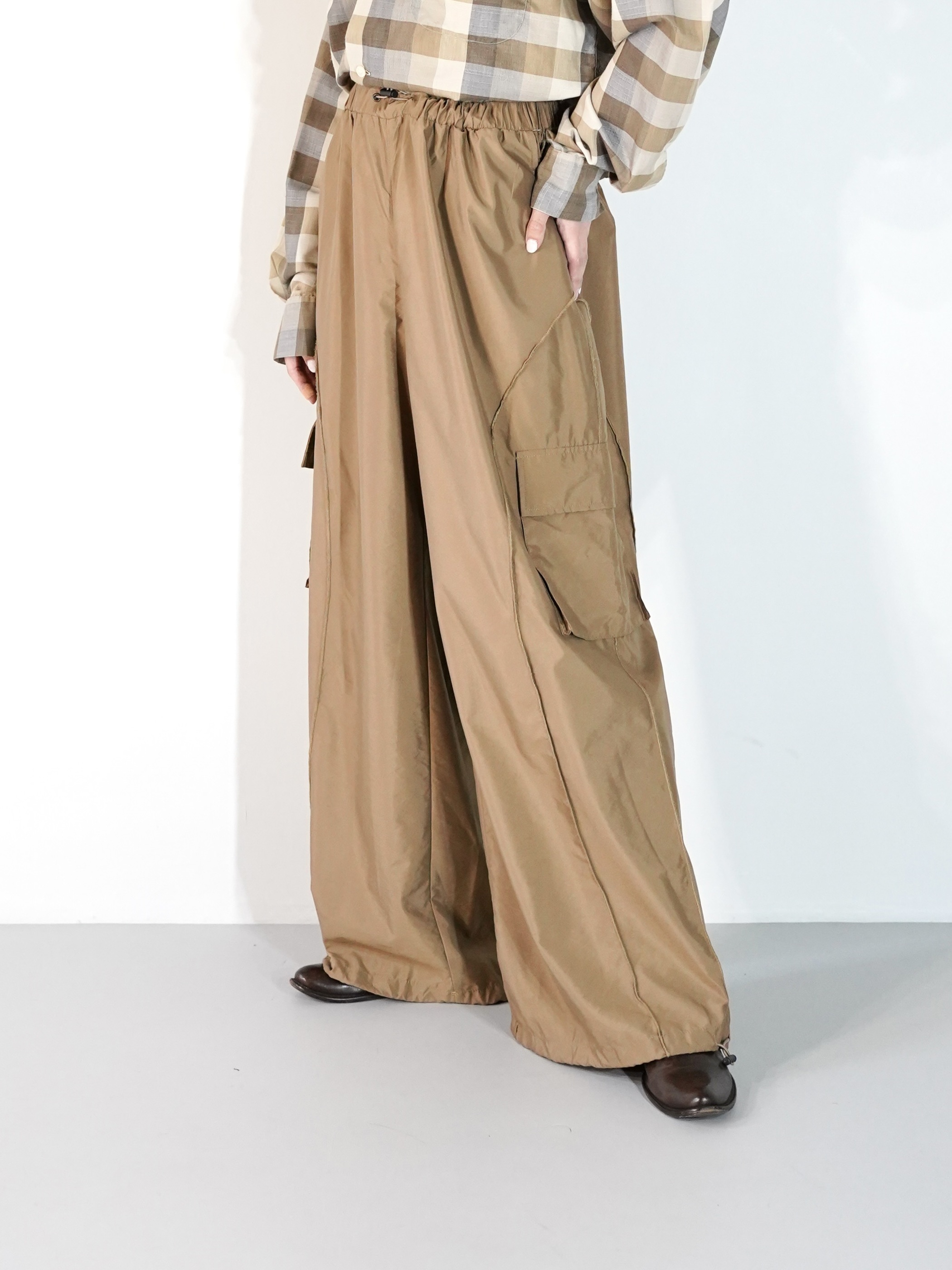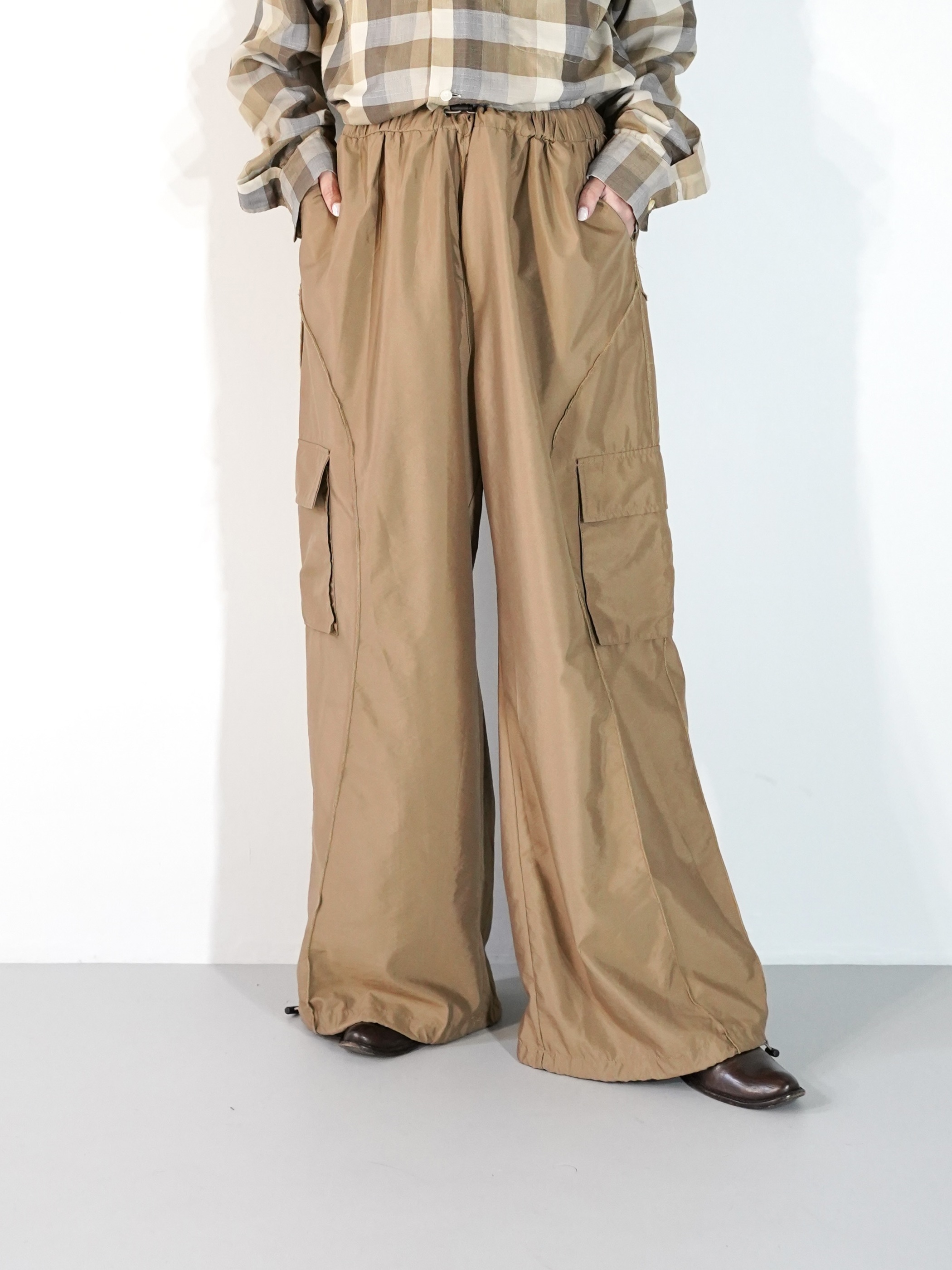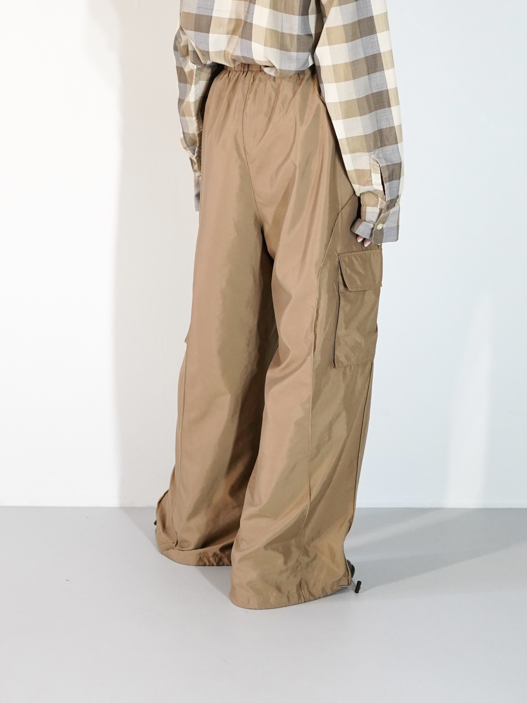 Mellow Stitch Draw Code Nylon Wide Cargo Pants