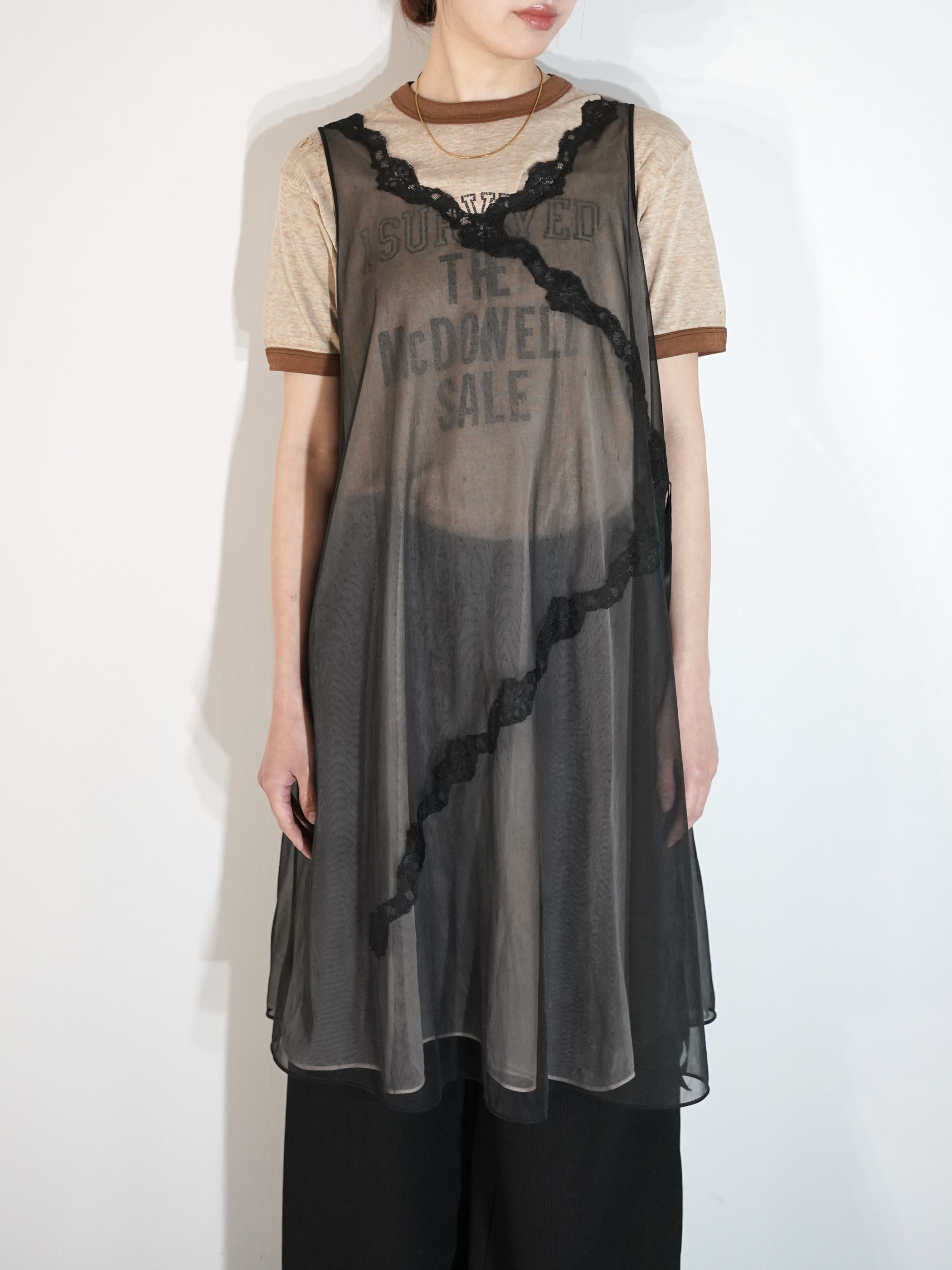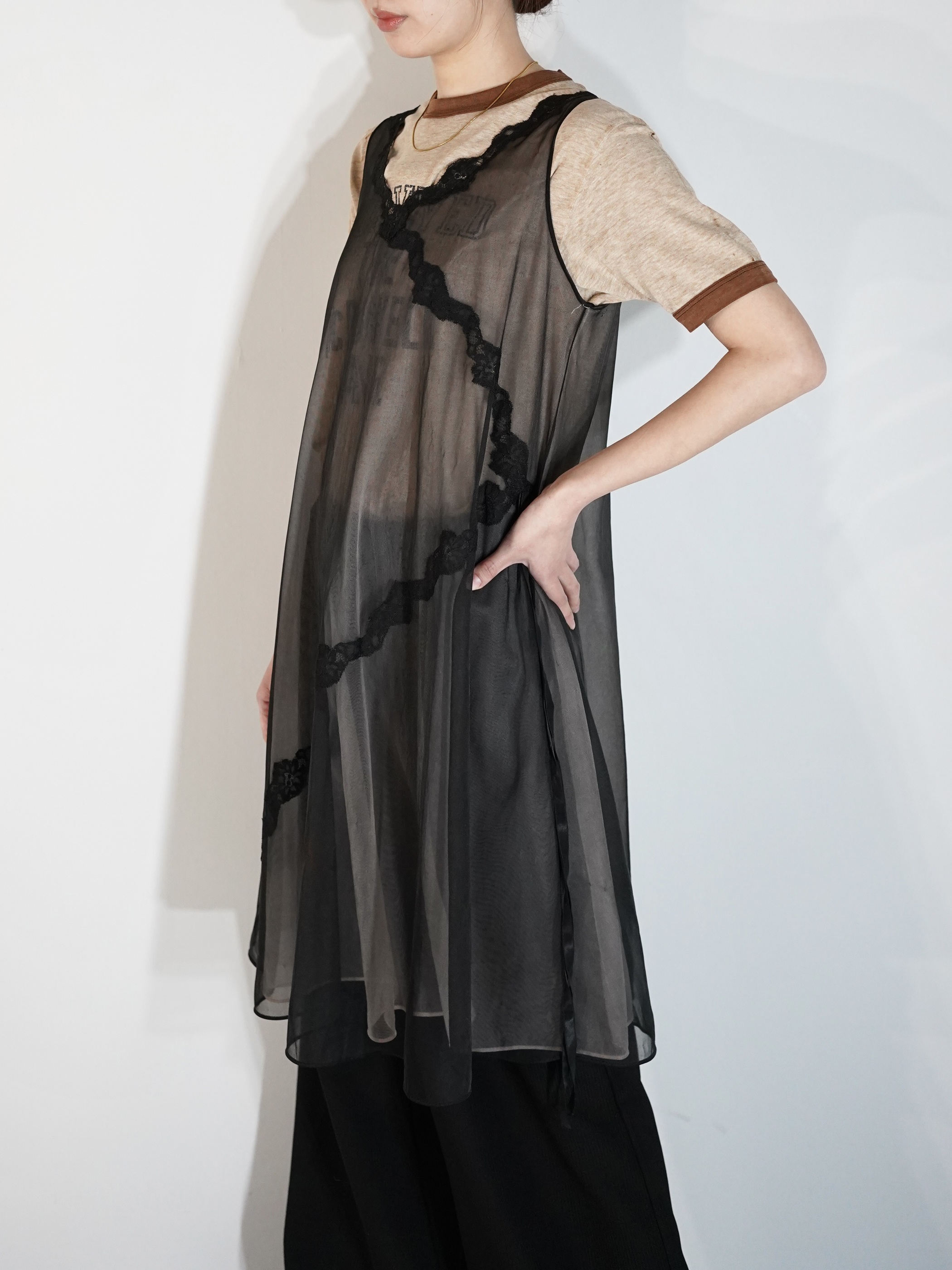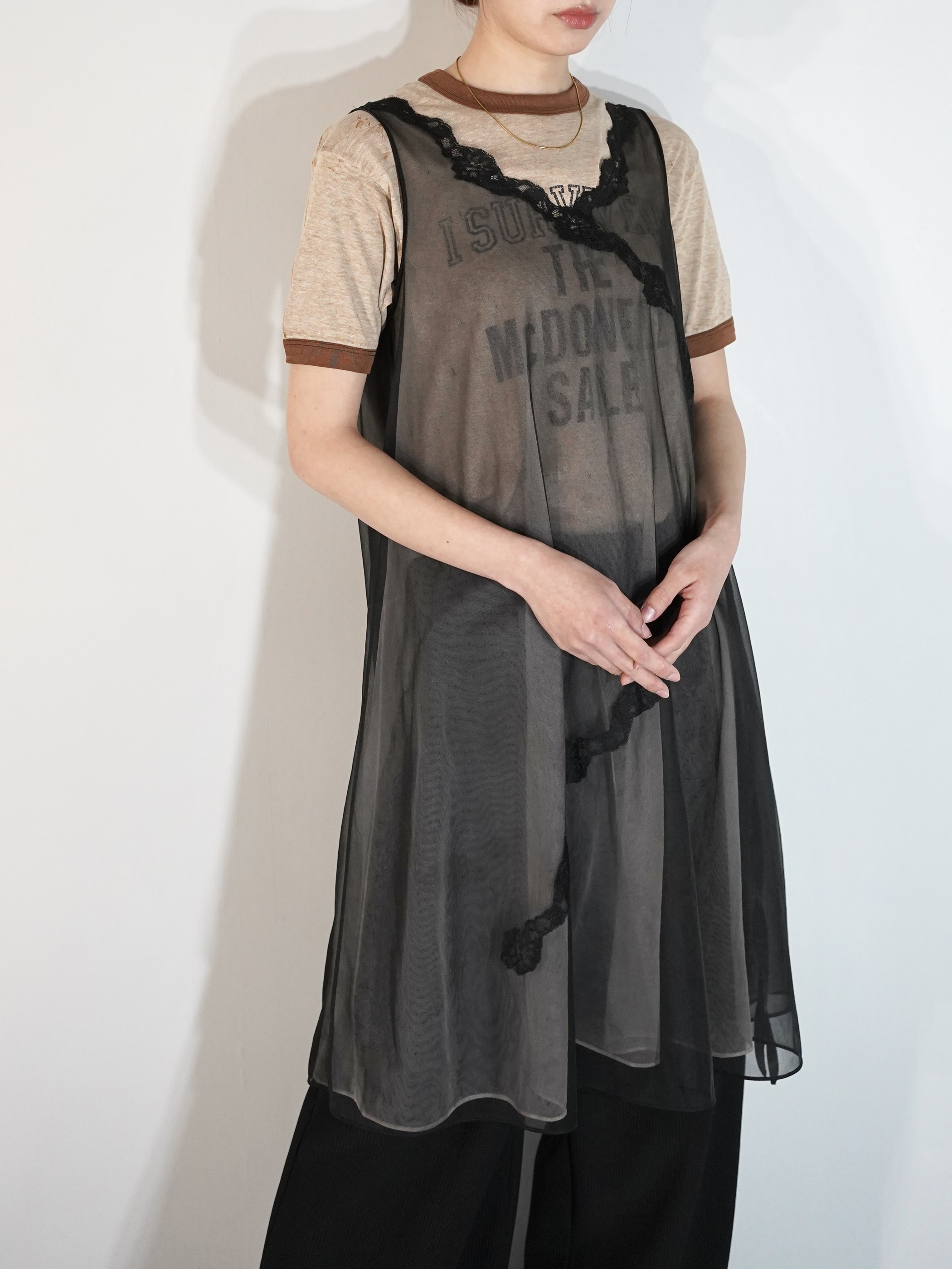 甘め・モードのちょうど中間にいる様な印象を受け、ランジェリー感も強過ぎず お持ちのアイテムに取り入れ易い1着なのではないでしょうか
