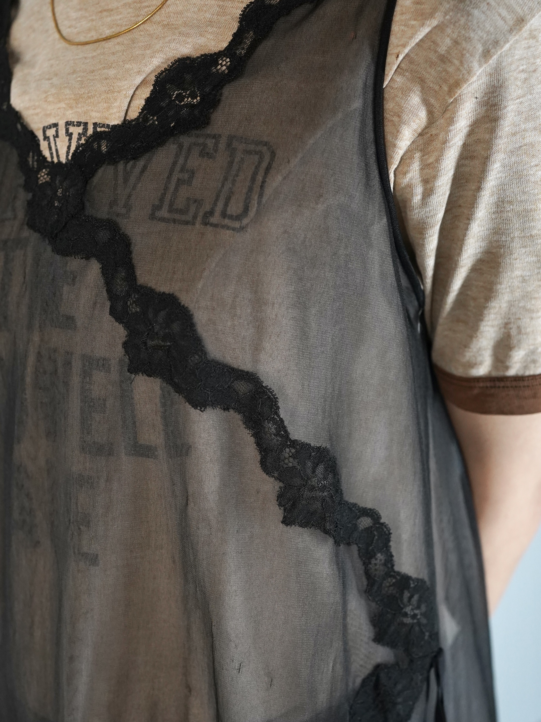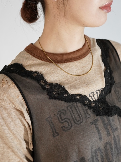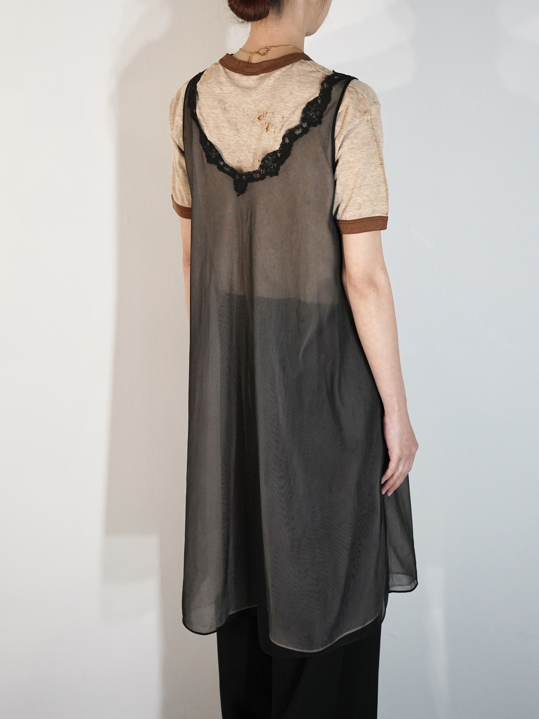 甘め・モードのちょうど中間にいる様な印象を受け、ランジェリー感も強過ぎず お持ちのアイテムに取り入れ易い1着なのではないでしょうか