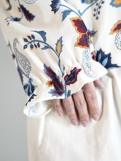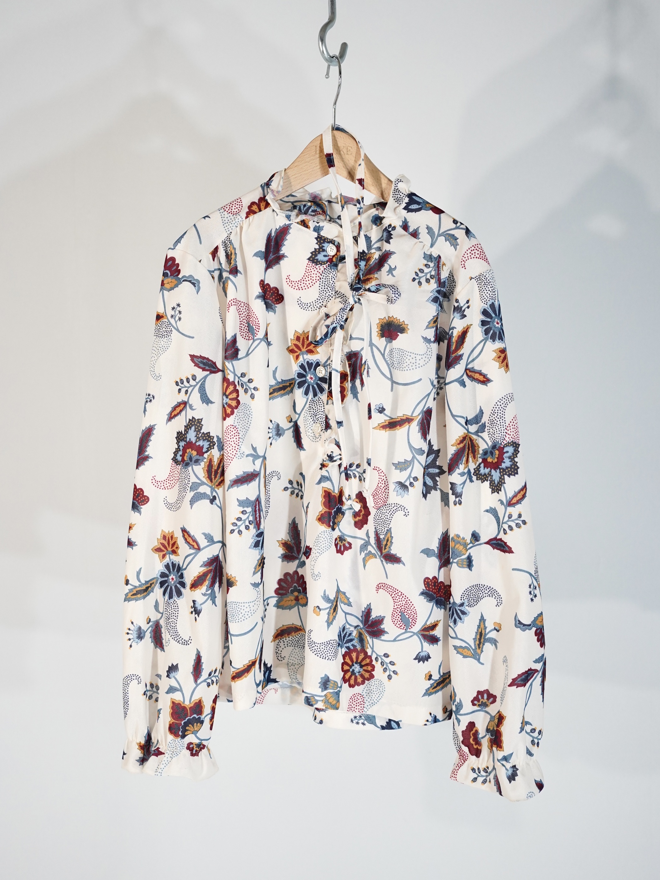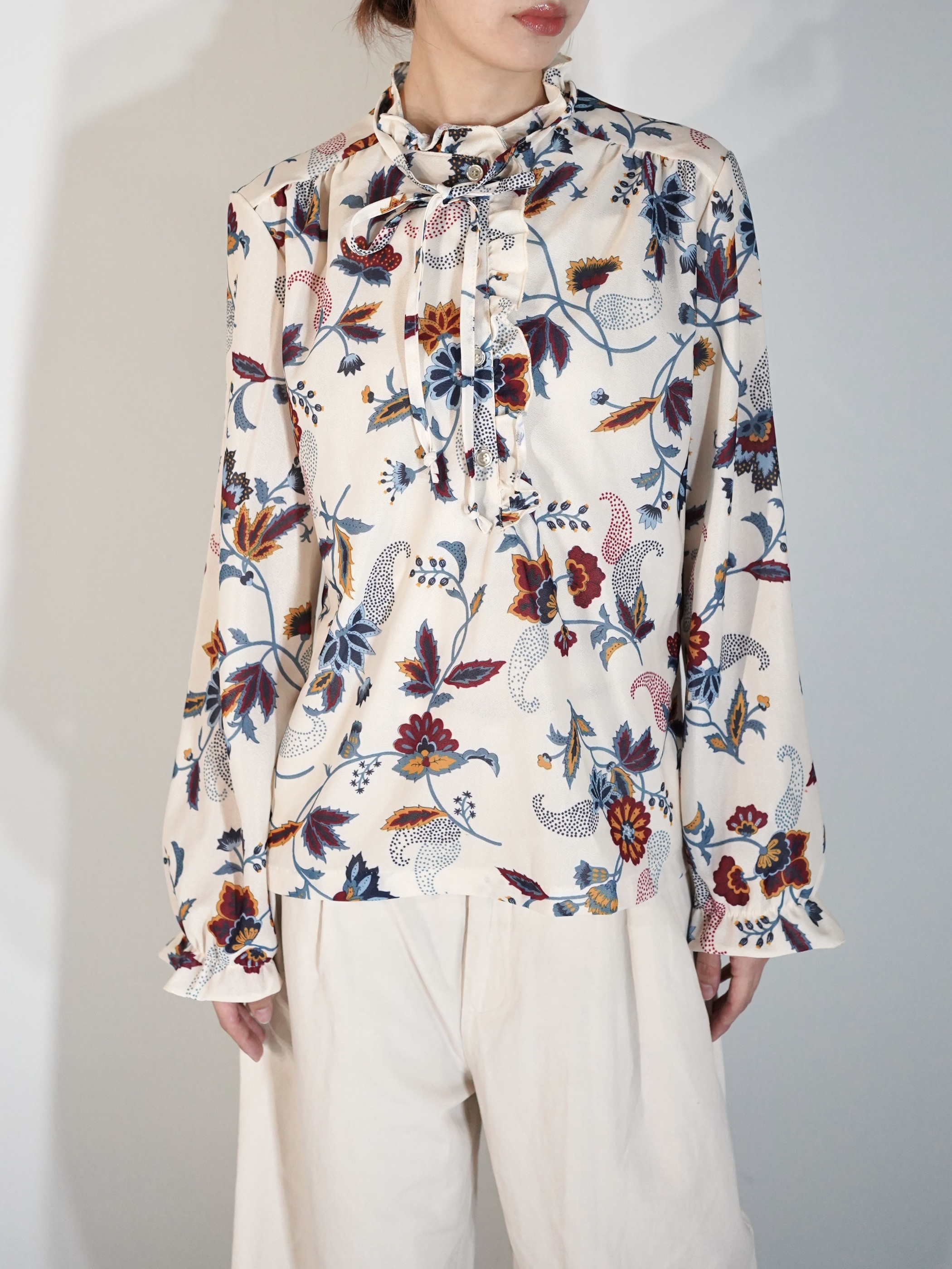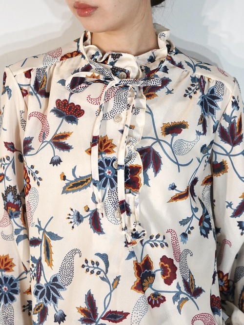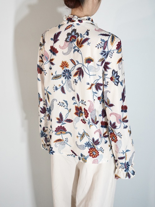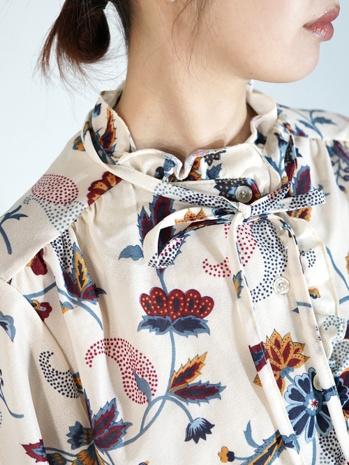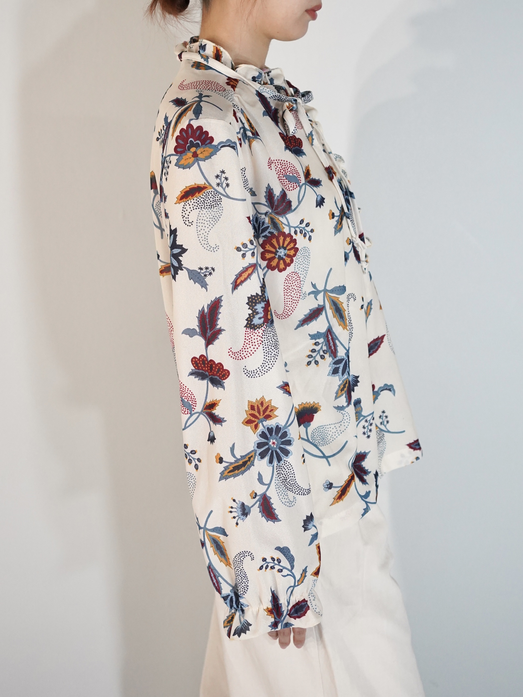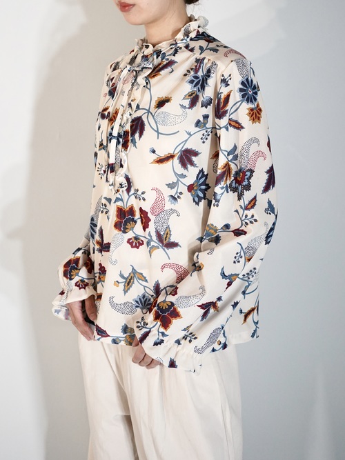 ふわりと軽い春らしいボタニカル柄のブラウス。