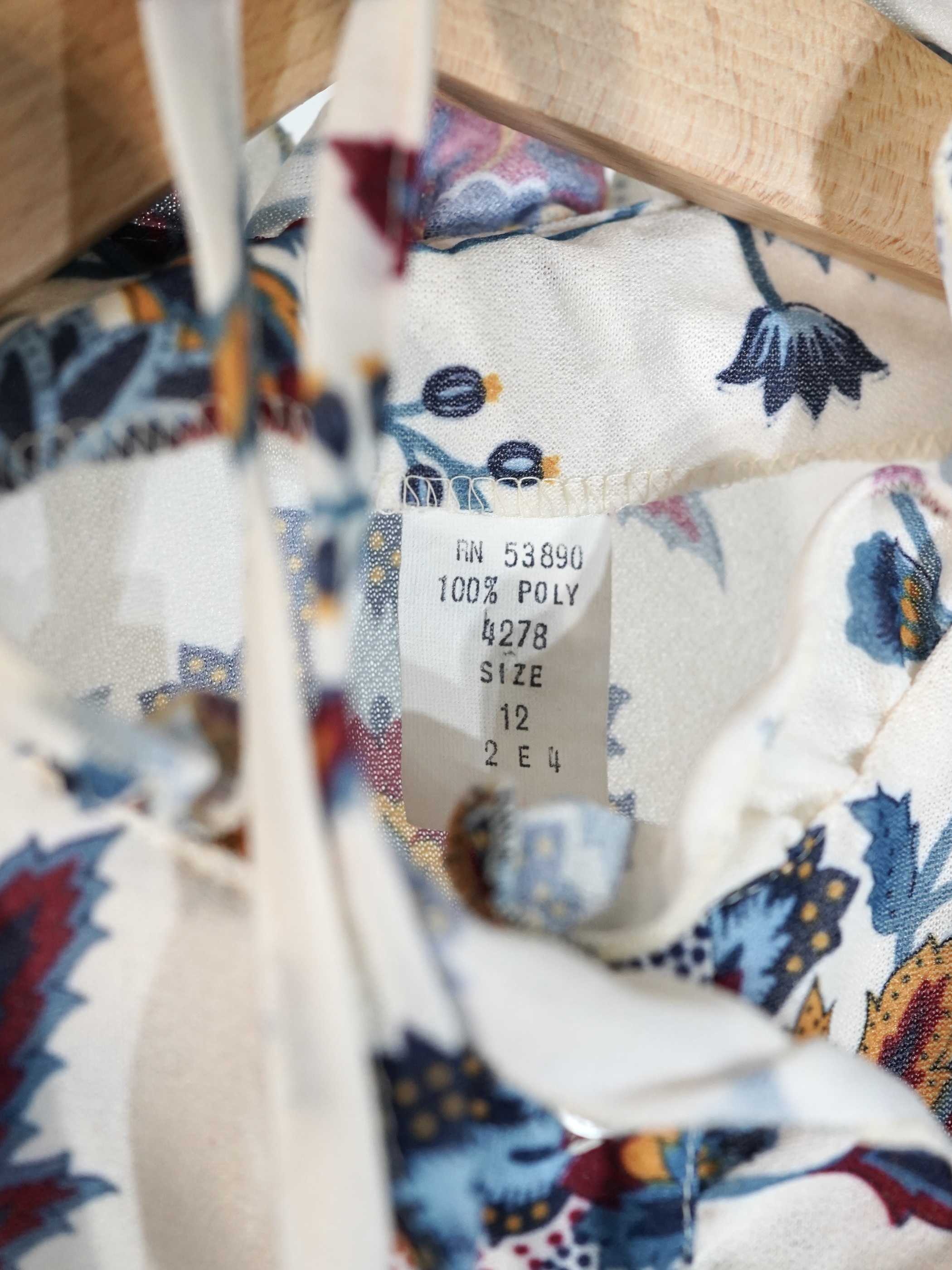 1970s Botanical Pattern Pull Over Shirt with Tie