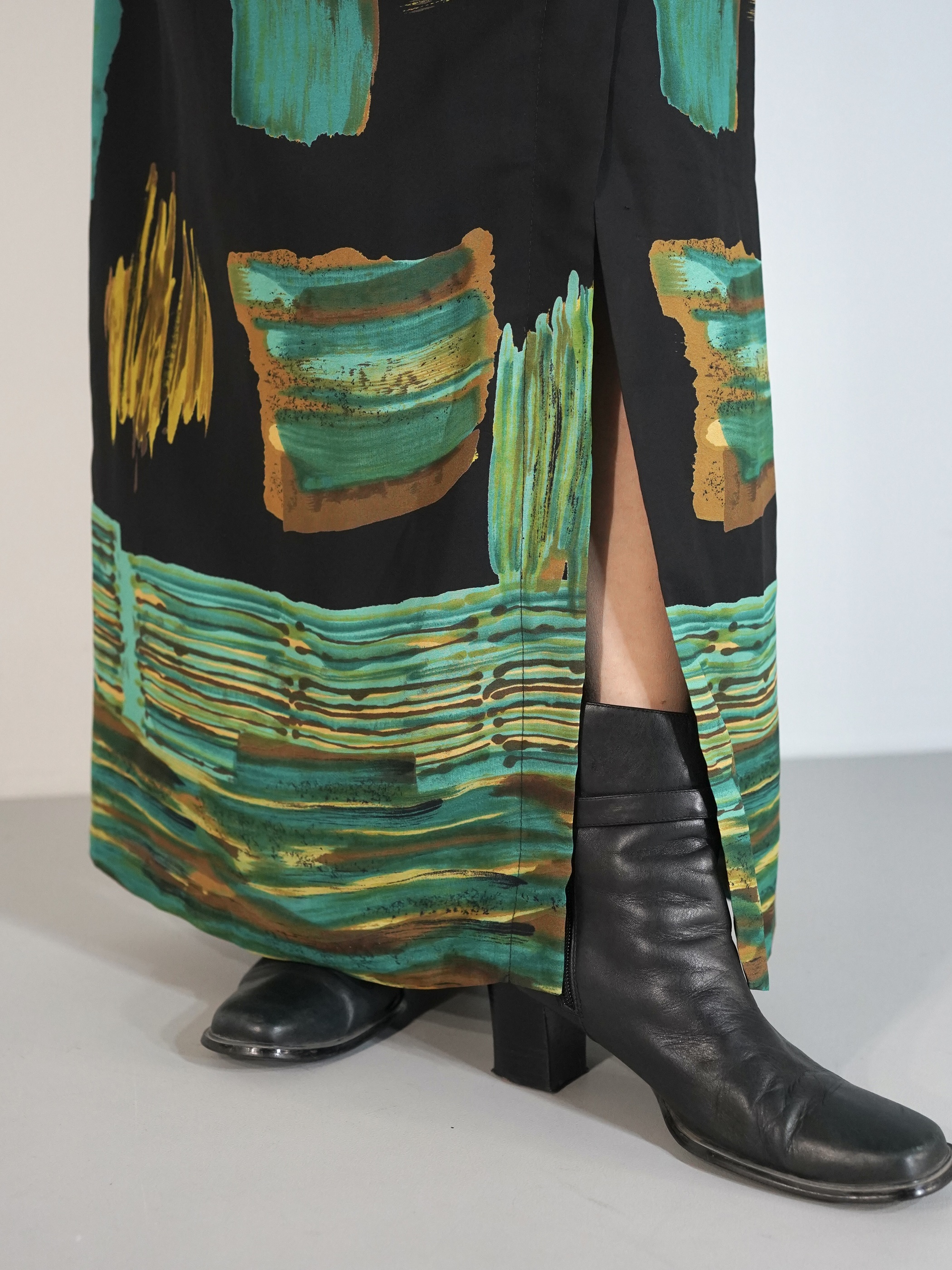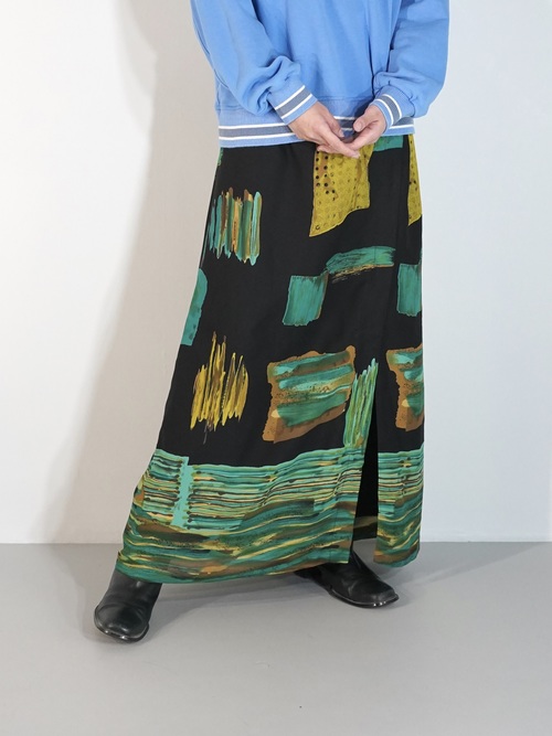 1990s Art Graphic Pattern Semi-Sheer Slit Skirt