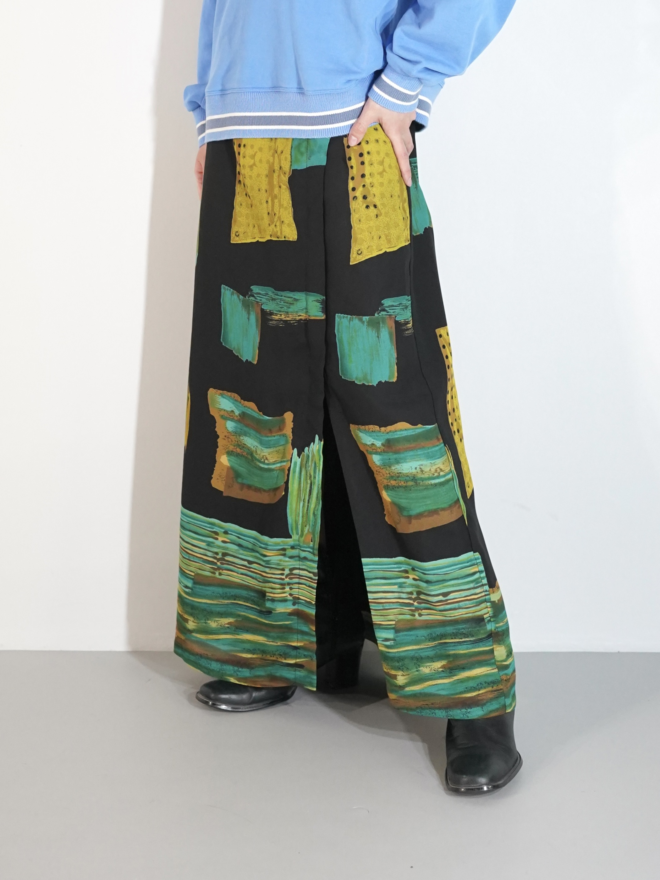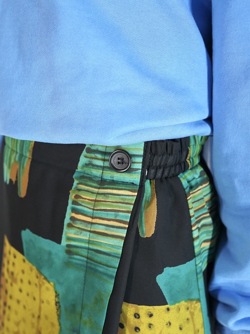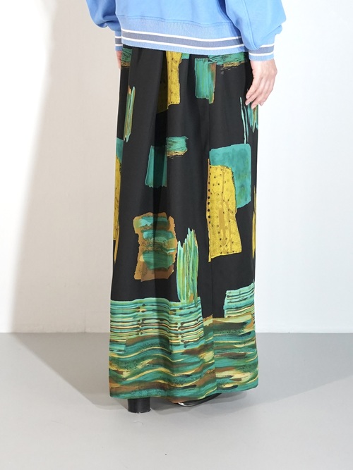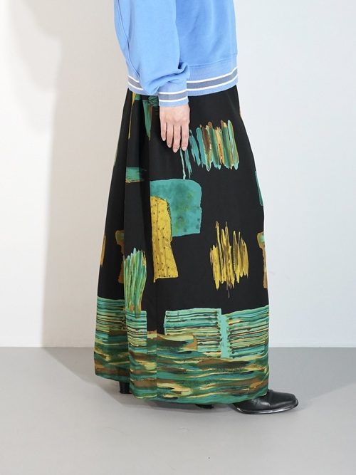アートなパターンが目を惹く軽い生地感のスカート。