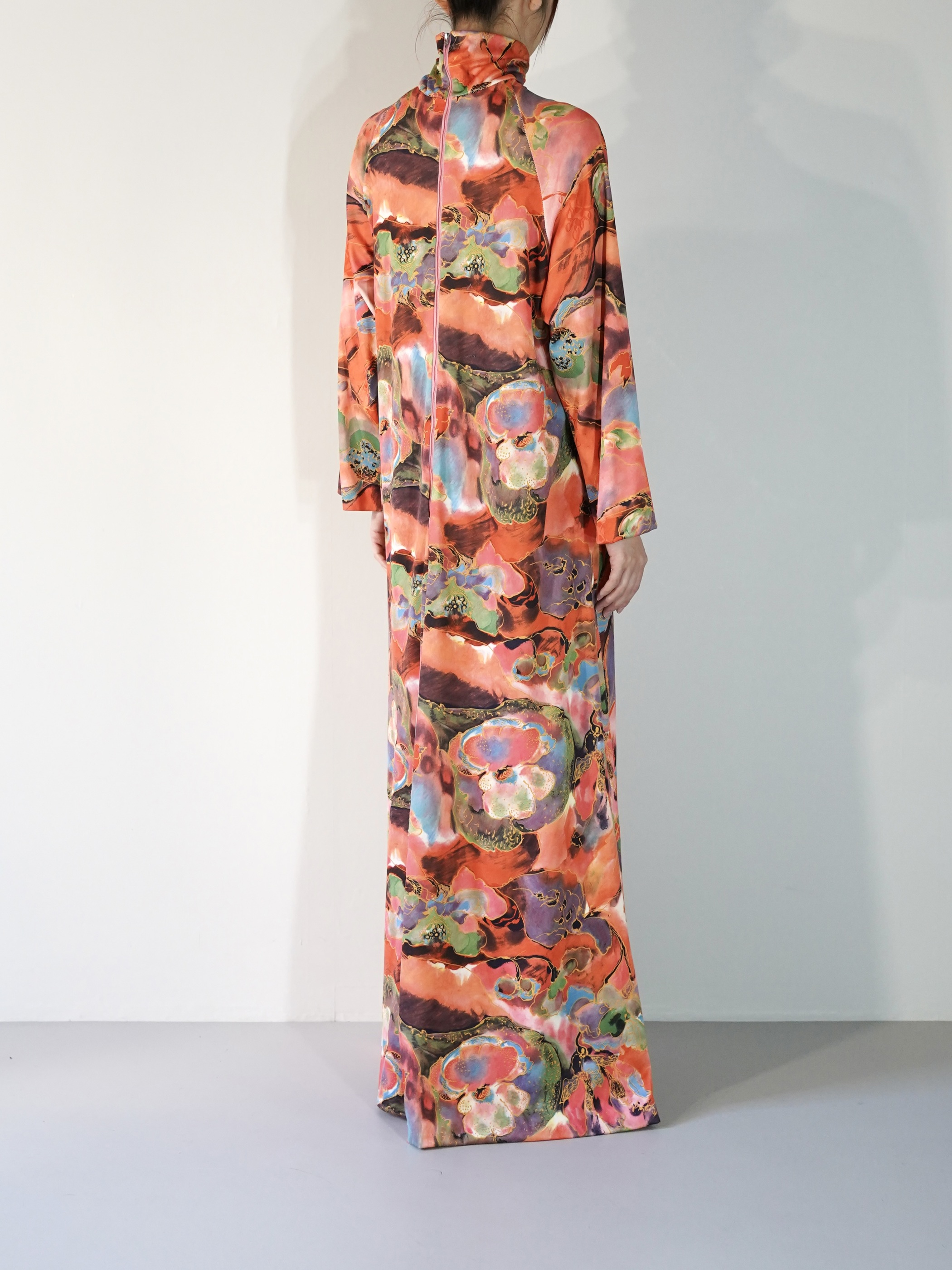 70年らしくマキシ丈にAラインシルエット
