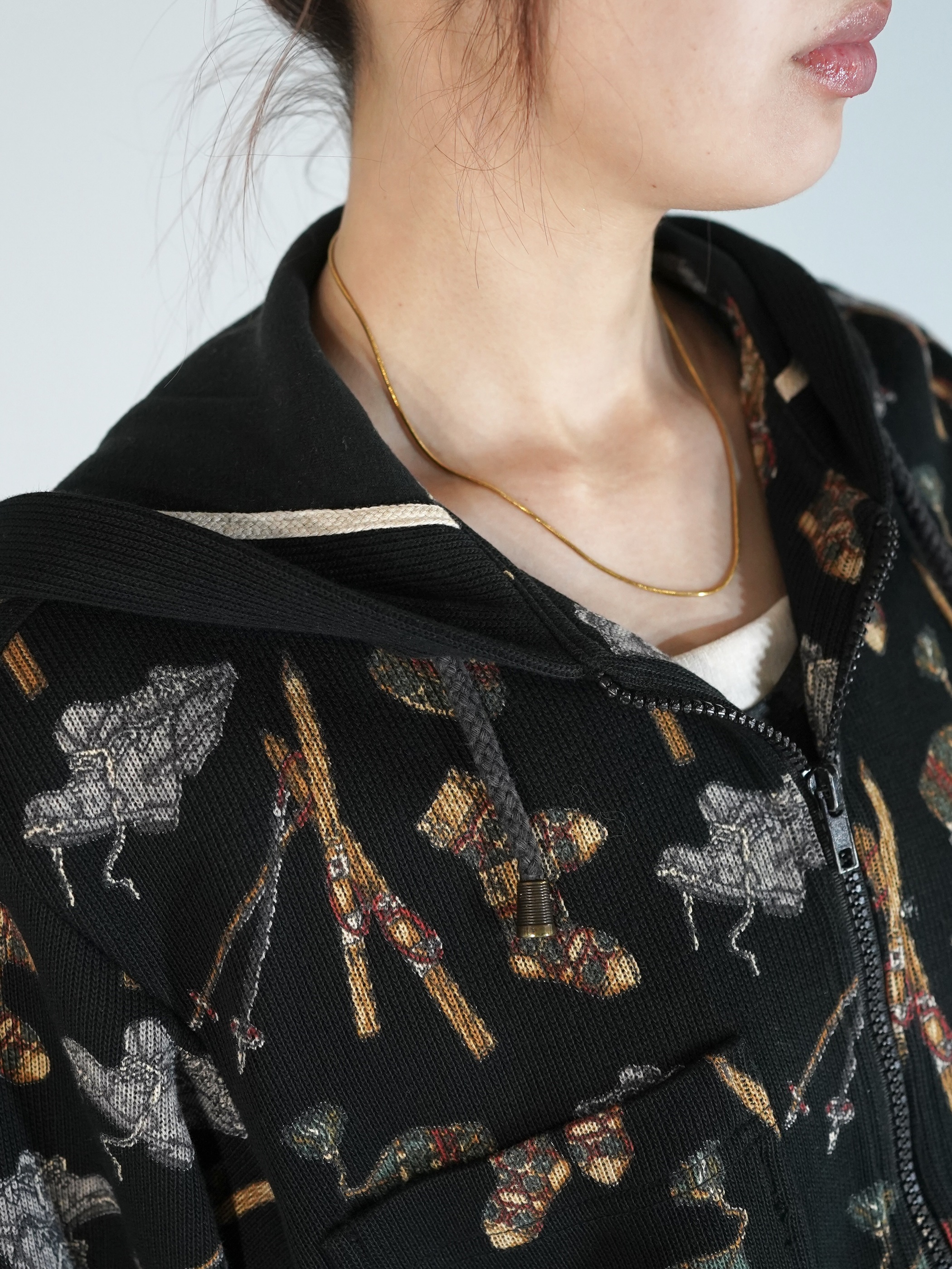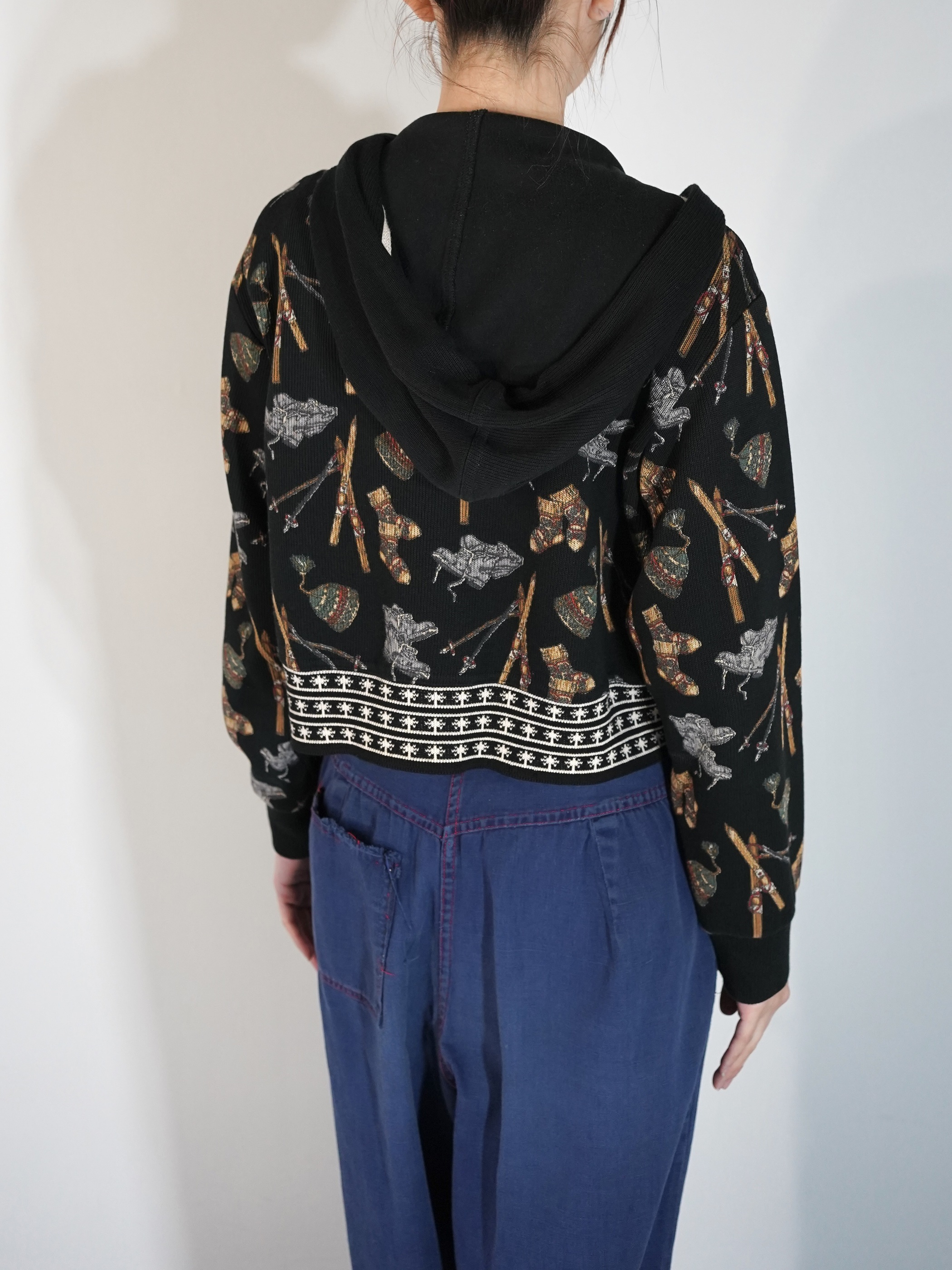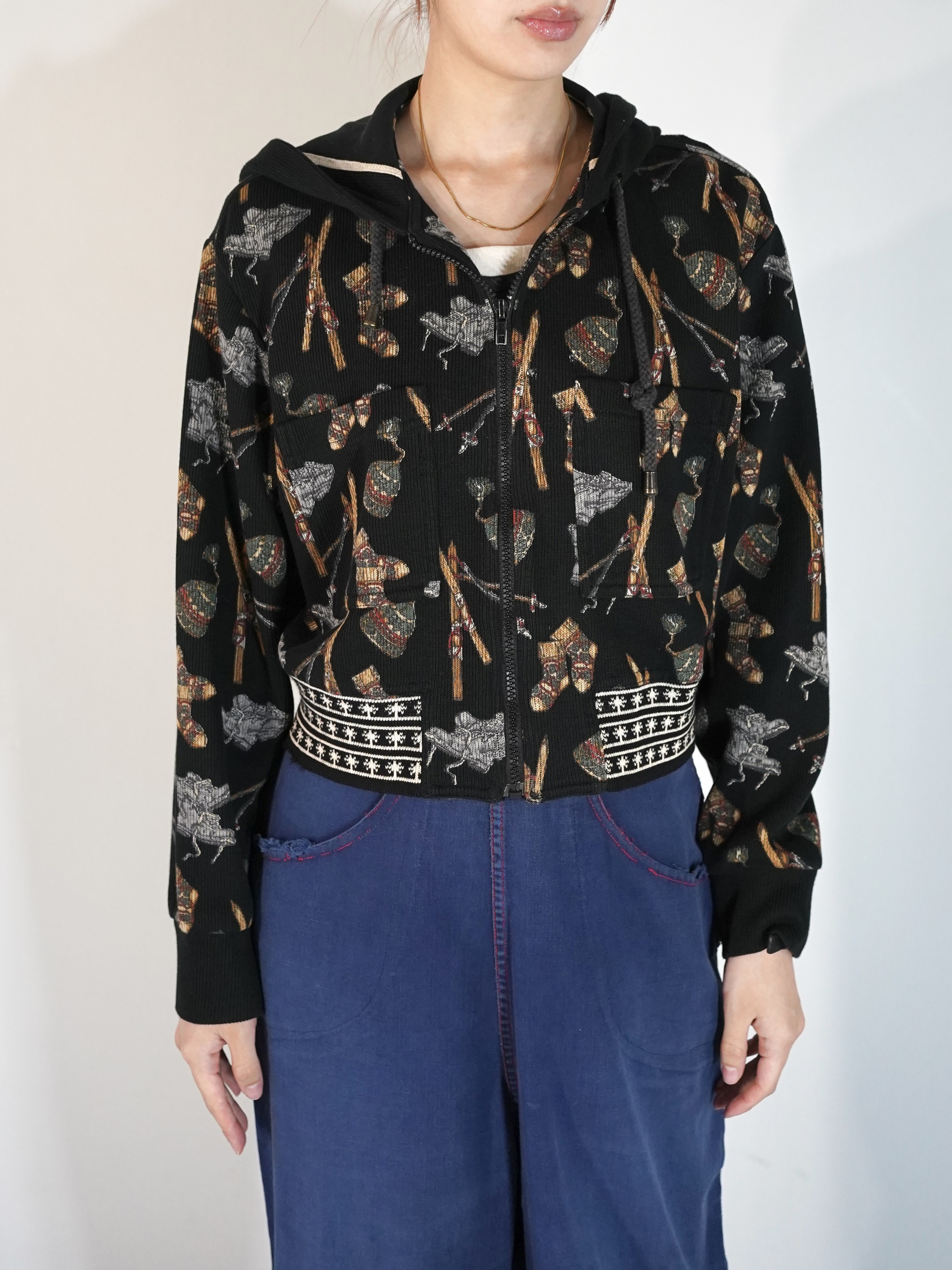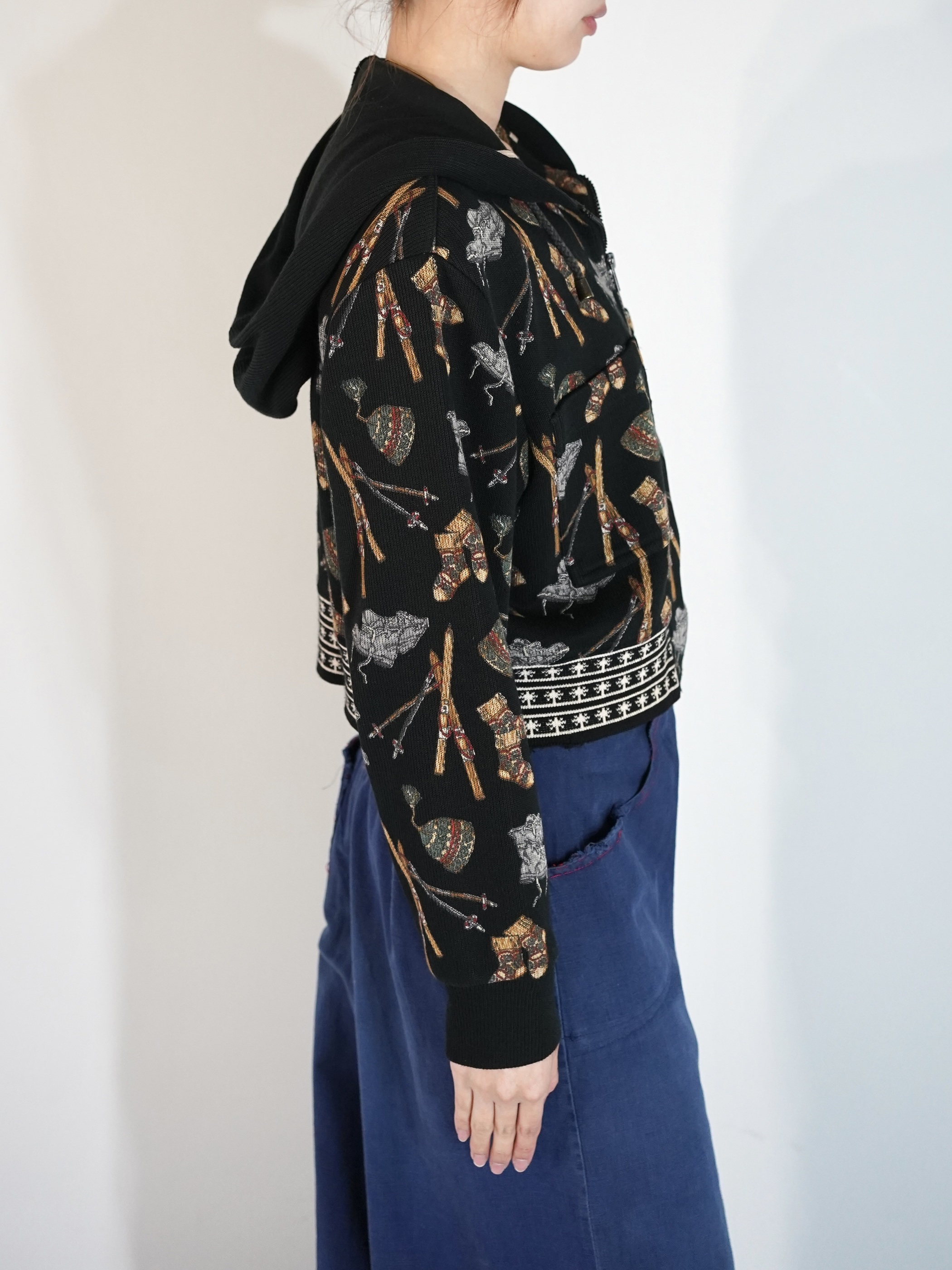 ワンピースやジャンプスーツ等の上から羽織ってもバランスが取れそうな短丈シルエットです