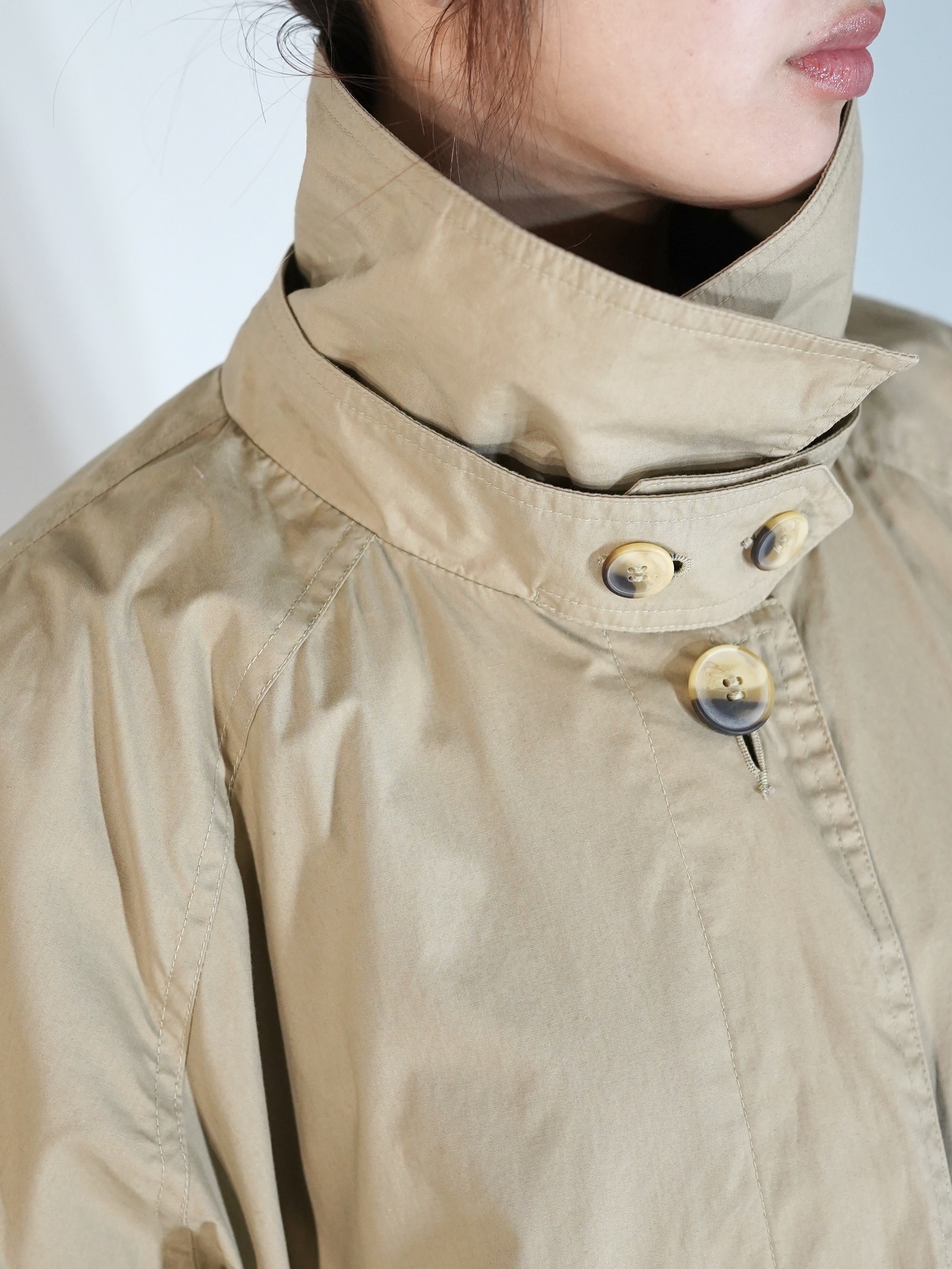 襟を立てると肩周りが少し丸みが出て可愛らしいシルエットになる所もポイント。