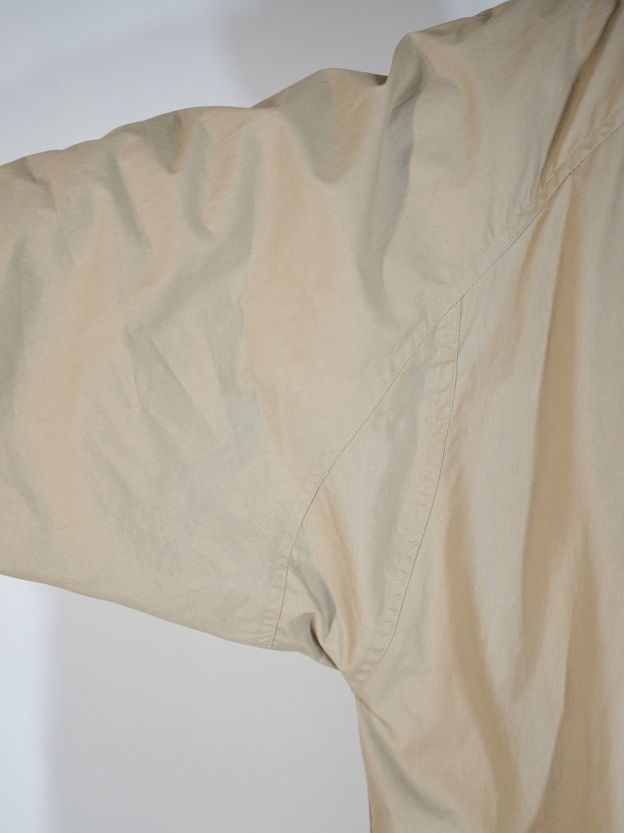 オーバーサイズながらもラグラン仕様で落ち感の良さ、後ろ見頃には大きく入ったプリーツがストンと落ちるシルエットを作ってくれています。
