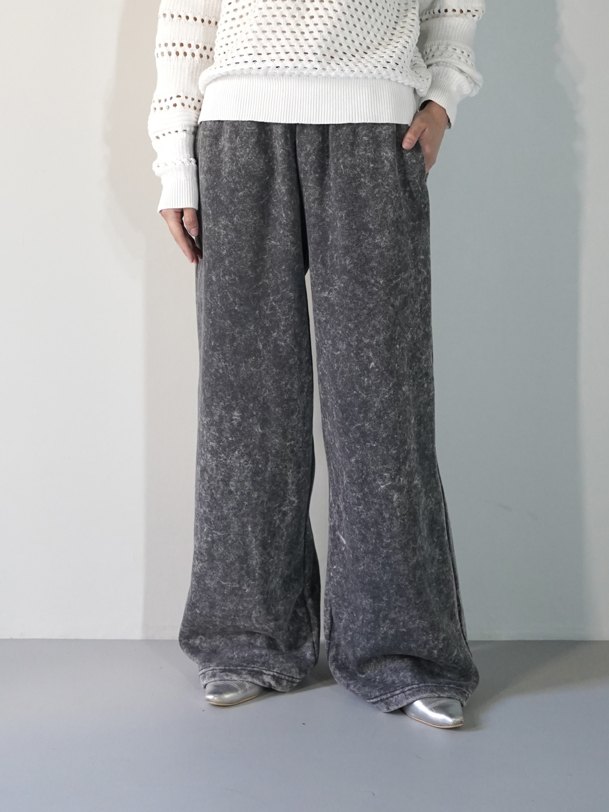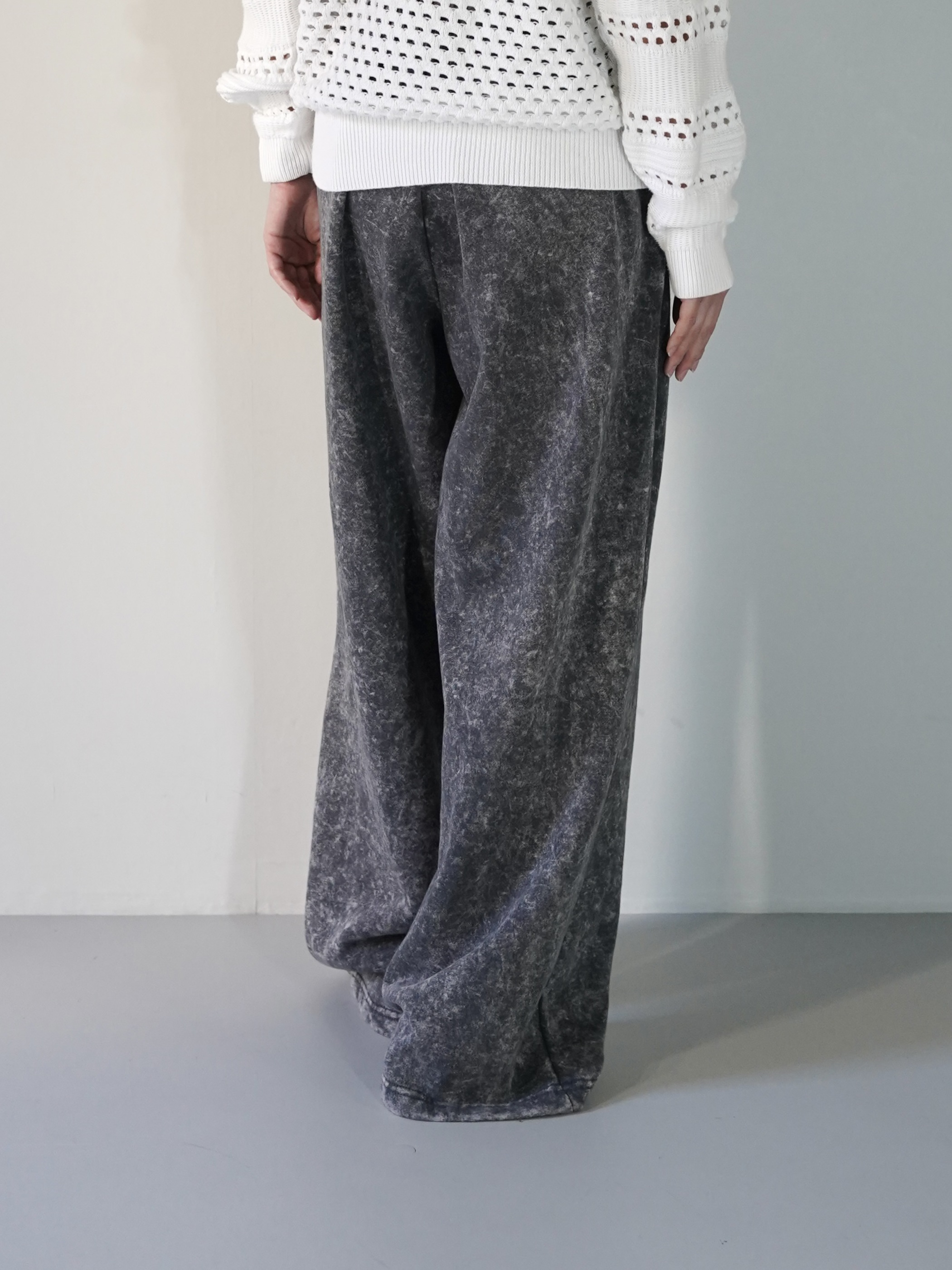 ストーンウォッシュ加工された様な表面のスウェットパンツ