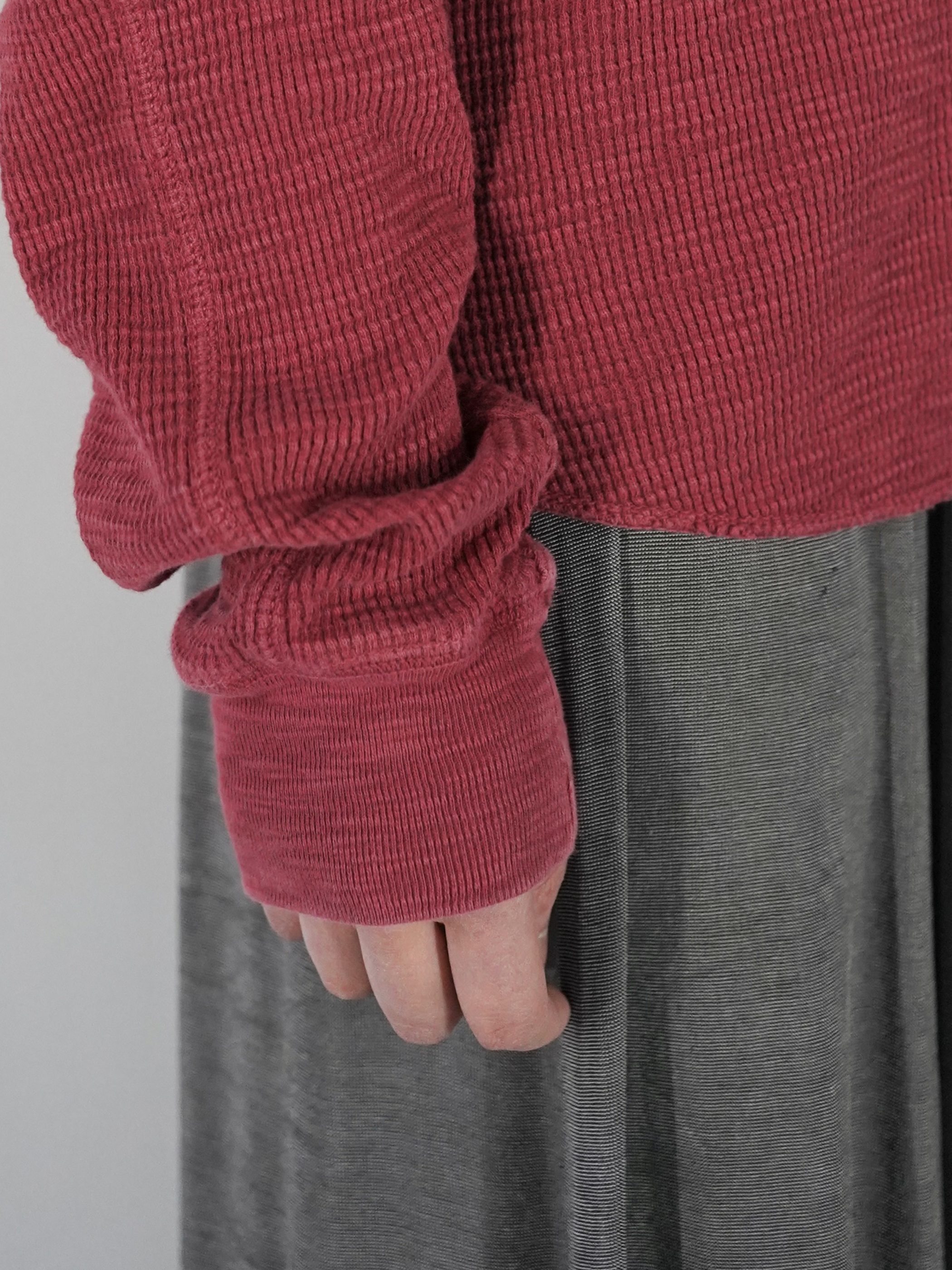 サーマル地なのでブルゾンのインナーやシャツレイヤードでも行ける素材感