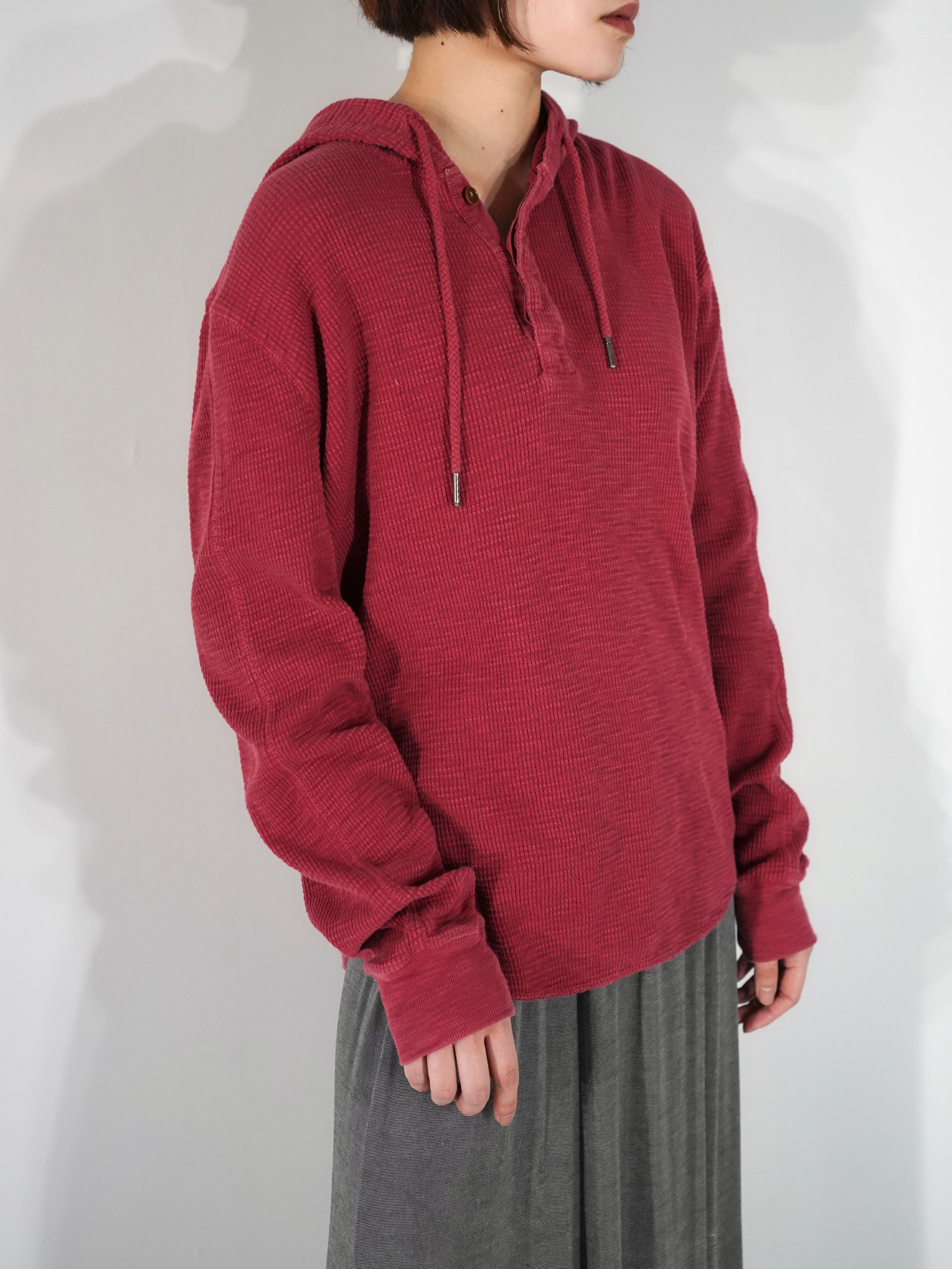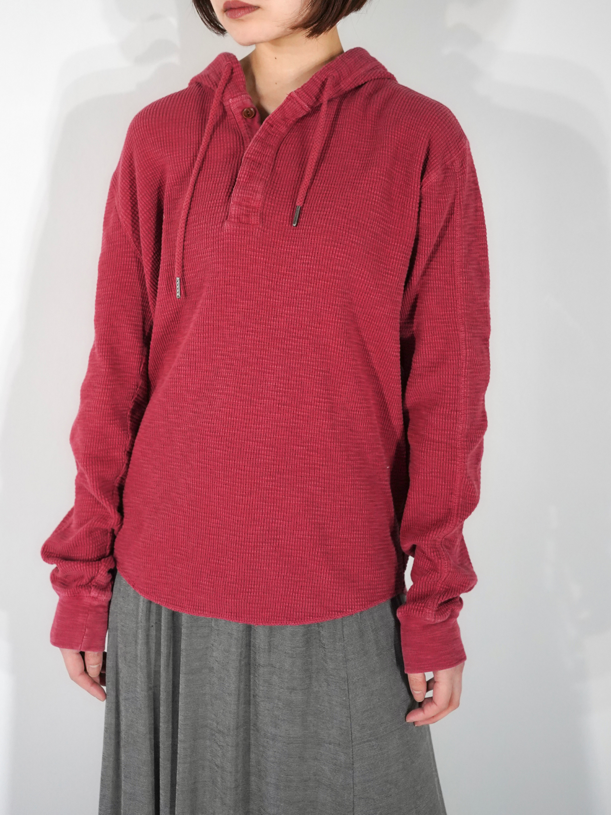 サーマル地でフーディーデザインは以外に無いのでインナーのレイヤードとして使い勝手が良いのは勿論、Teeシャツ重ね着でも良いですね。