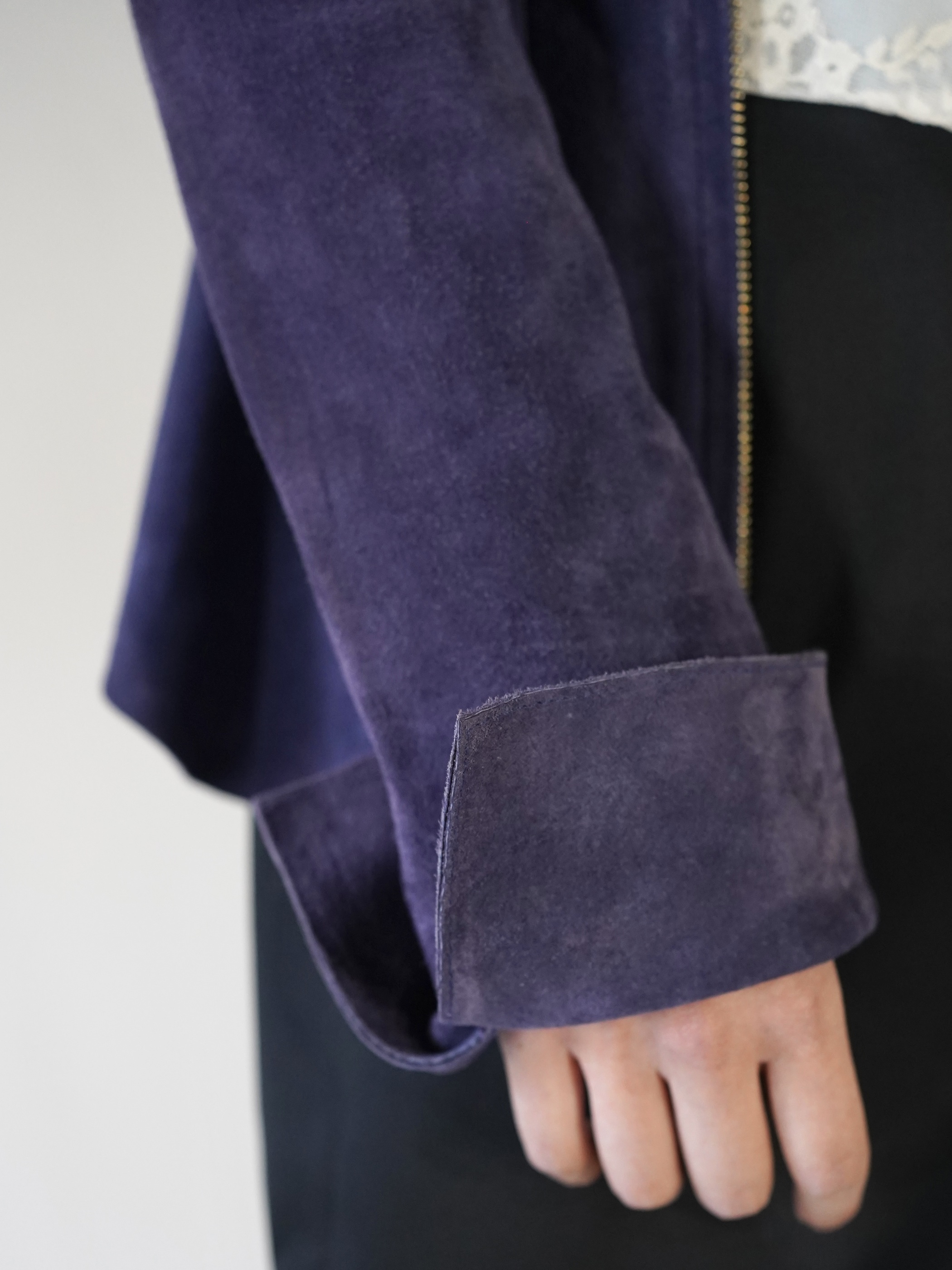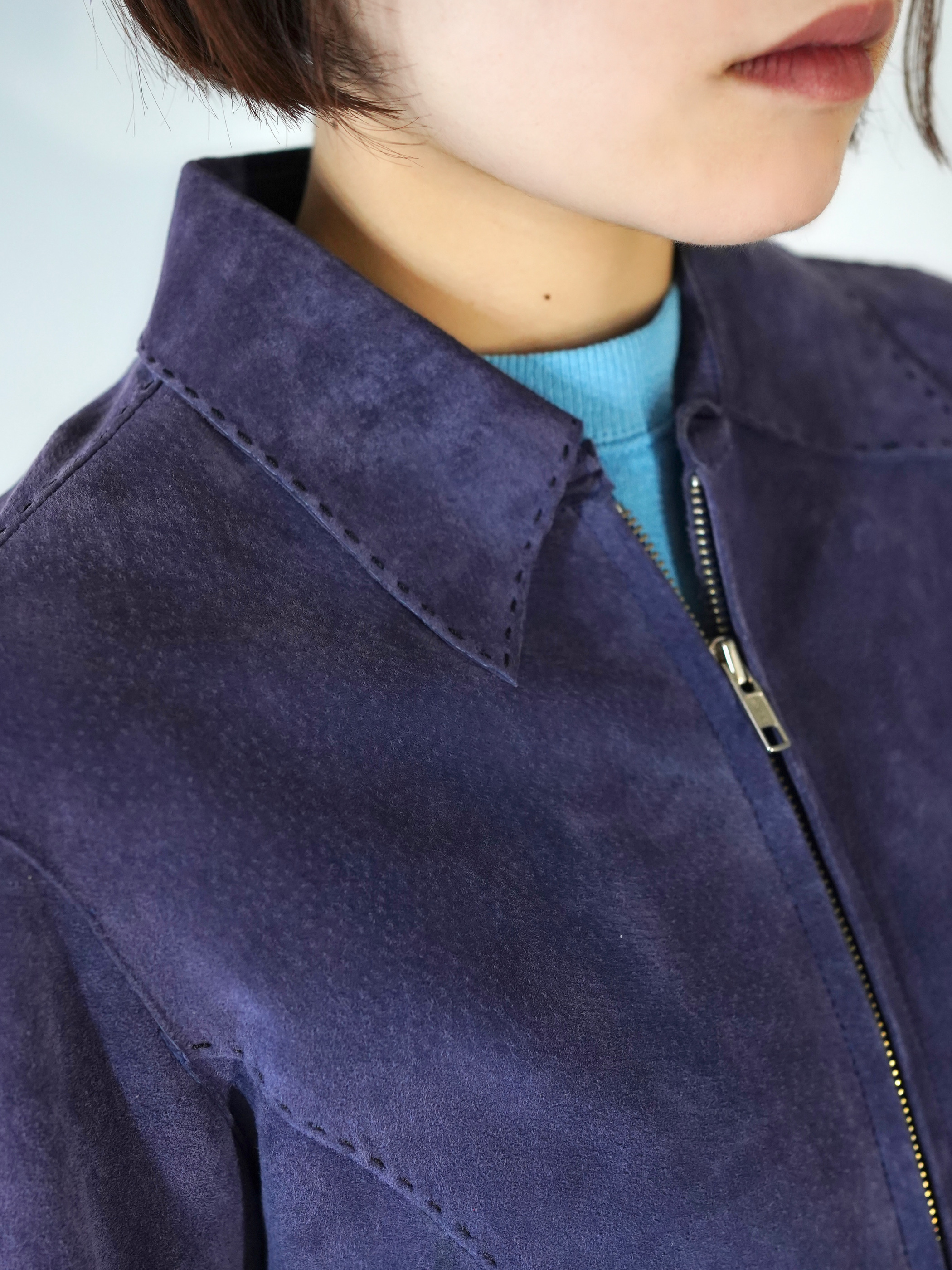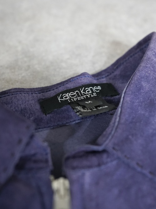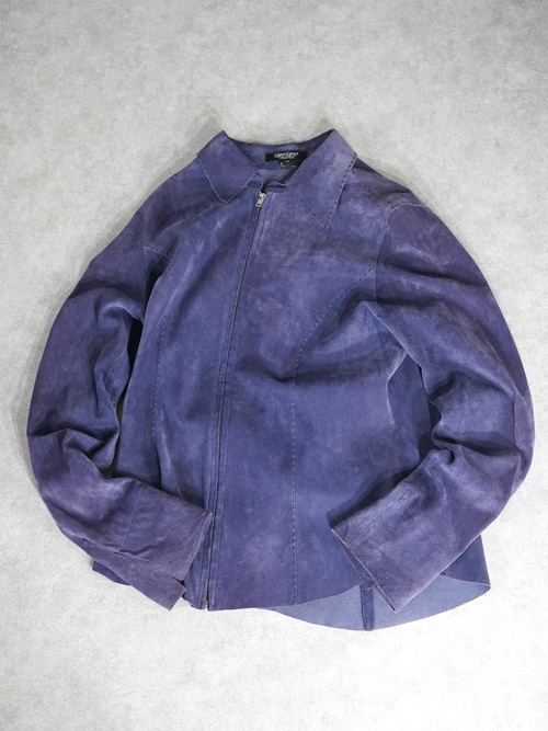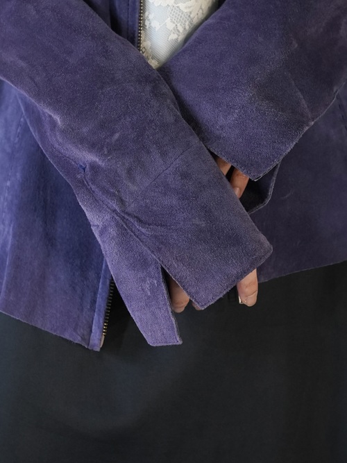 軽いライトアウター感覚で着用できると共にカラーリングもパープルをくすませた様なカラーリングでレザーアウターはちょっと重い・・・と言った心理を解消してくれるレザーアイテムではないでしょうか。