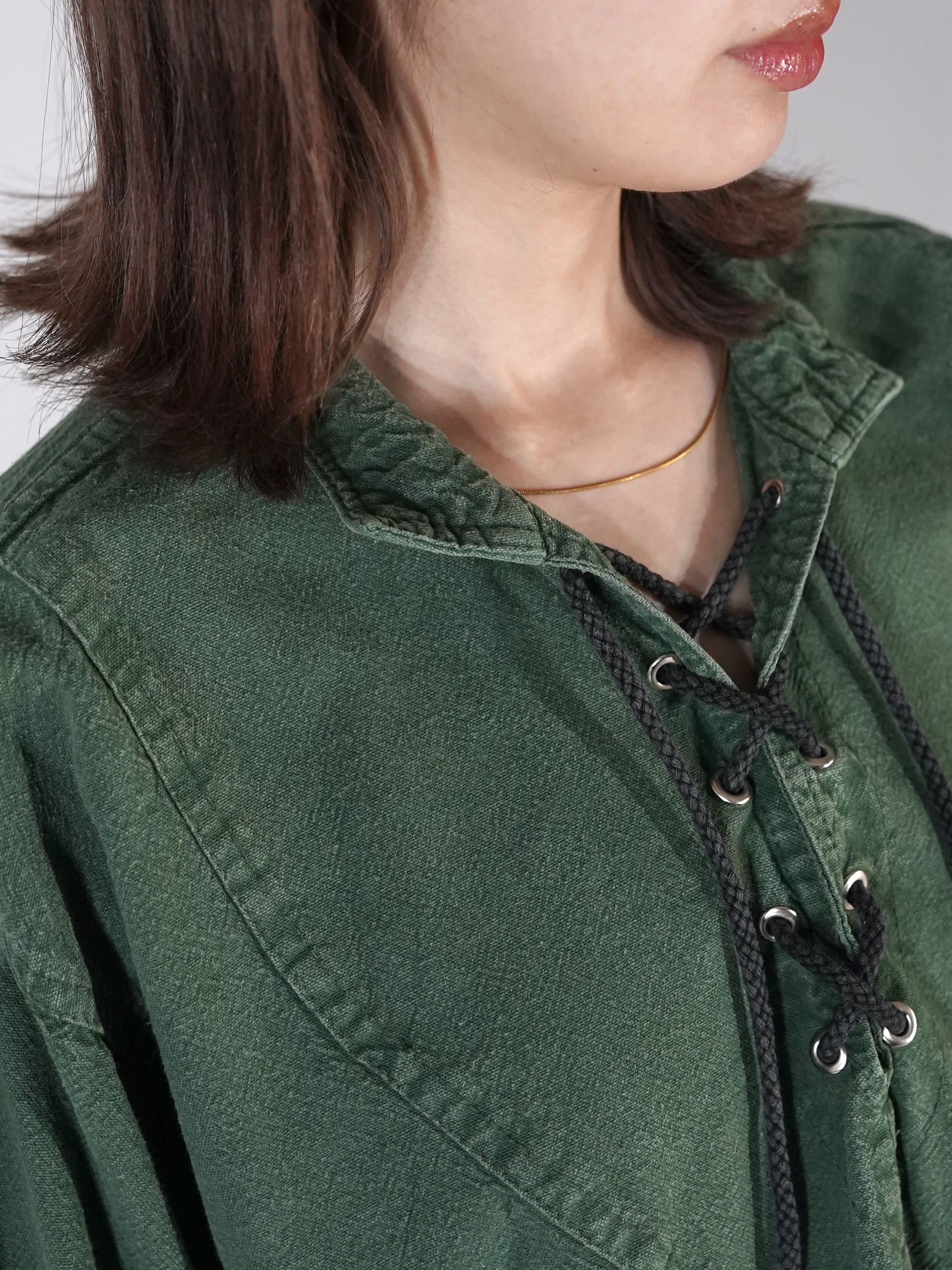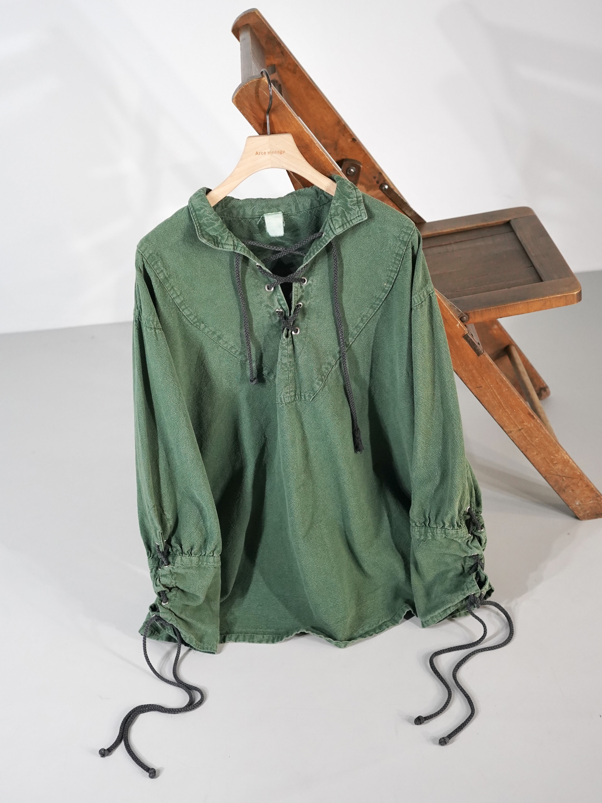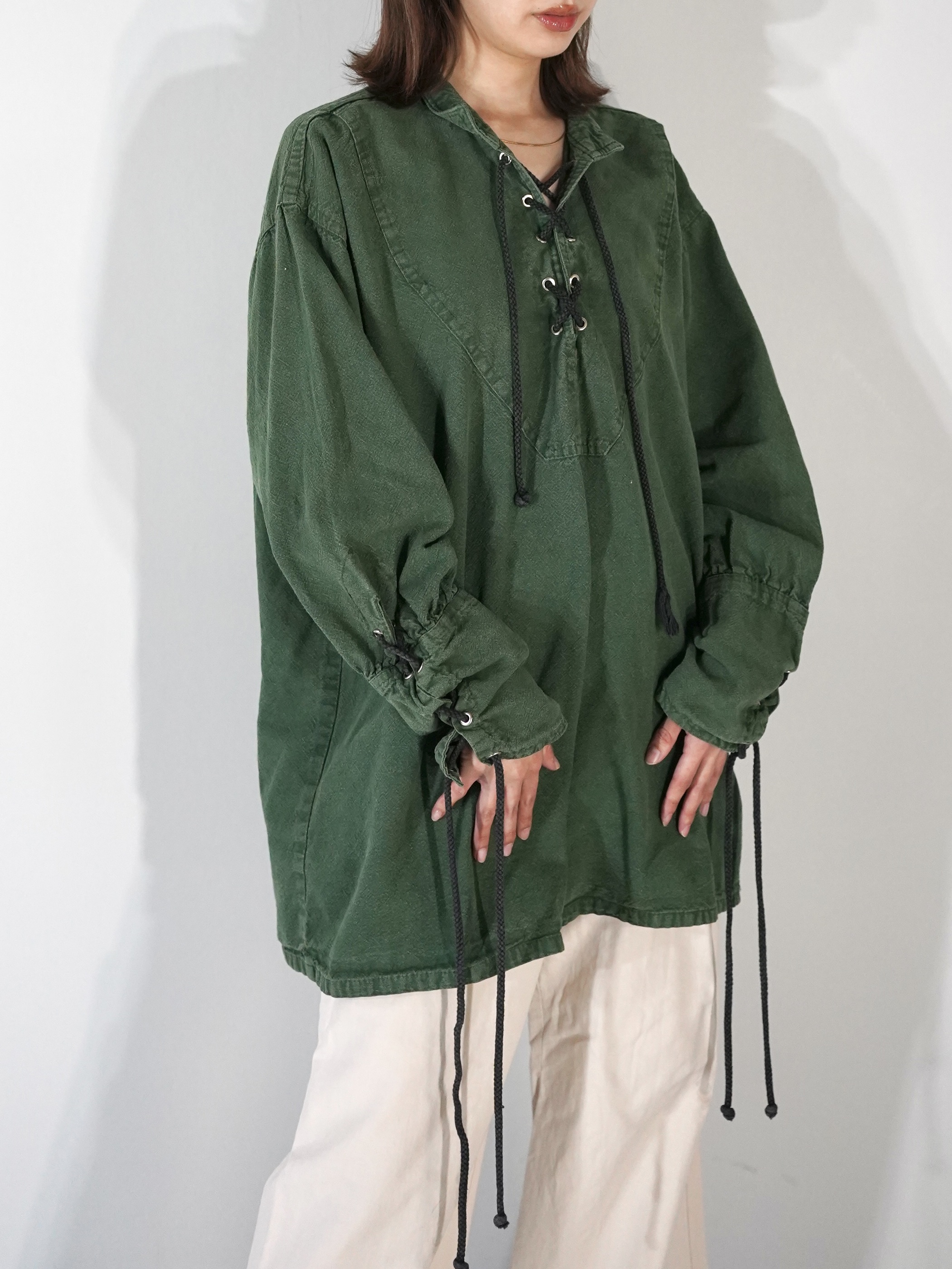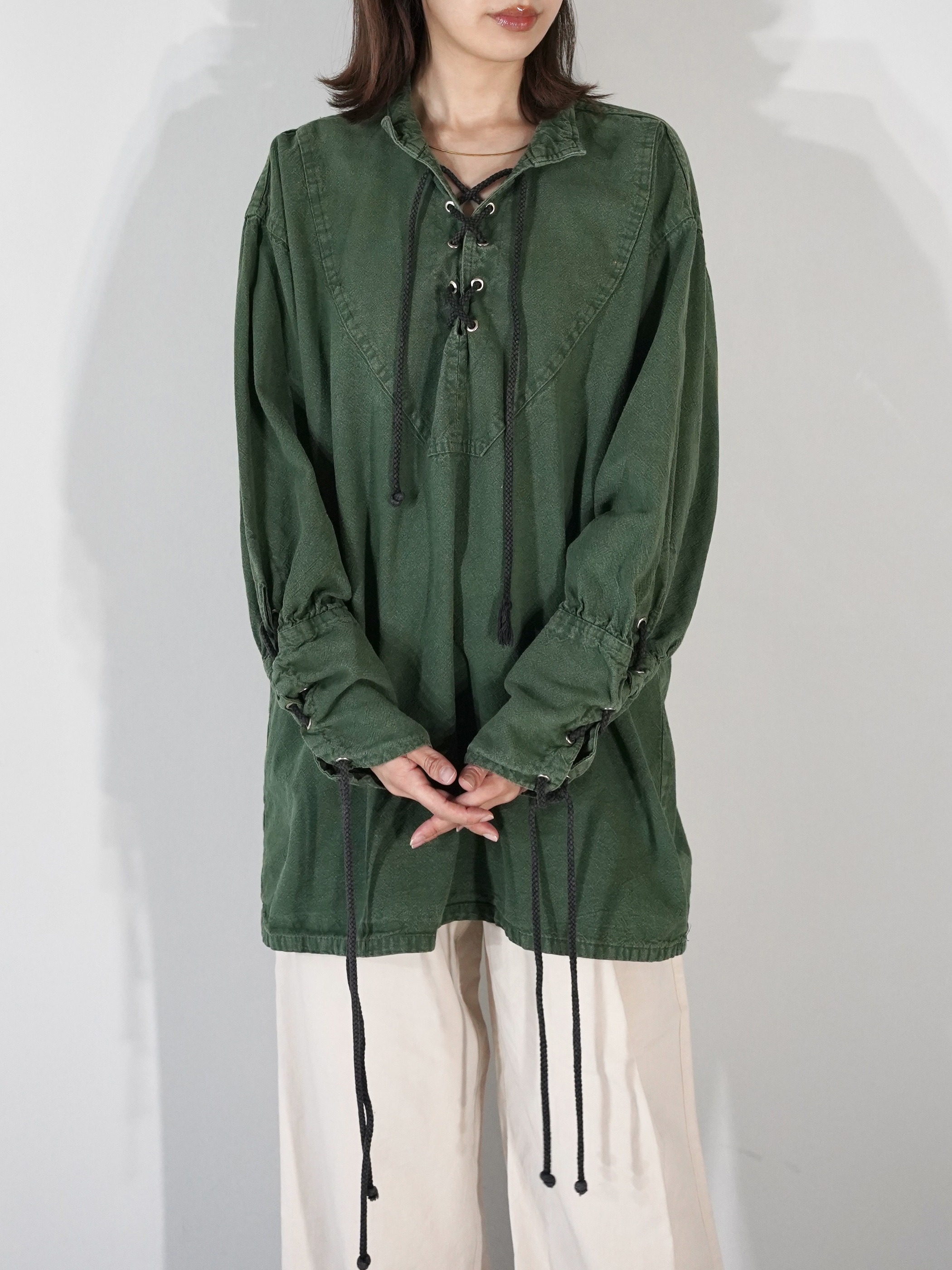1990s Cotton Lace Up Pull Over Shirt