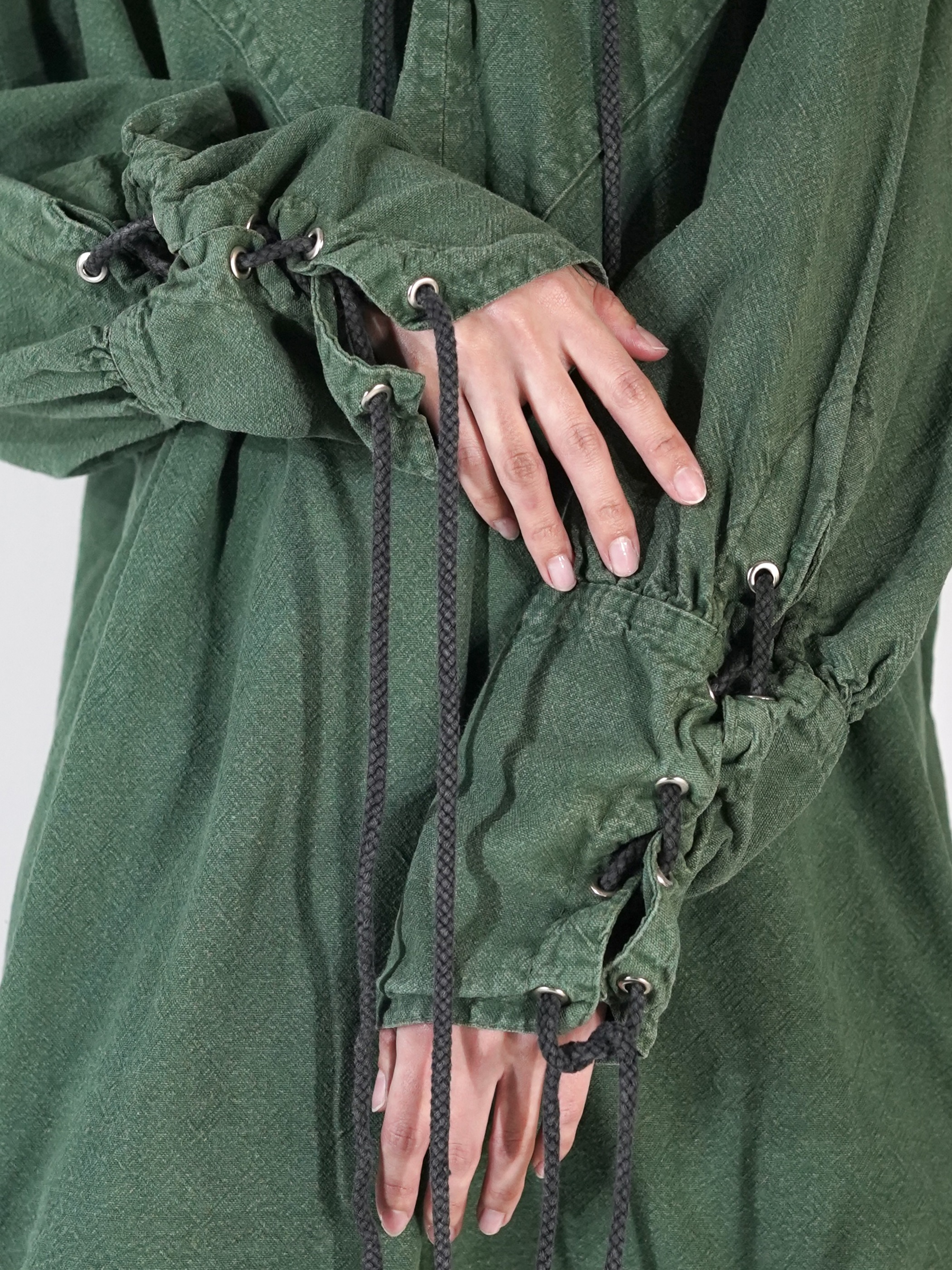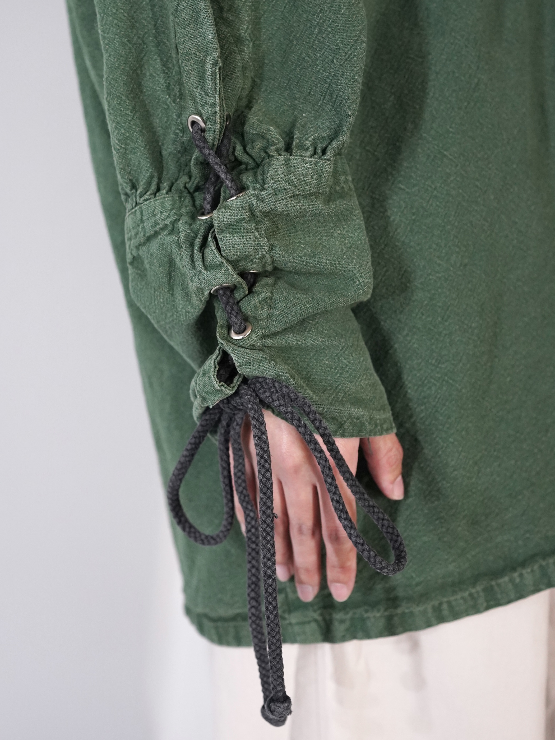 フロントと袖口のドローストリングが良いアクセント。太目の紐も◎