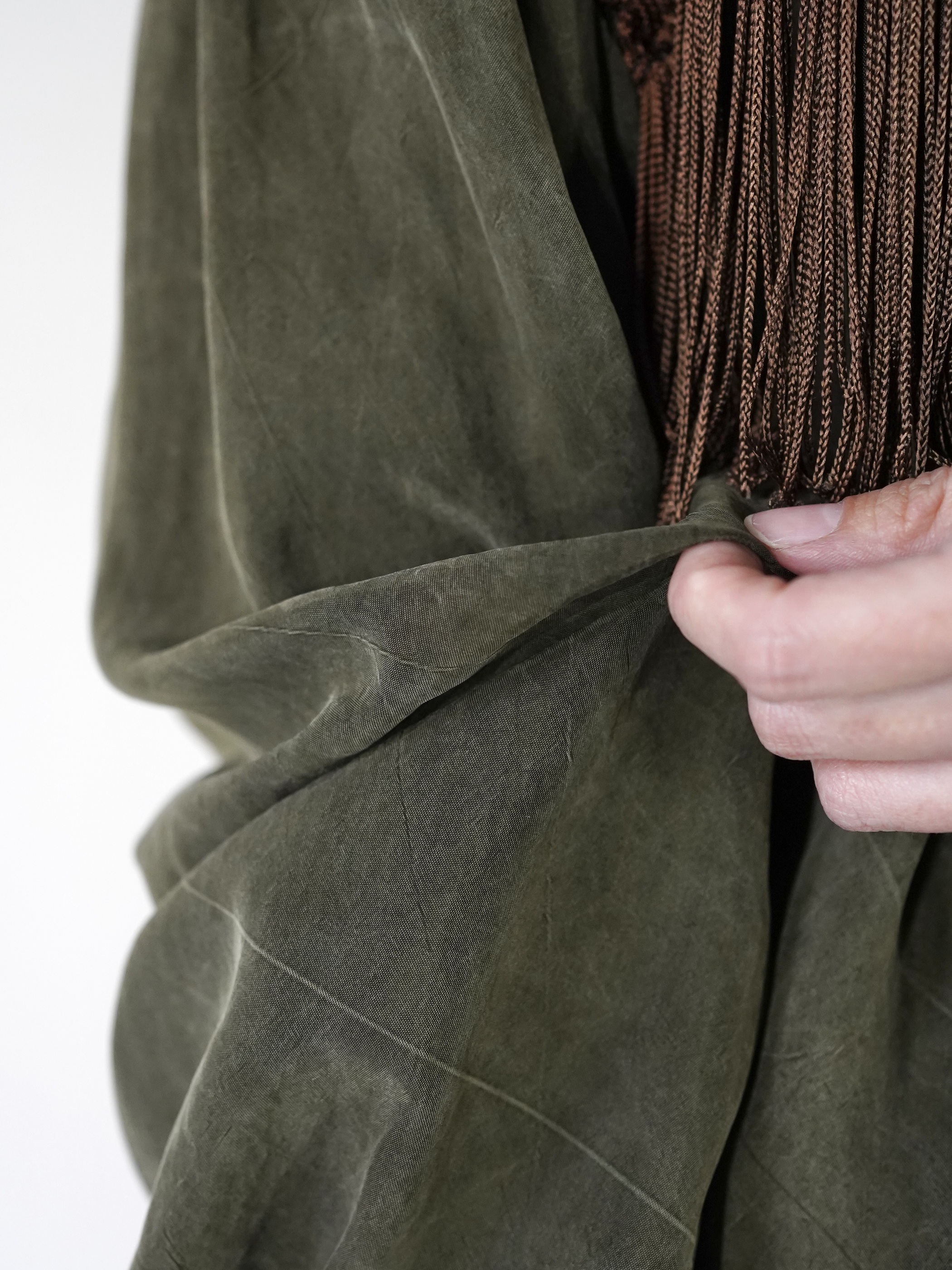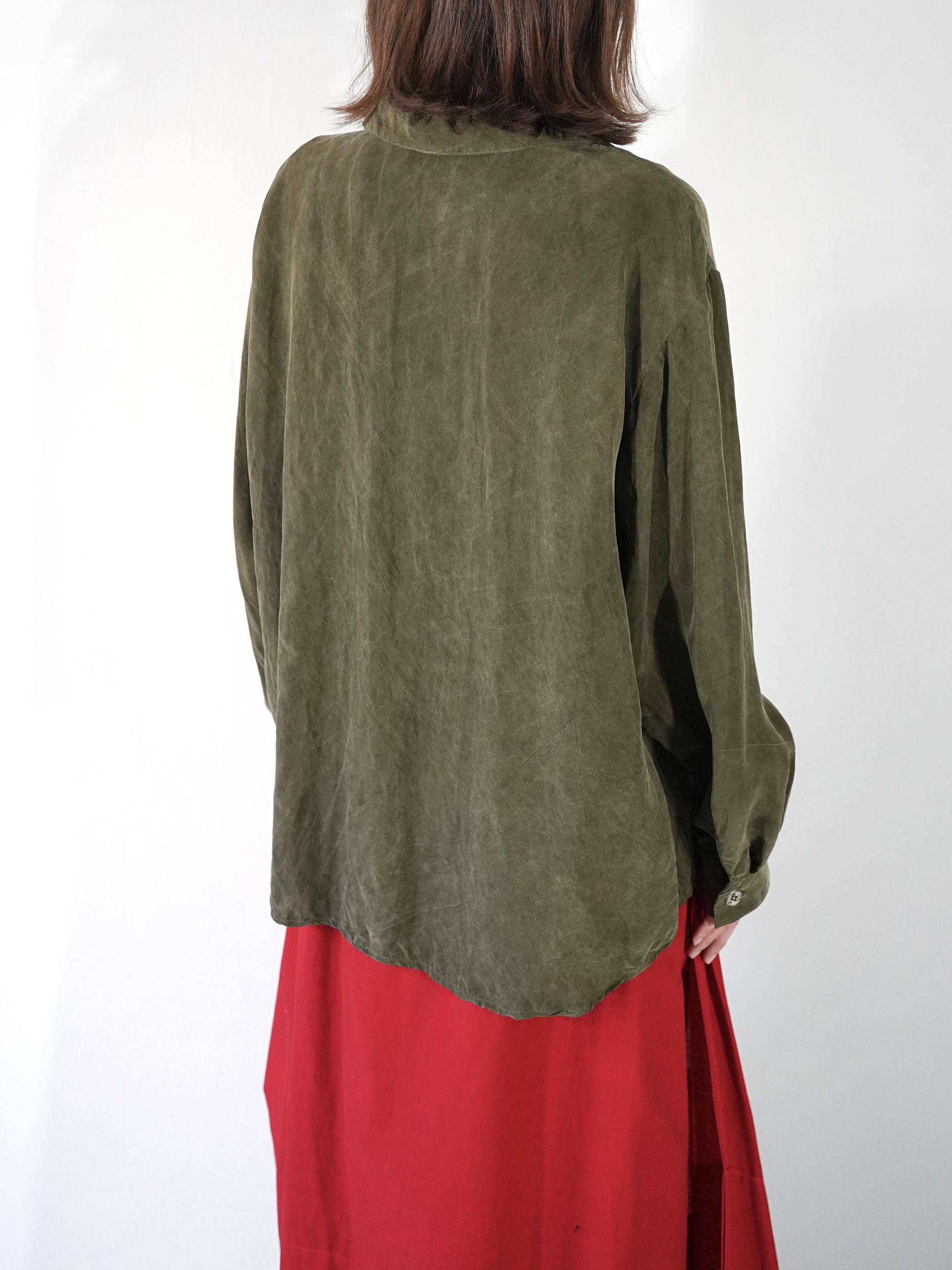 モスグリーンに100%レーヨン素材/ひんやりとした生地感