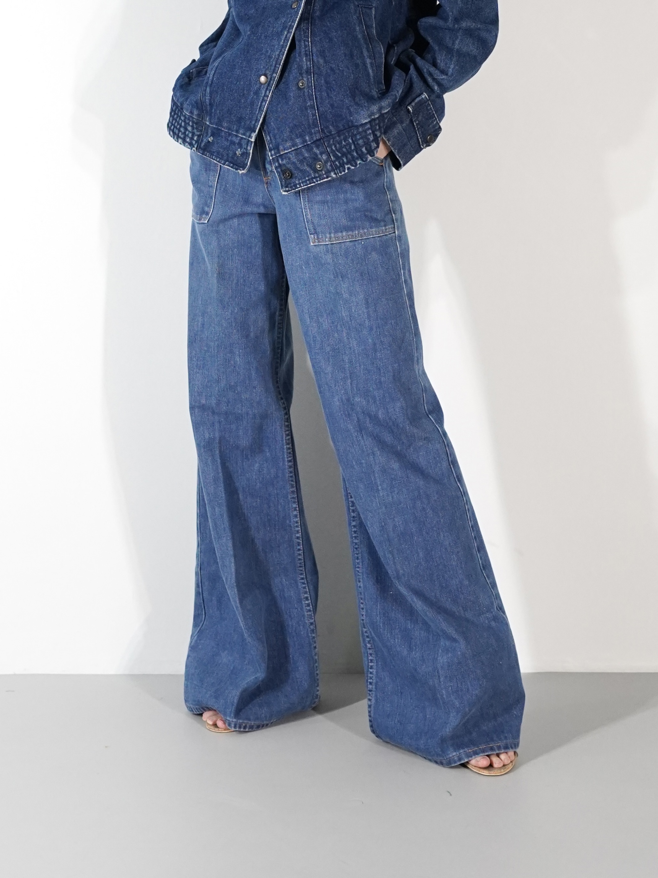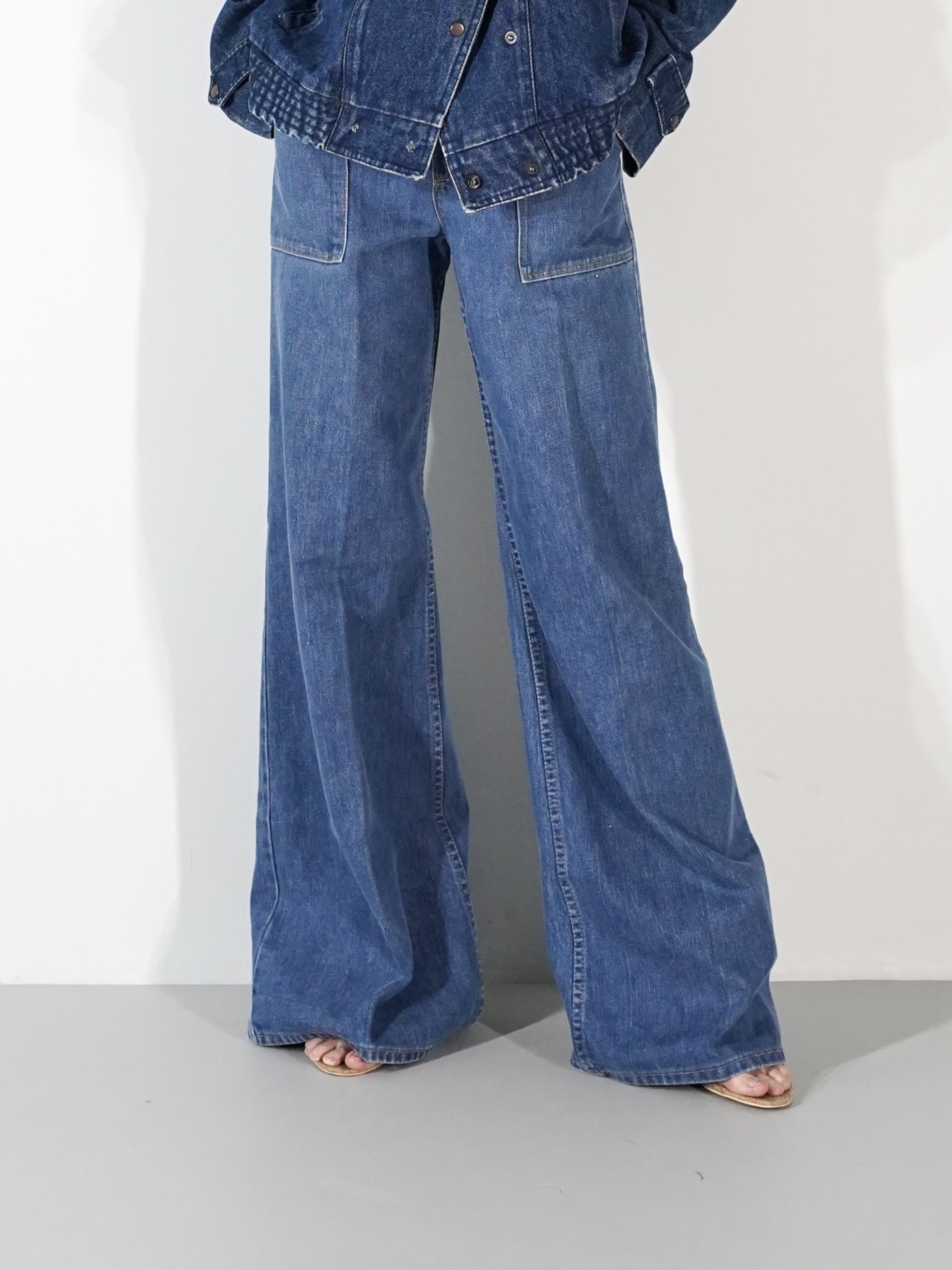 古いデニム製品の為、傷、シミ、日焼け等(画像に載らない箇所)も見受けられることもございますが、長い歴史の中で経た経年変化と捉えていただければ幸いです