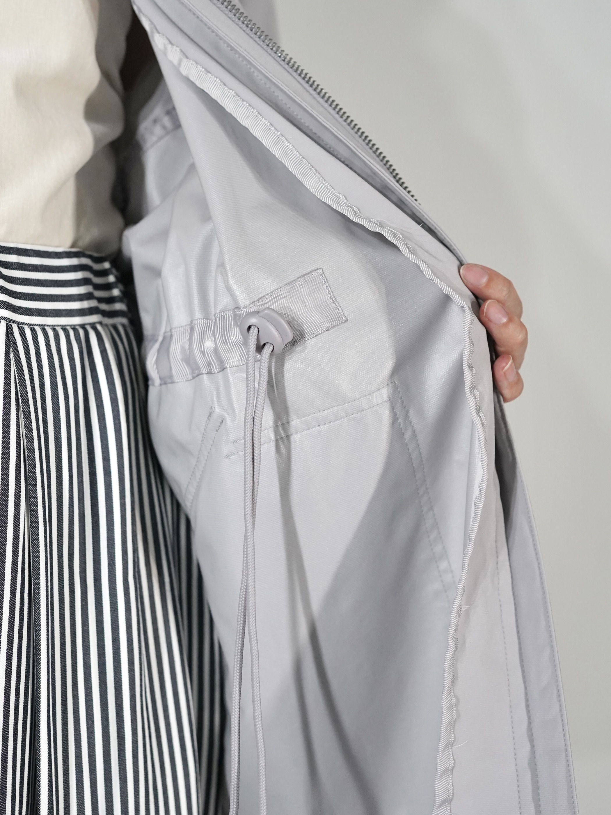 ウエストのドローコードを絞り、メリハリを付けたシルエットにしても◎