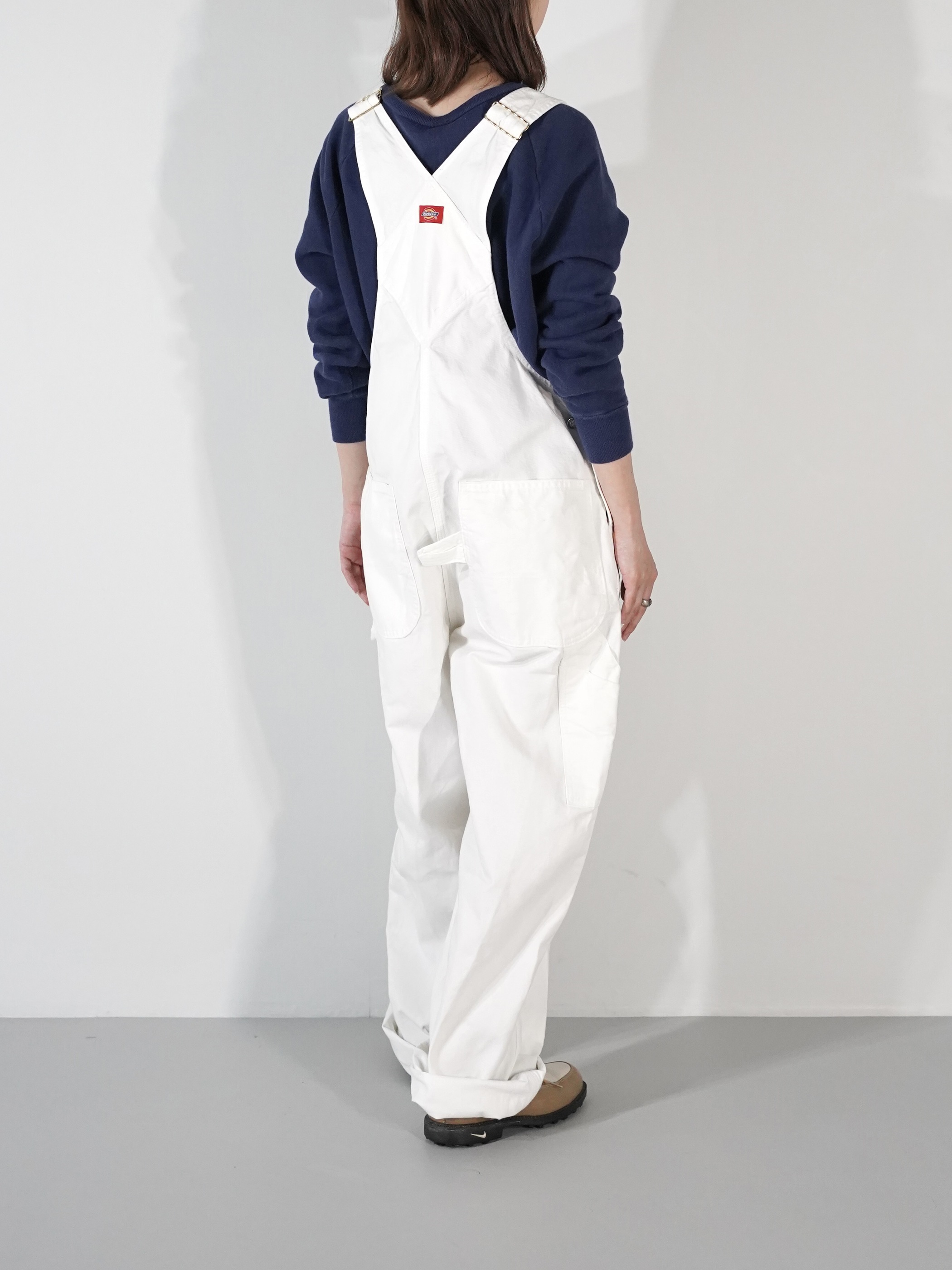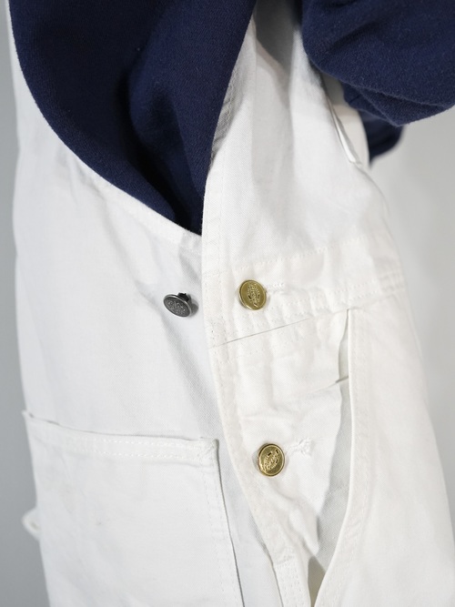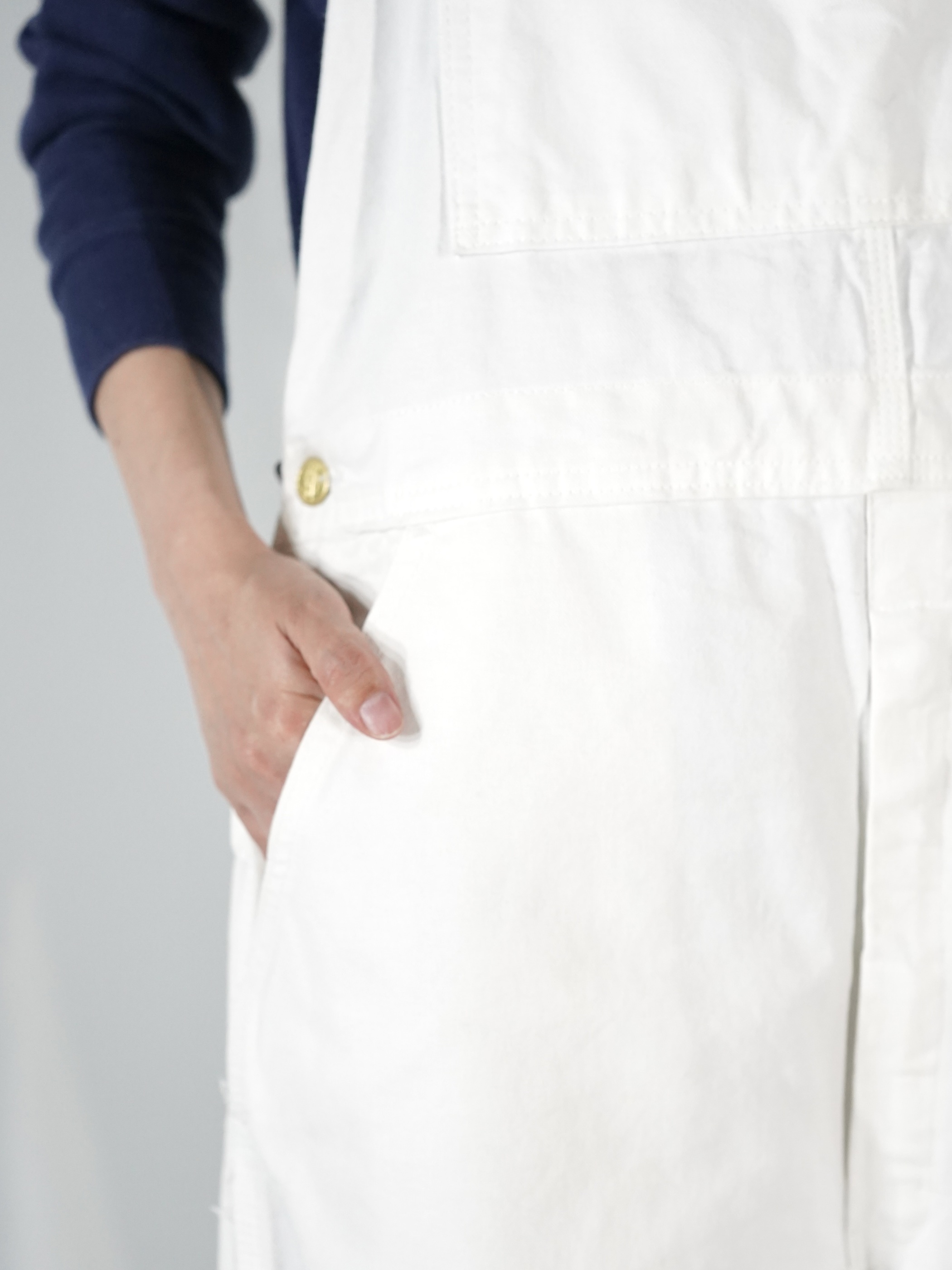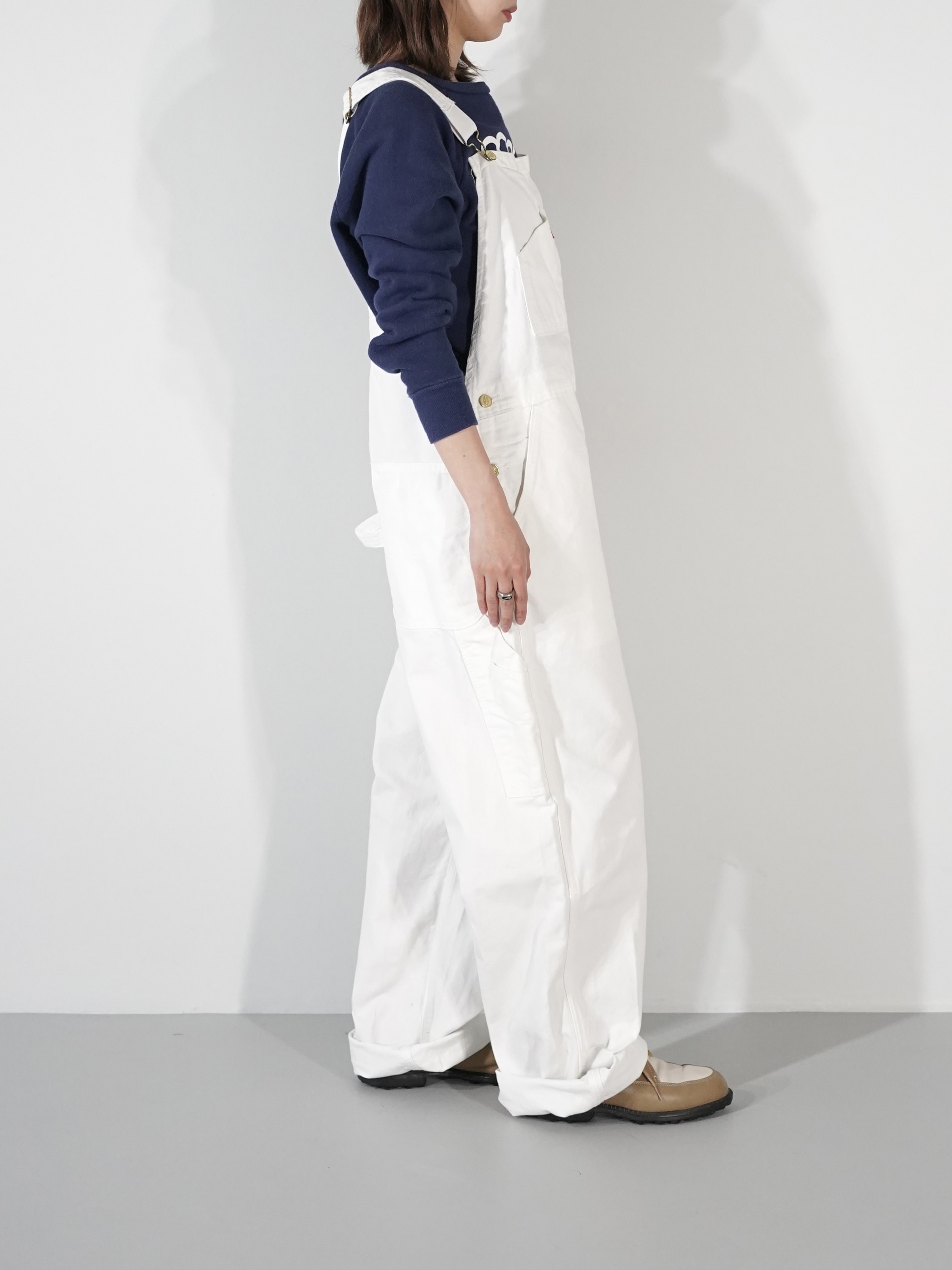ホワイトデニムのオーバーオール