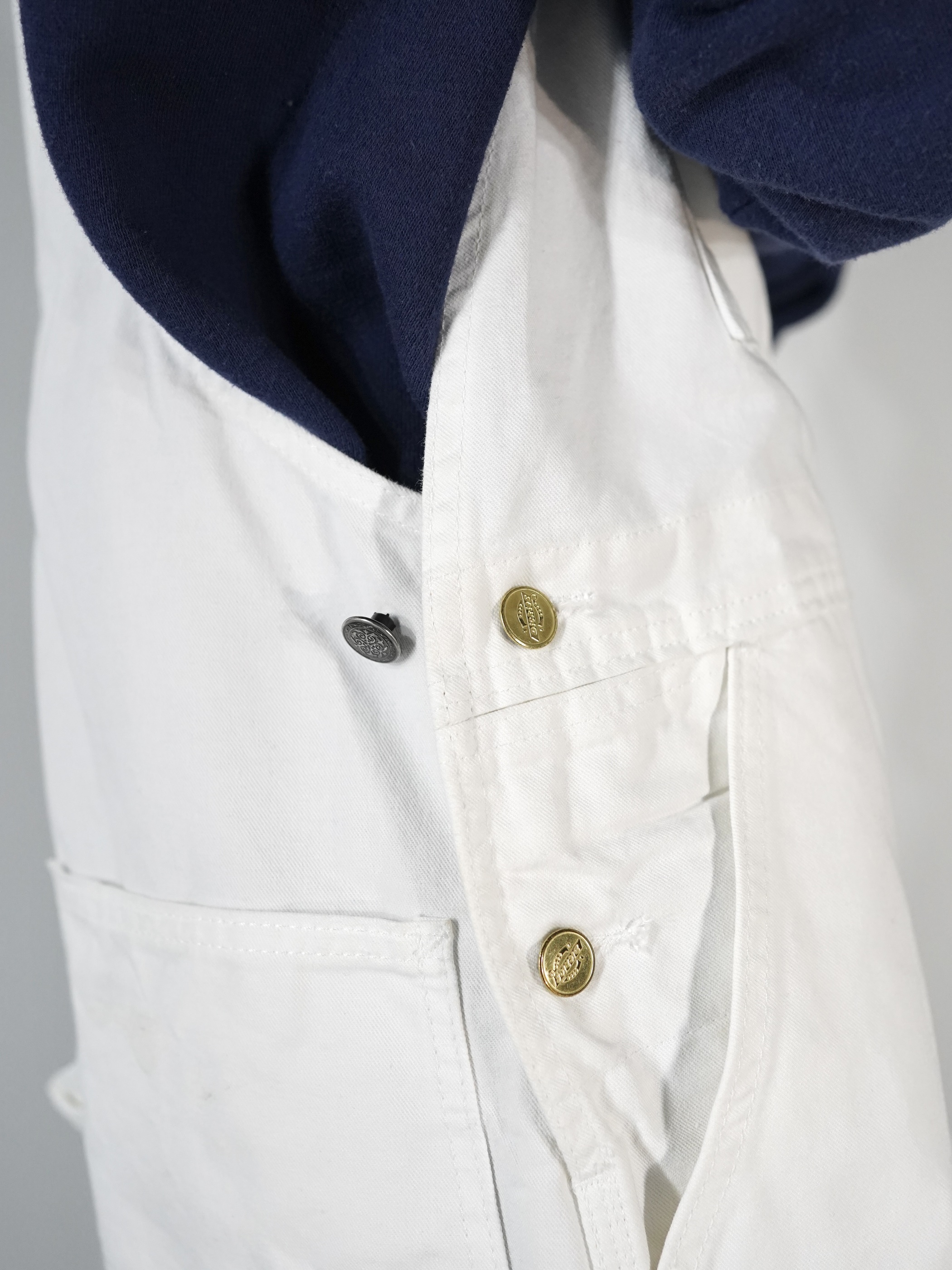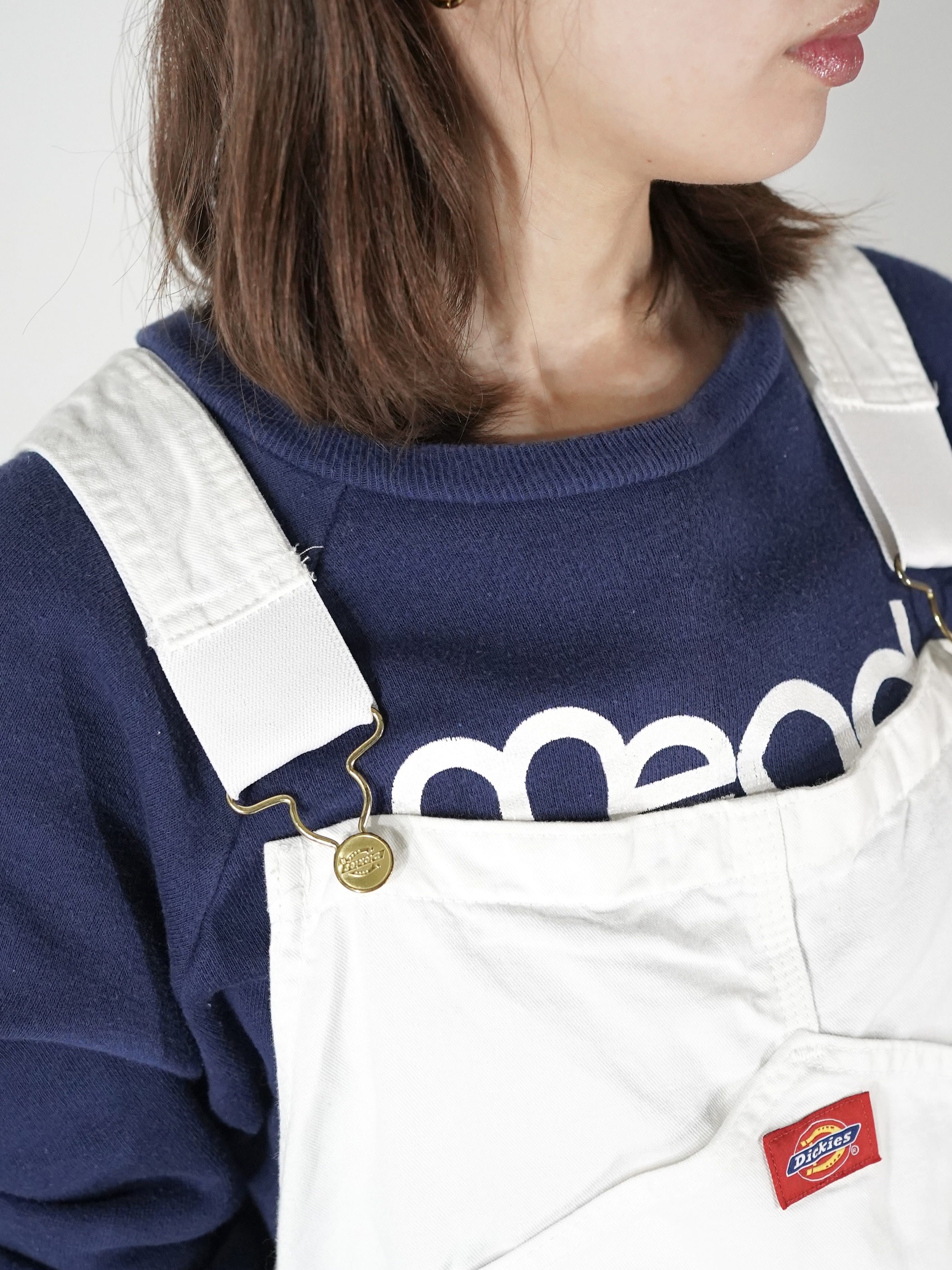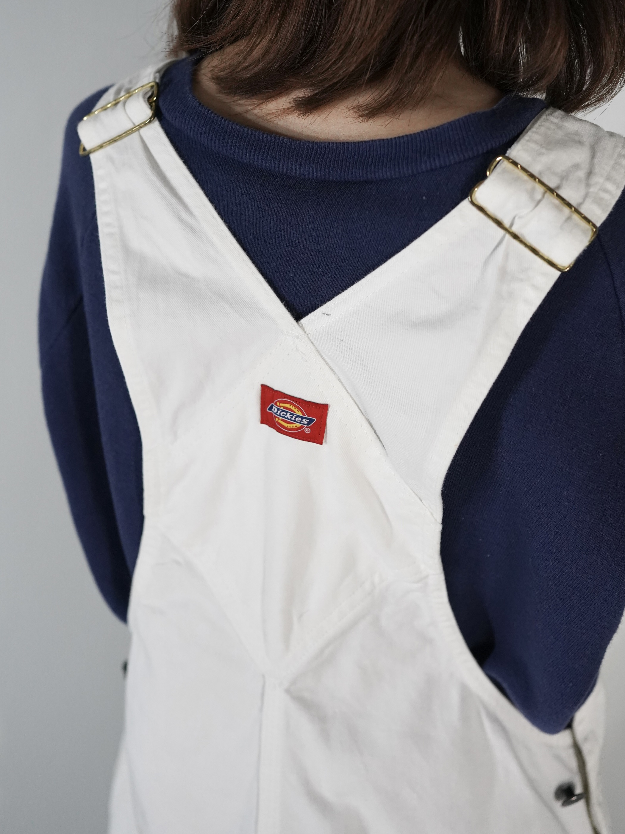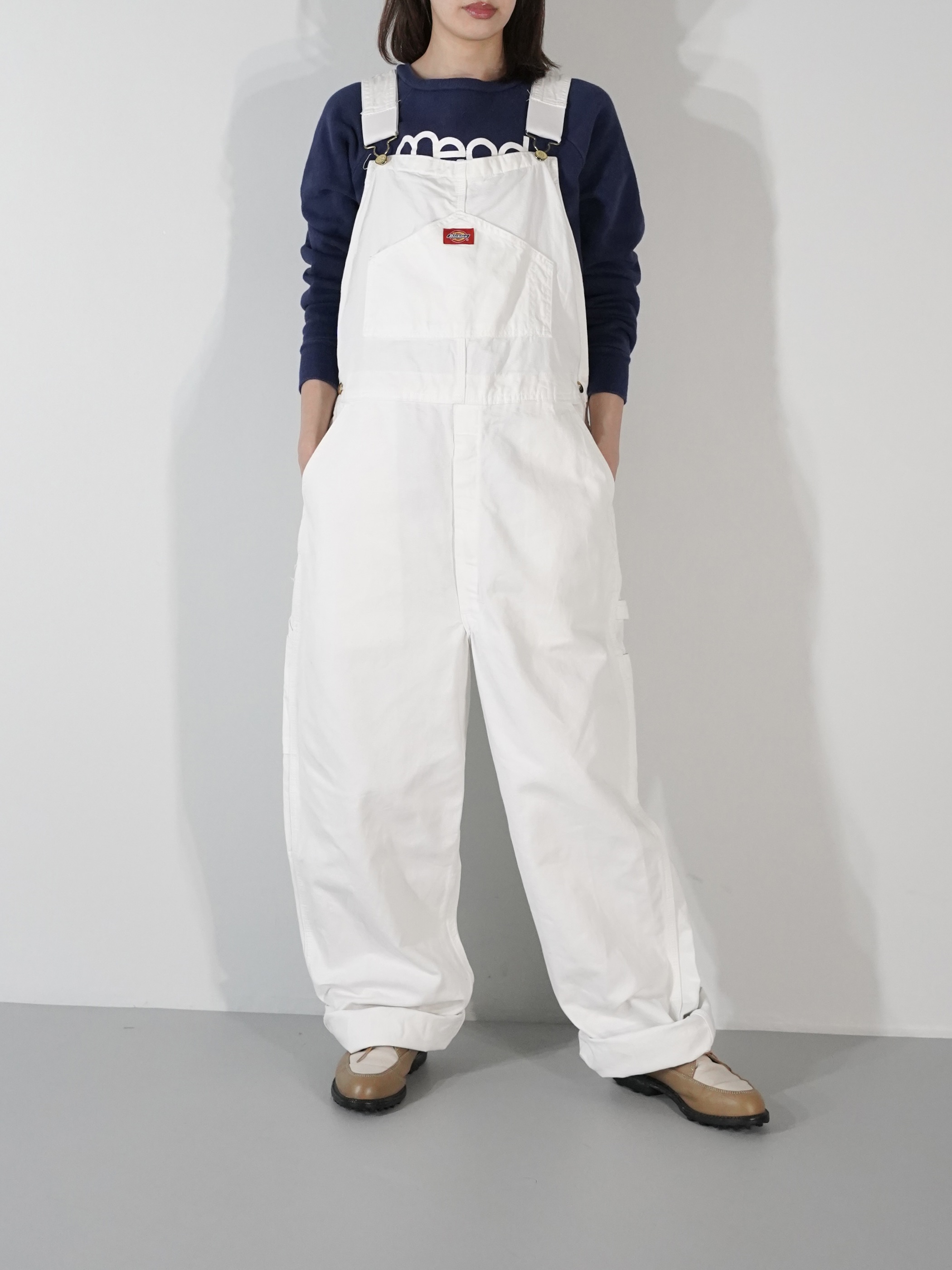 ホワイトデニムのオーバーオール