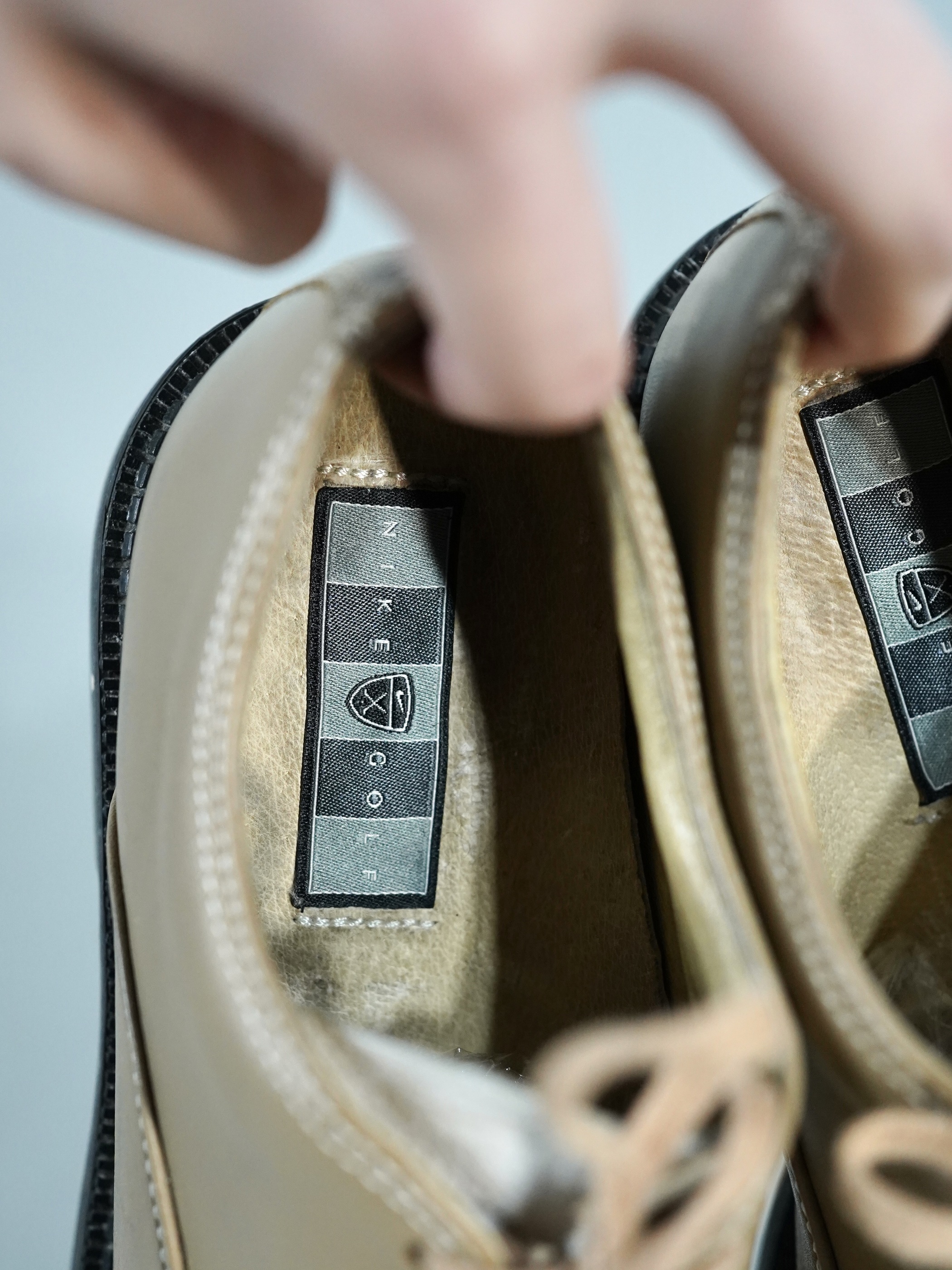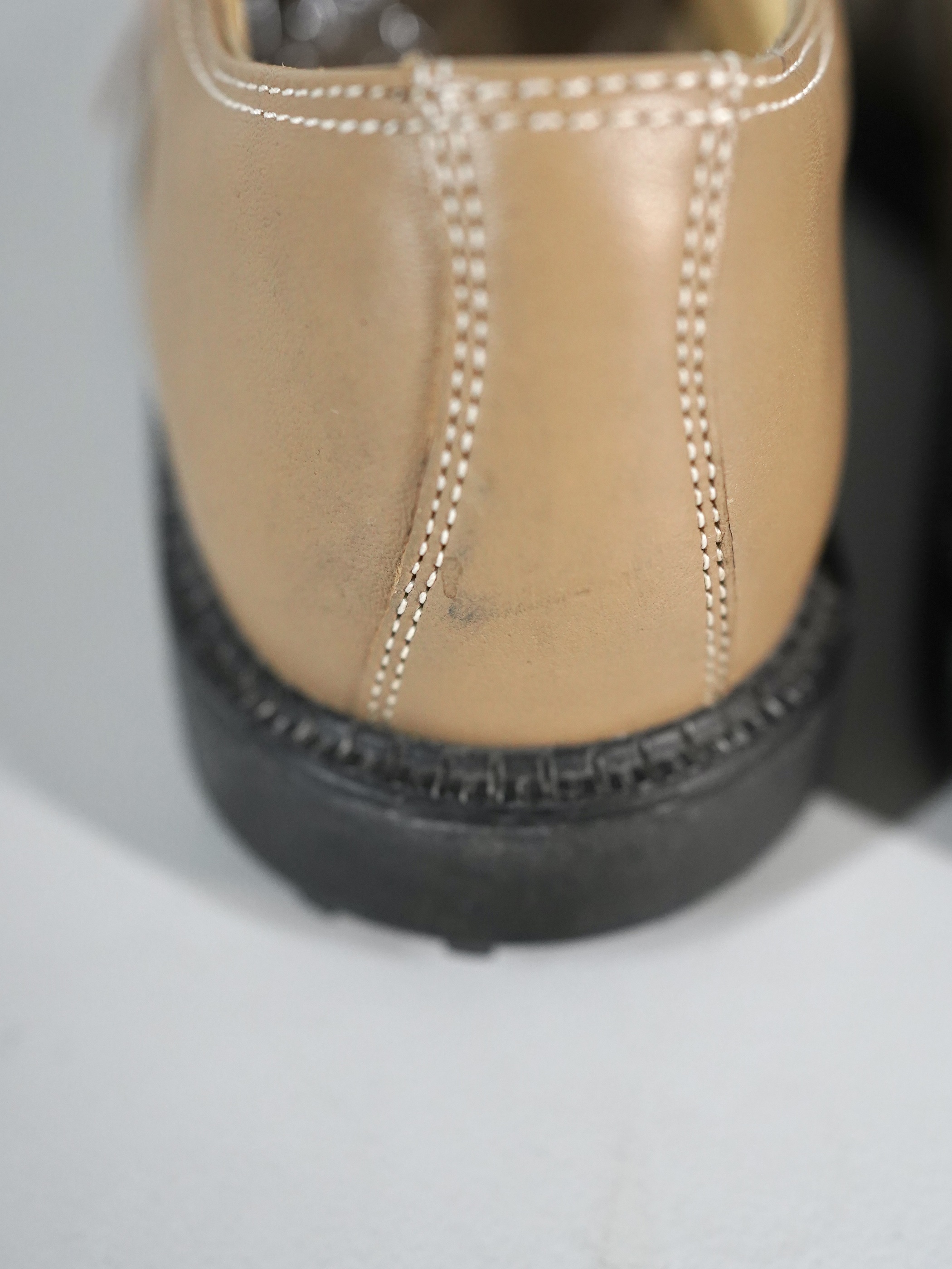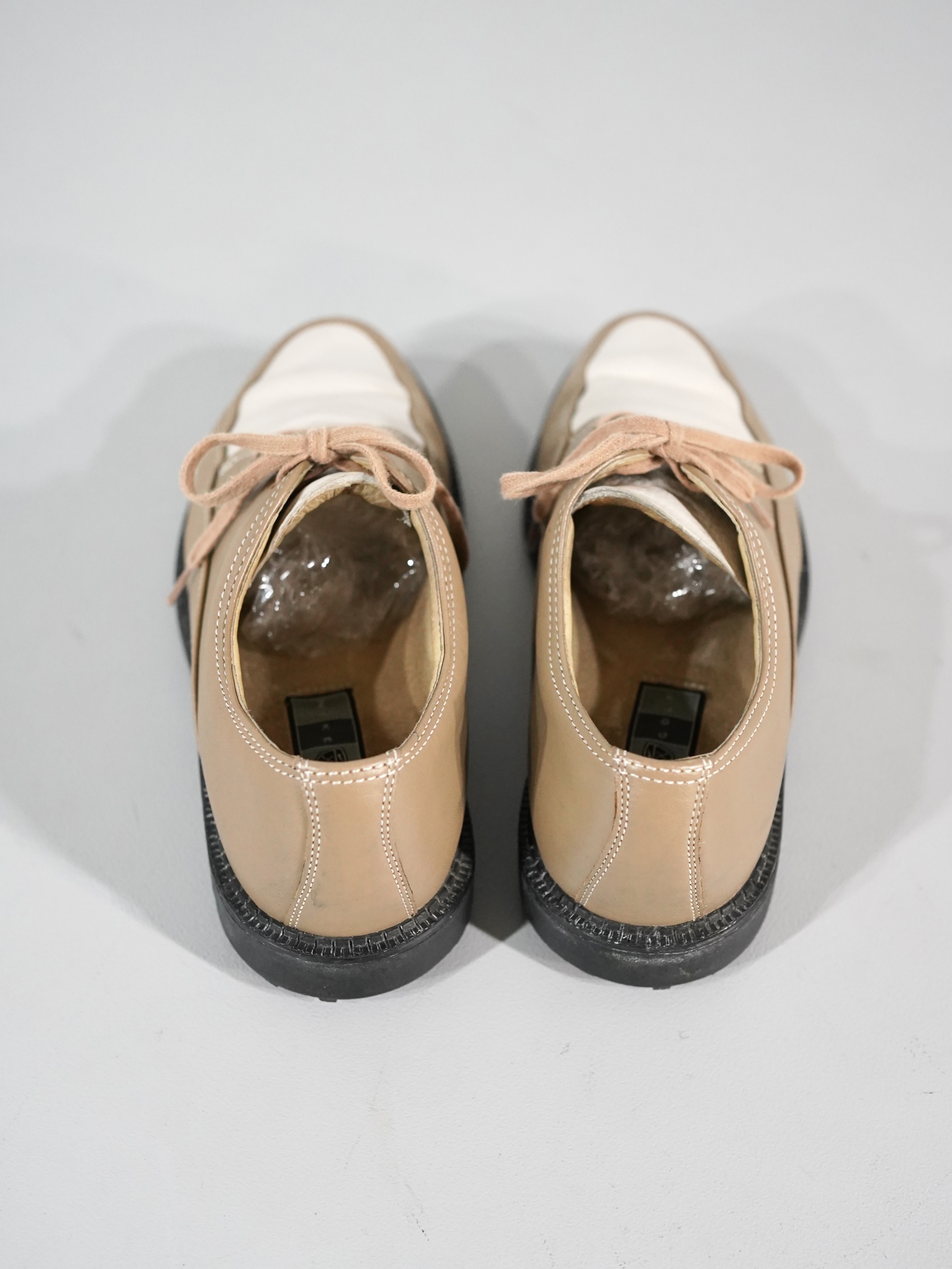 ベージュとホワイトの2トーンカラーで構成されたレザーシューズ