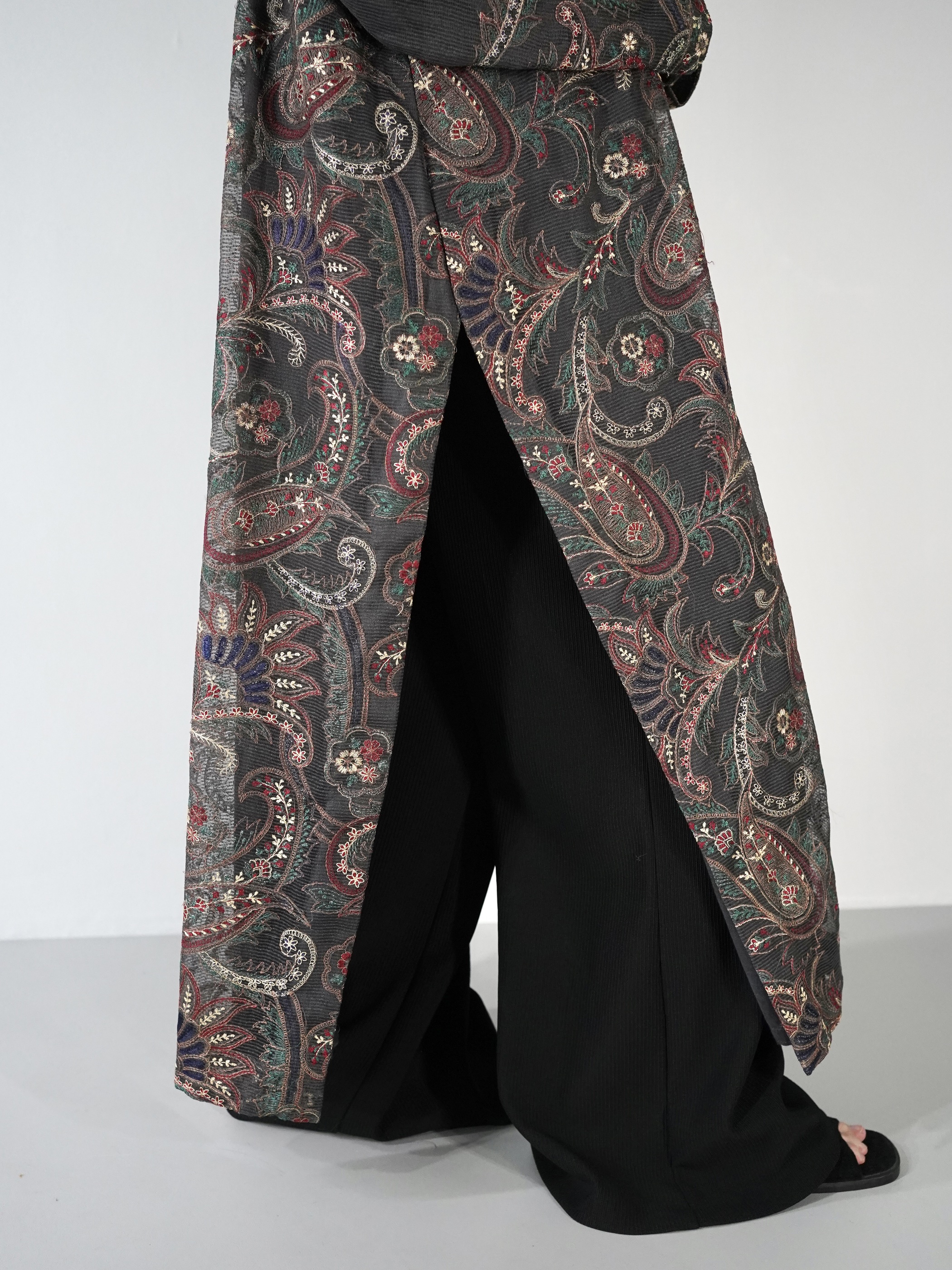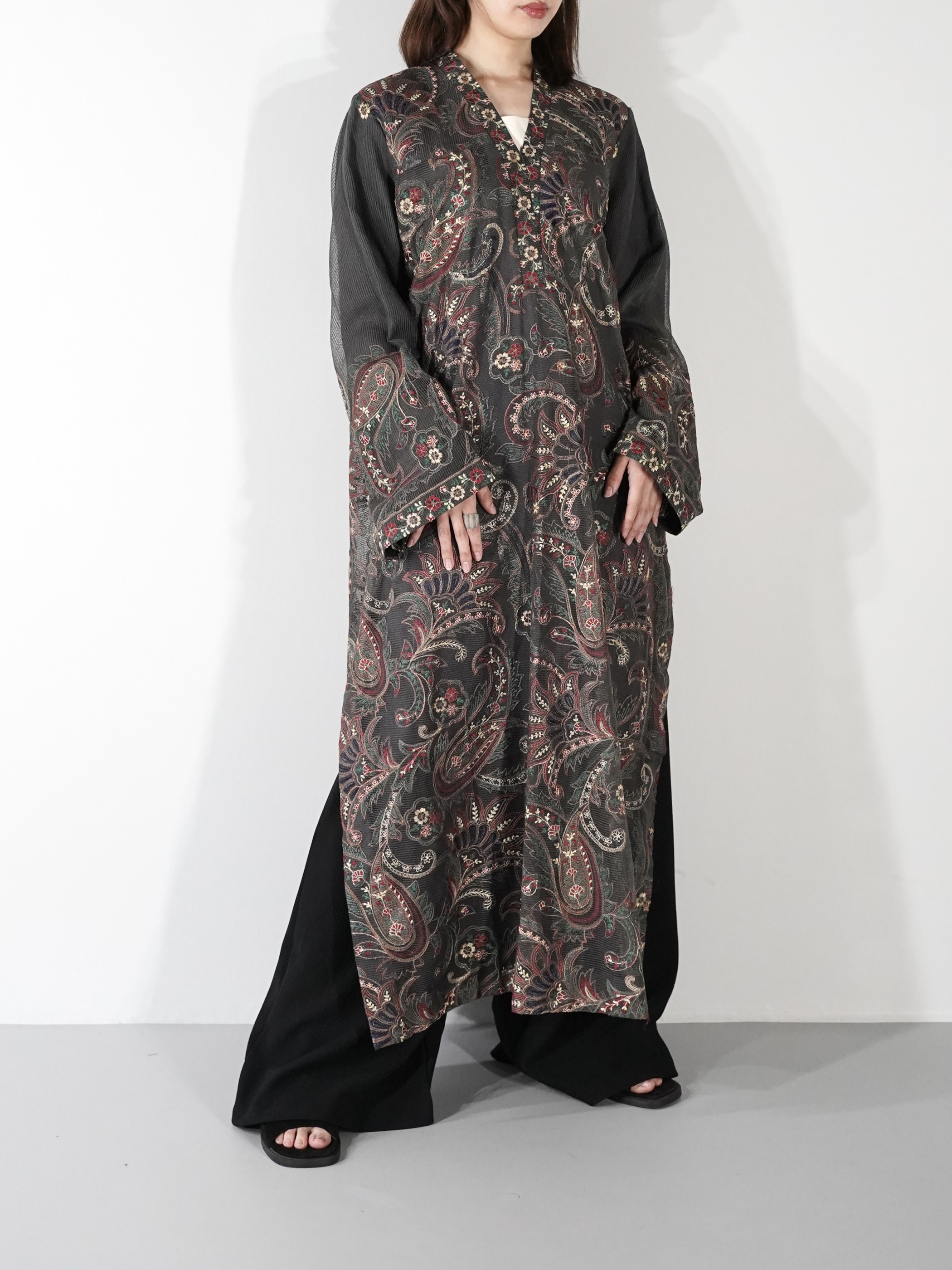 Ethnic Embroidery Sheer Side Slit Vintage Dress