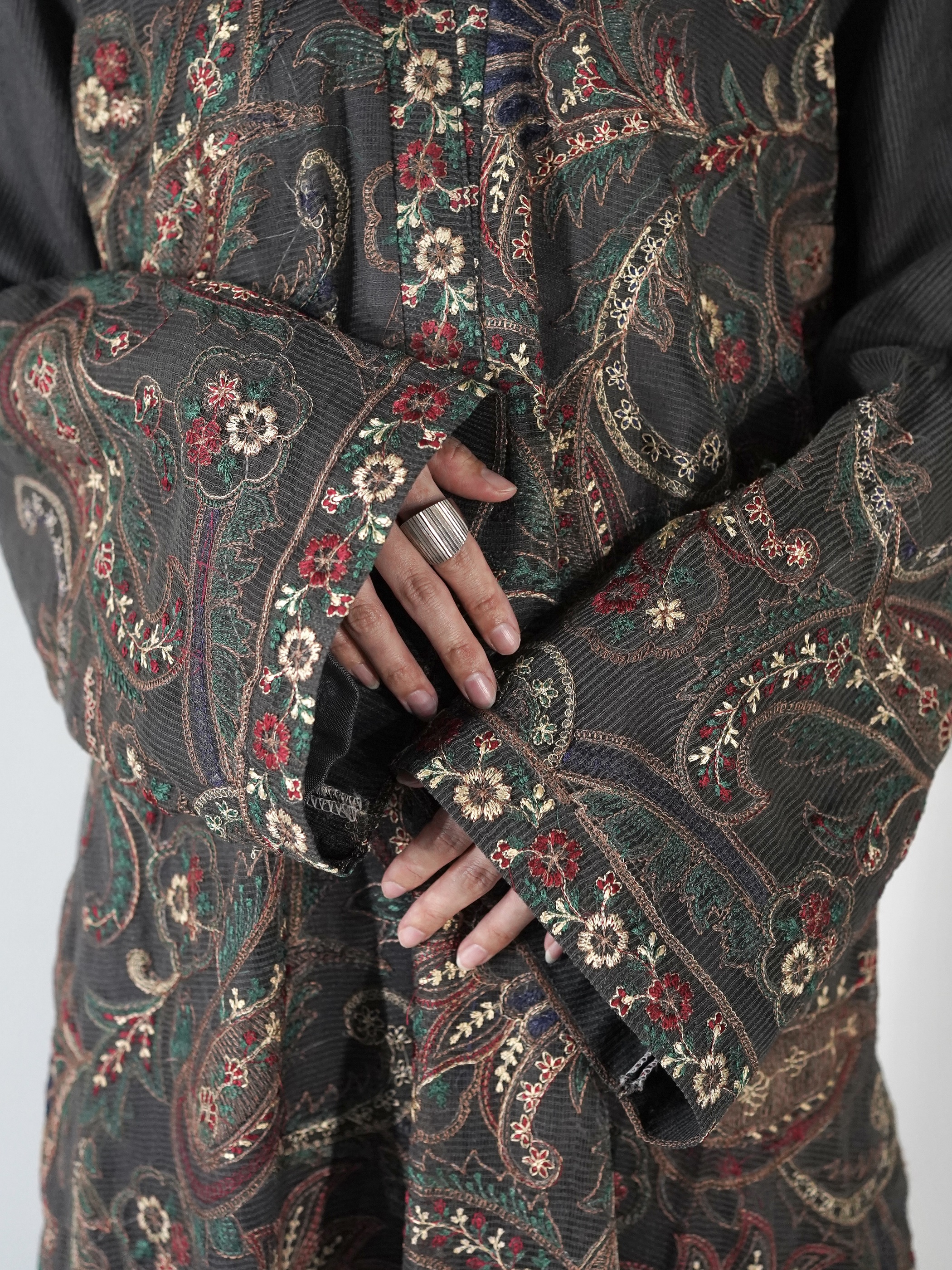 透け感防止のためグレーのライニングが縫い付けられていますが袖、袖の部分は大胆にライニングを切ってしまって透け感を楽しむなんかも良い気もします。