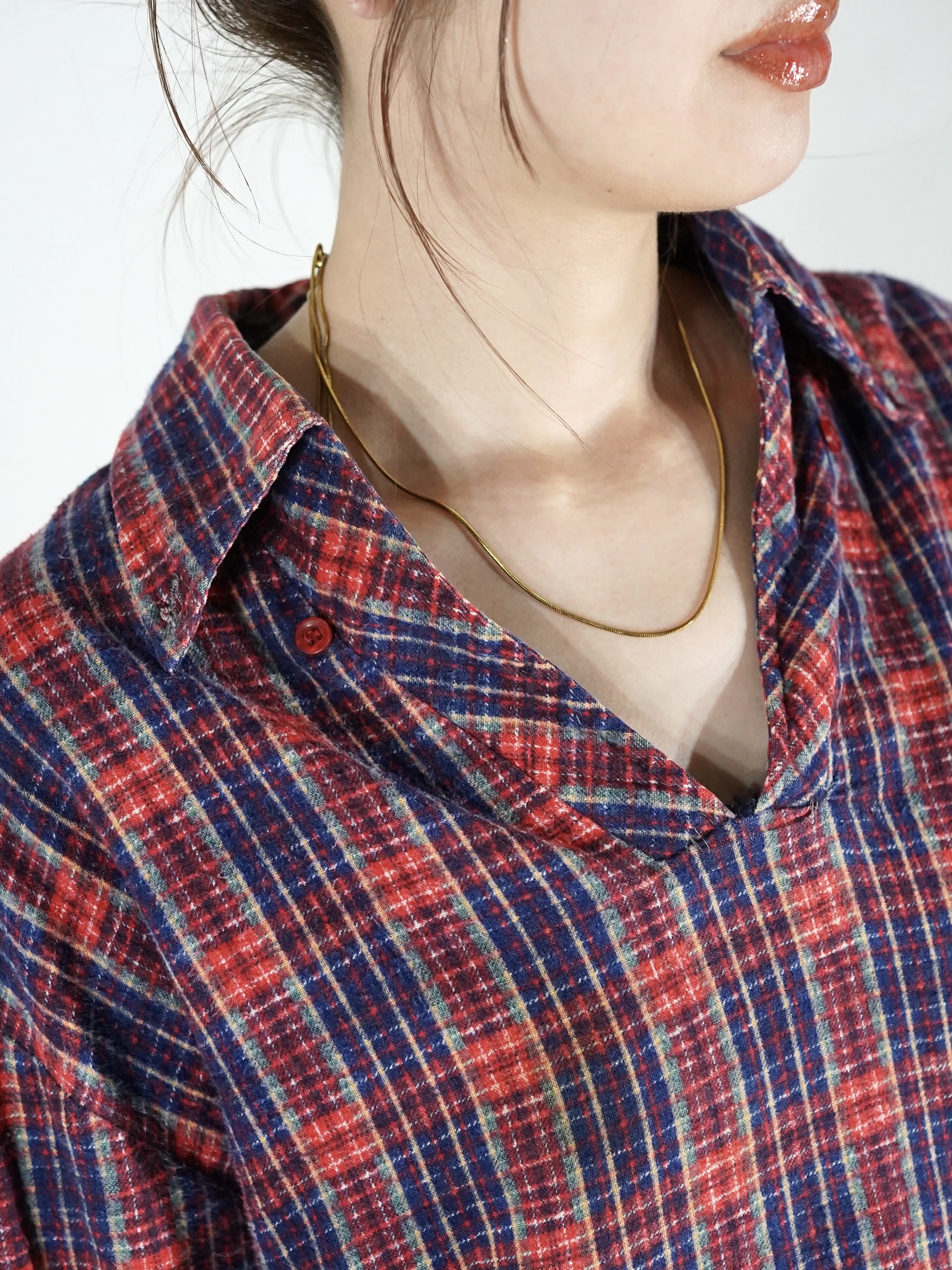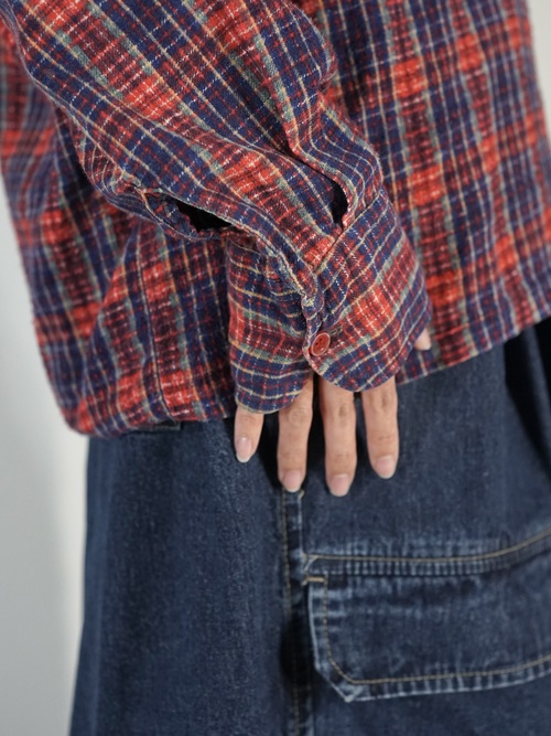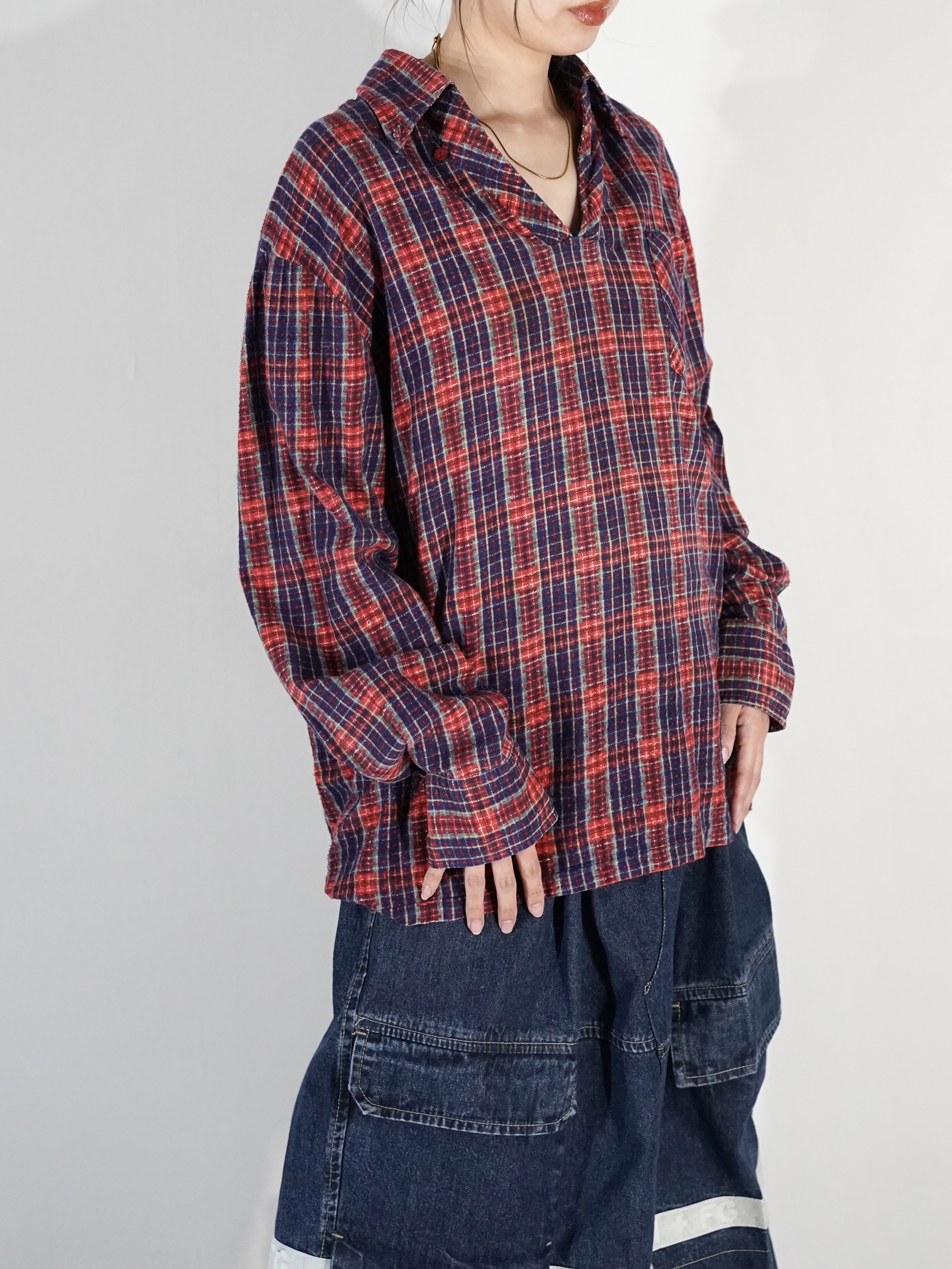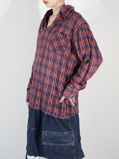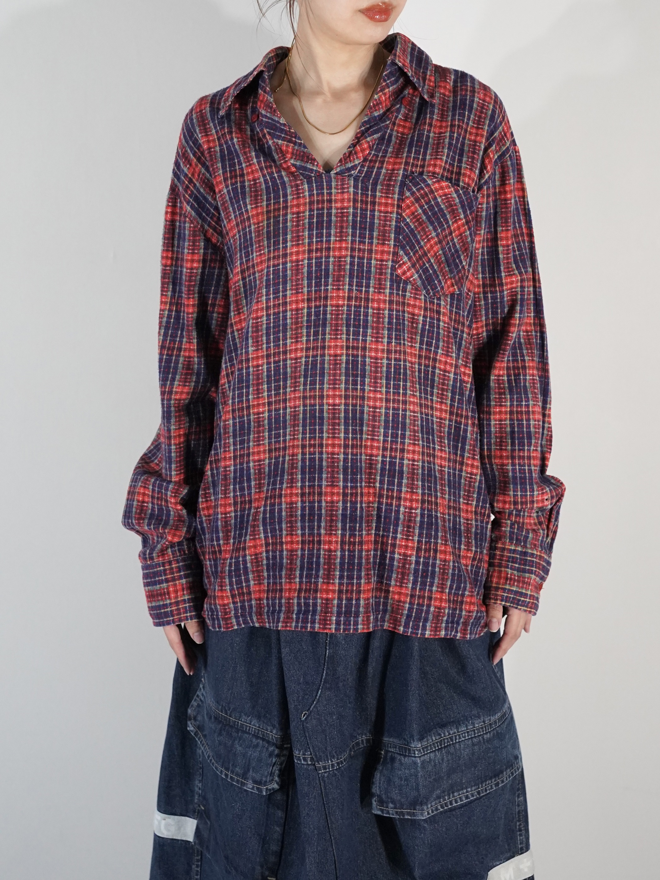 1970-80s Flannel Skipper Collar Pull Shirt
