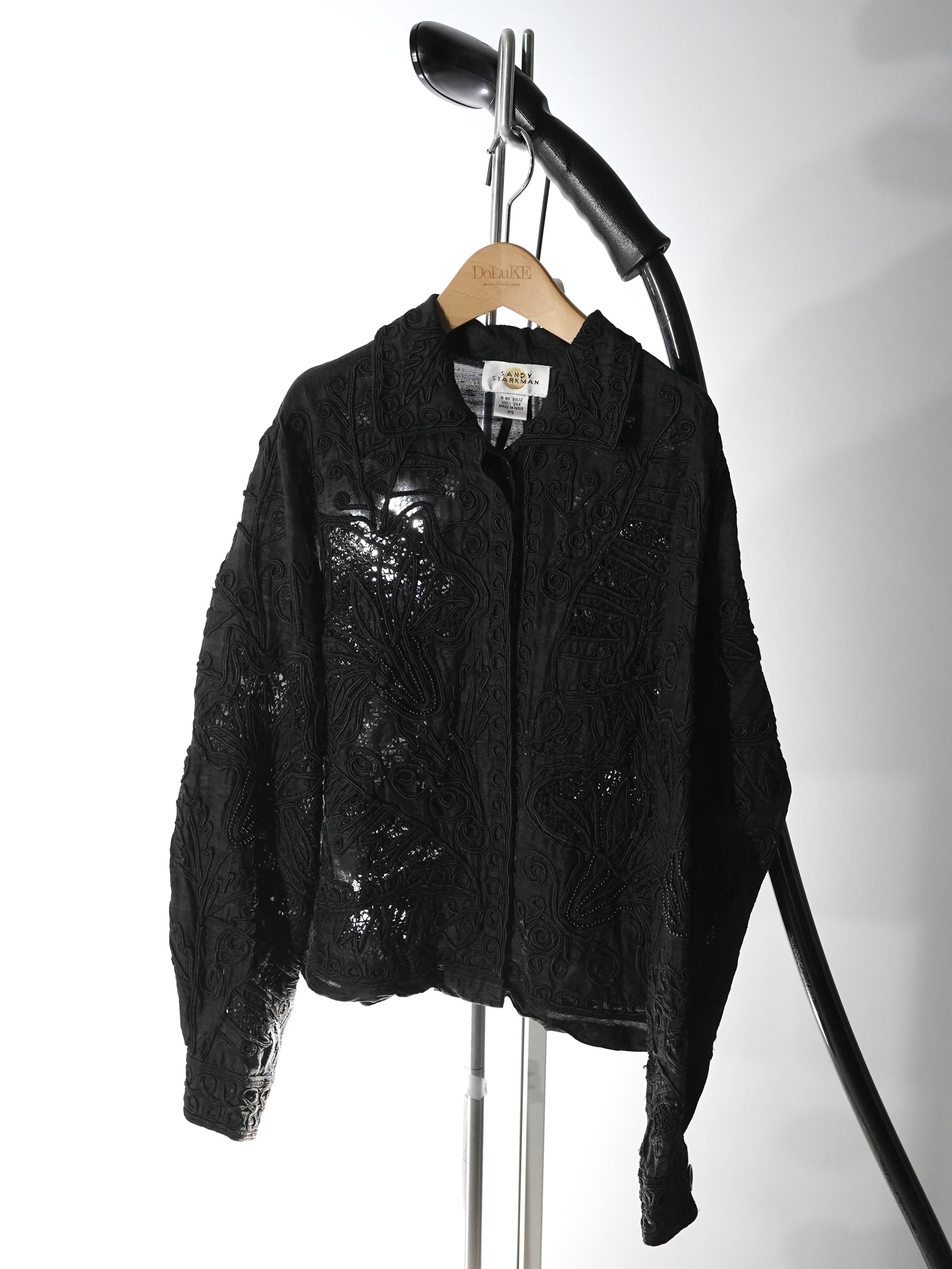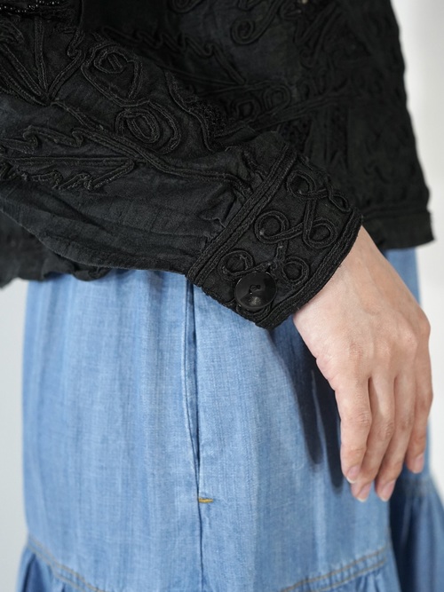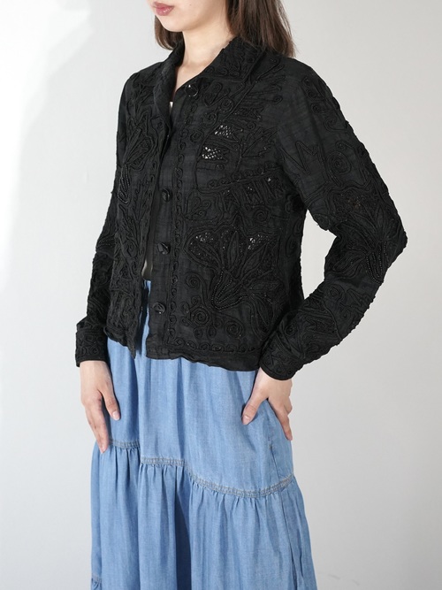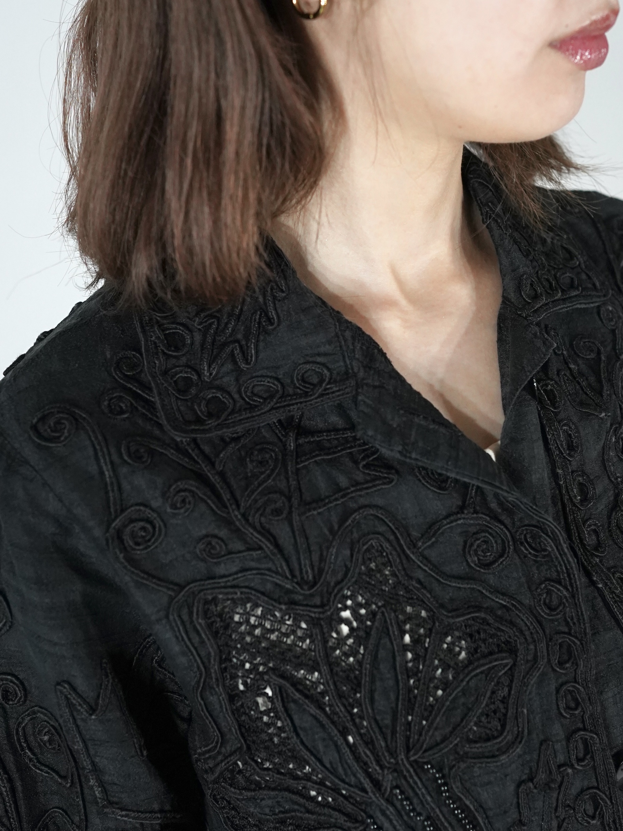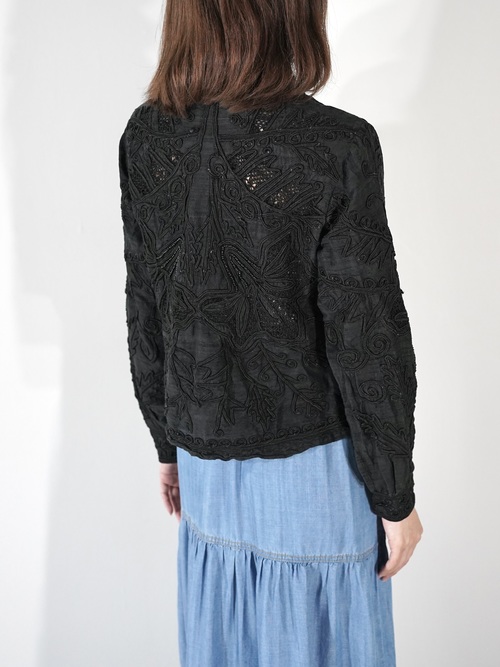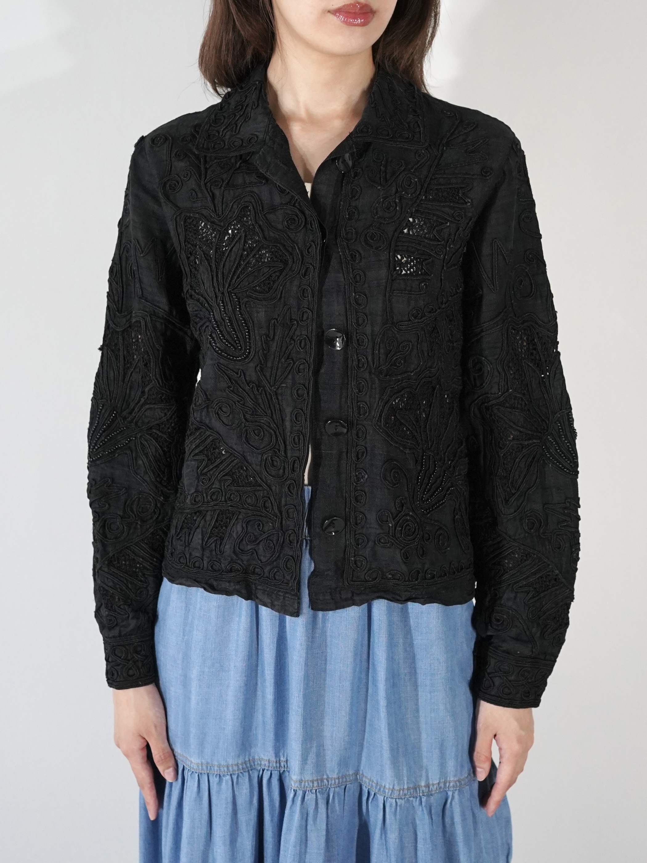 凸凹感のある立体的な刺繍&コードワークで柄を浮きだたせているJKT