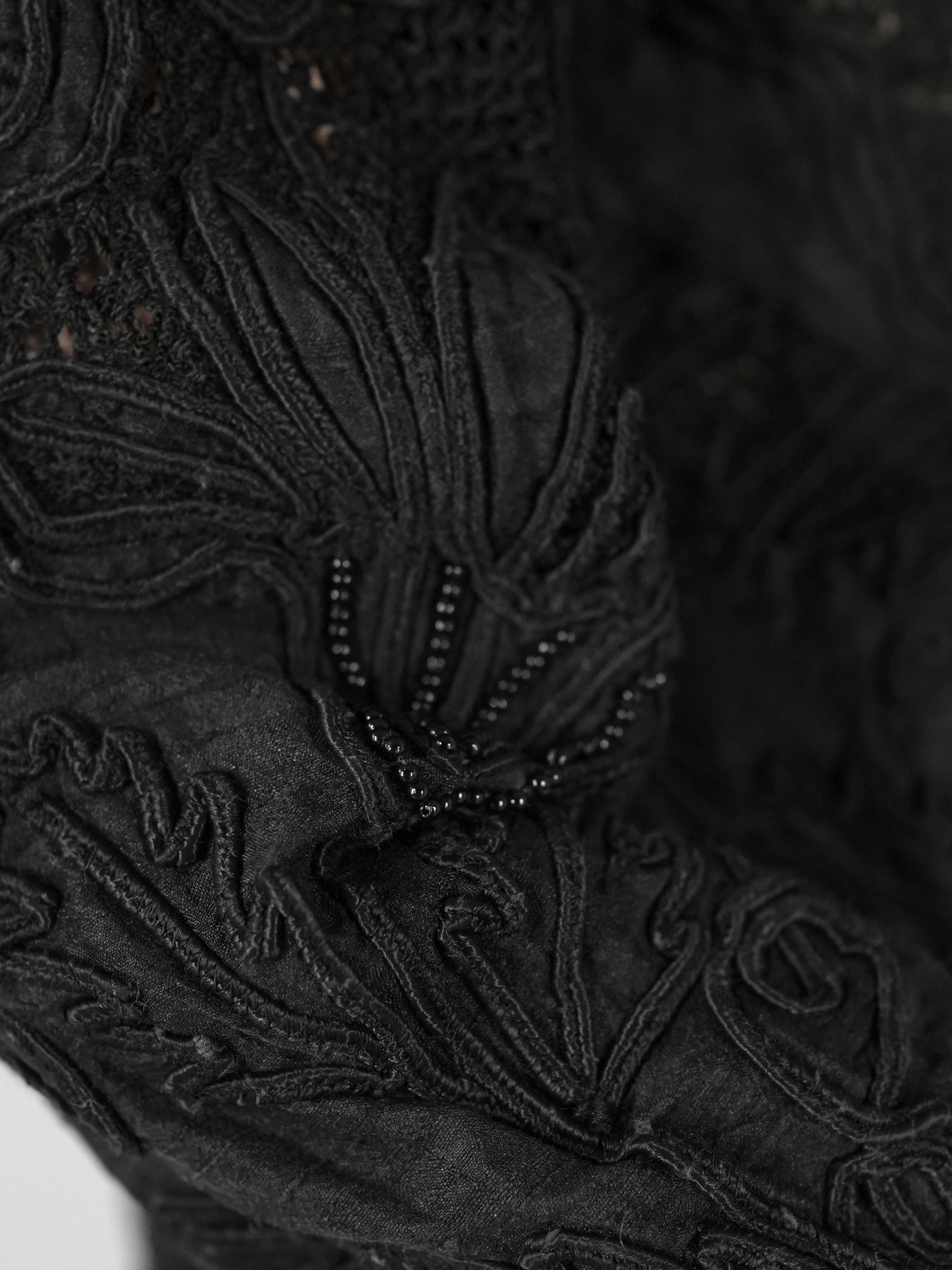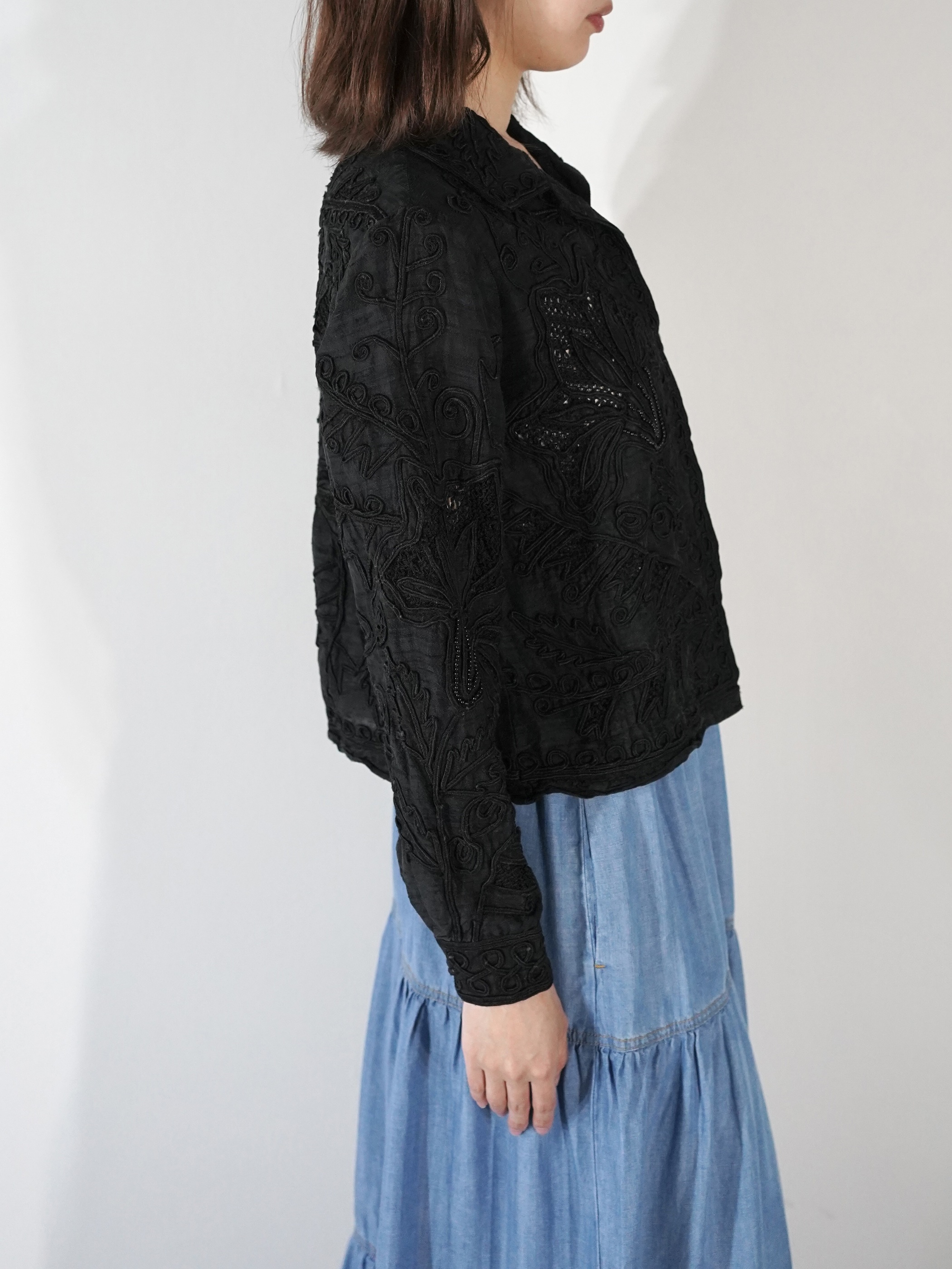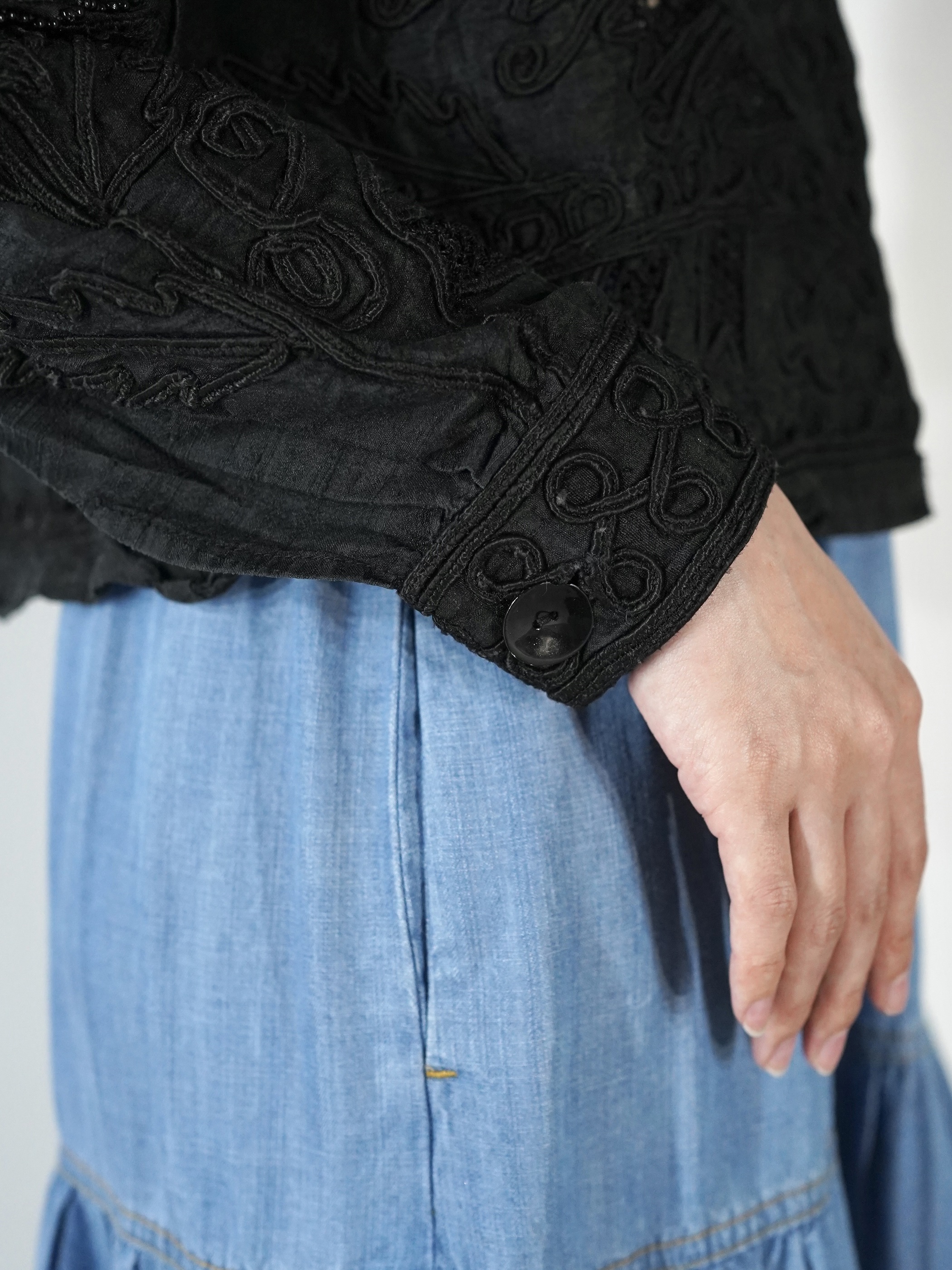 凸凹感のある立体的な刺繍&コードワークで柄を浮きだたせているJKT